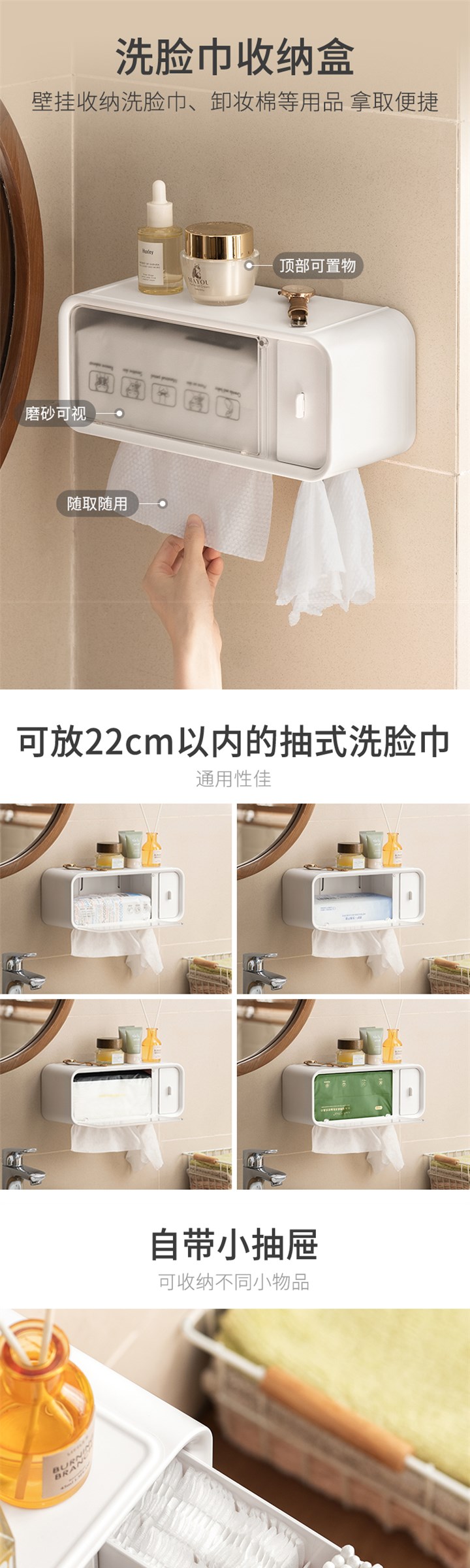 日式洗脸巾收f纳盒壁挂式一次性洁面纸巾化妆棉卫生间厕所置物架