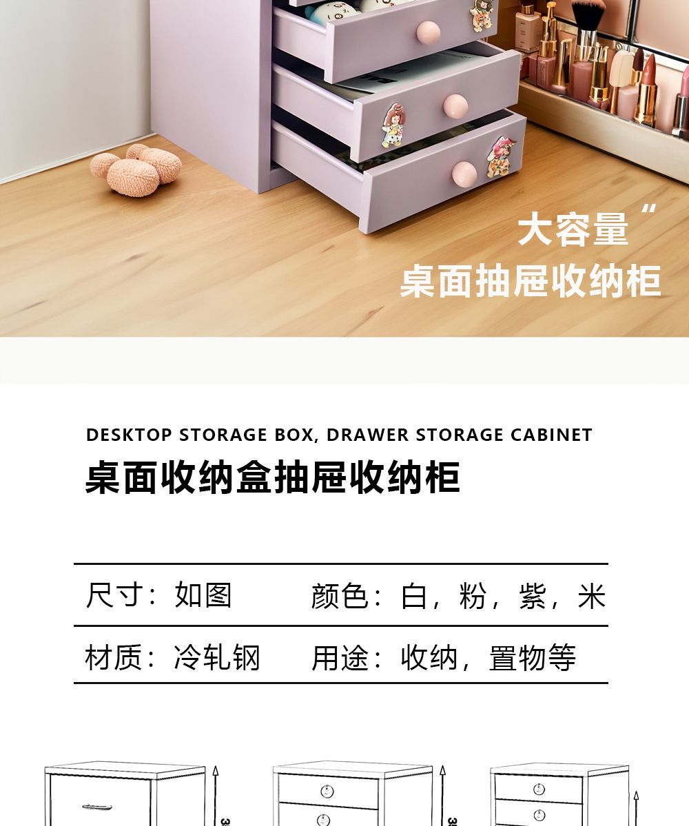 奶油风多层桌面抽屉柜办公小铁柜收纳盒钢制桌上文件柜图纸收纳柜