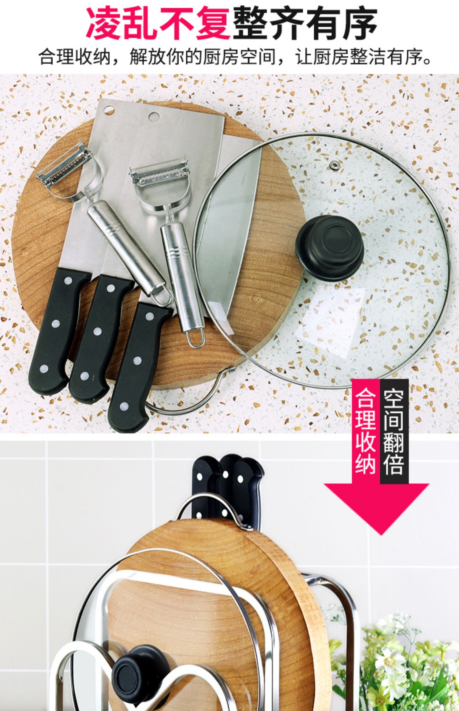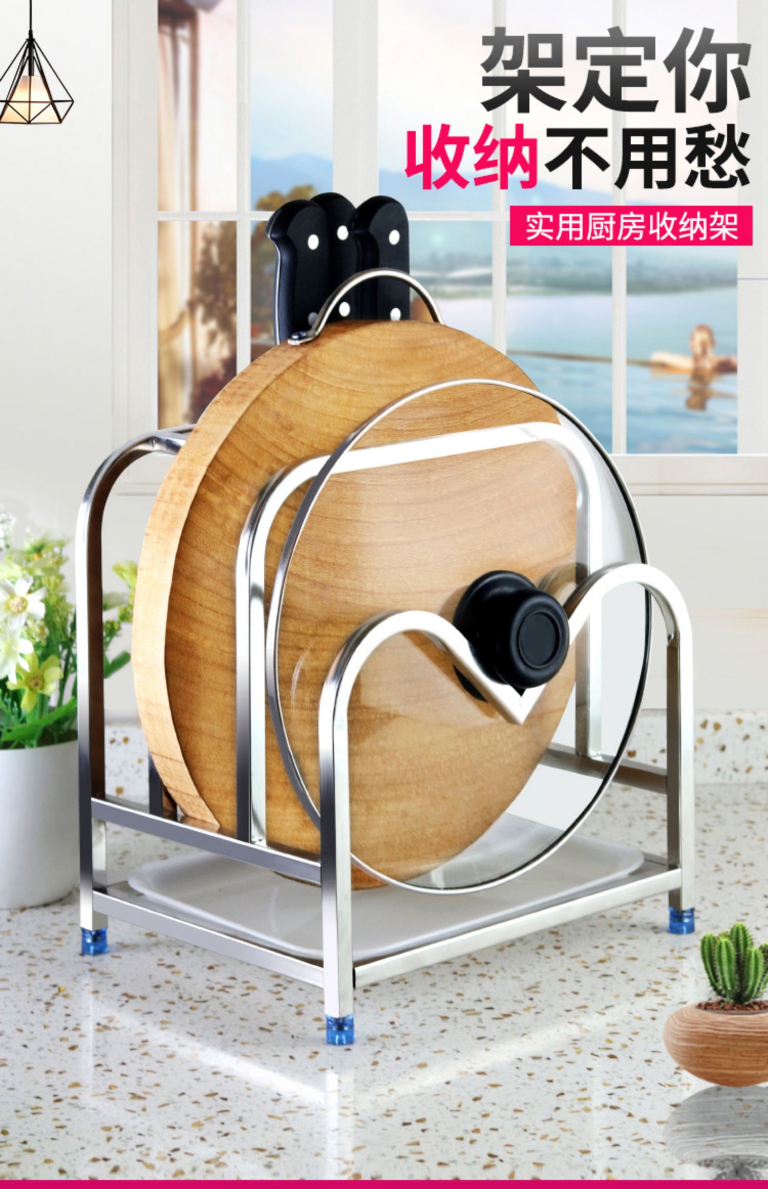 不锈钢厨房刀架置物架菜板放置架台面砧板架菜刀刀具一体收纳架子