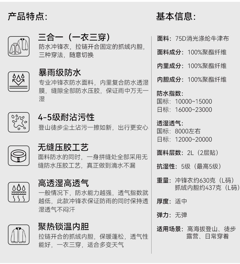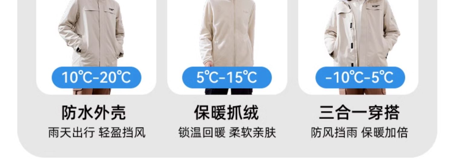 拓路者户外露营男女情侣登山服可拆卸防风防水外套