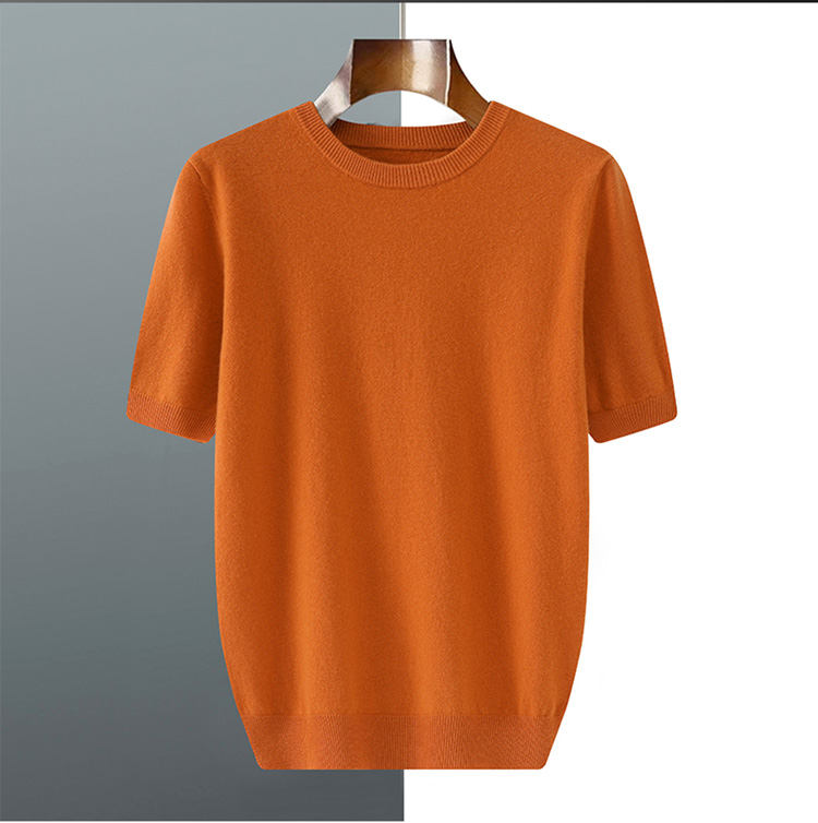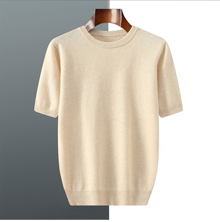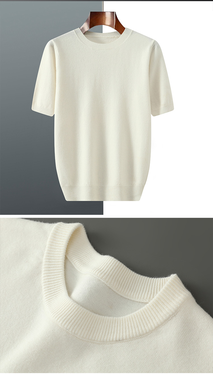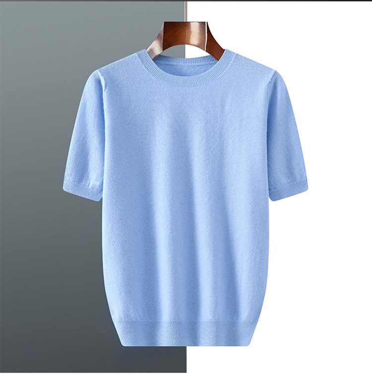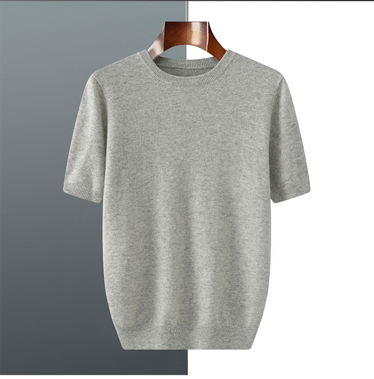 春夏秋冬男短袖t恤衫毛衣宽松五分袖纯色针织薄款上衣安迪绒半袖