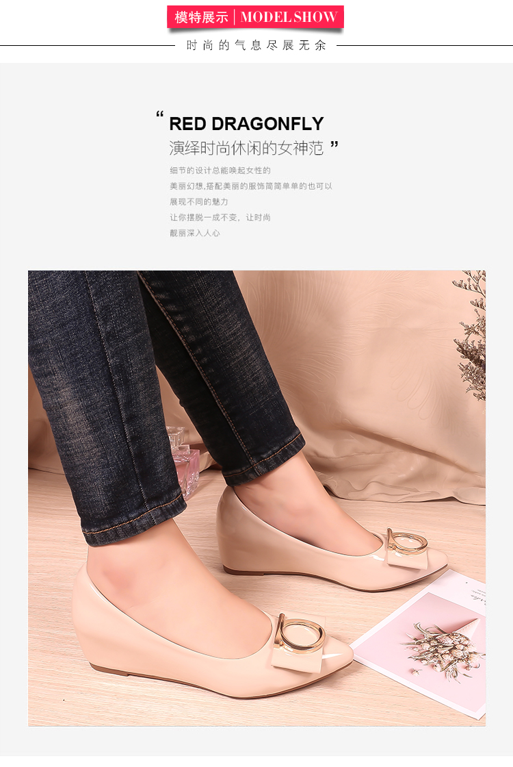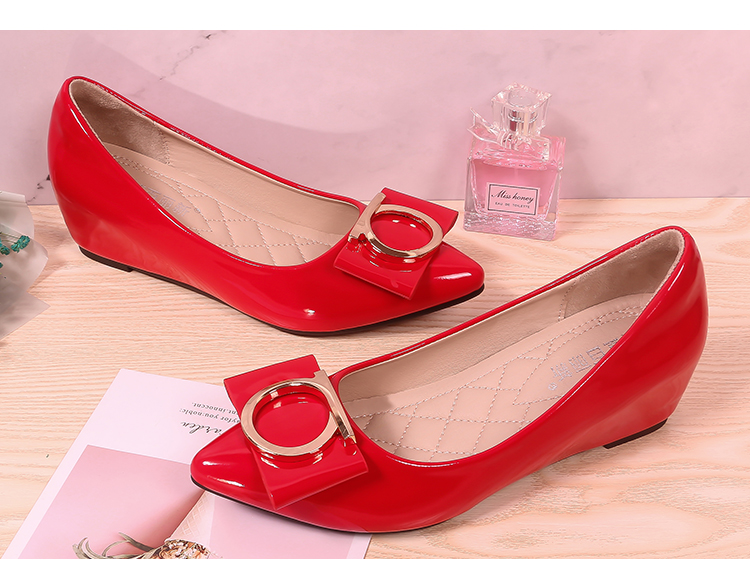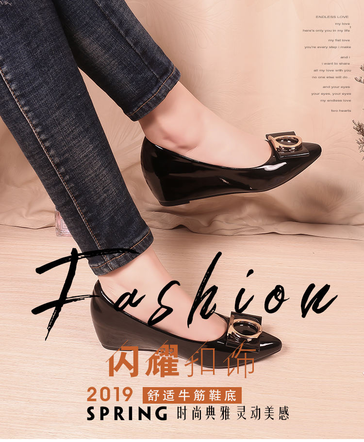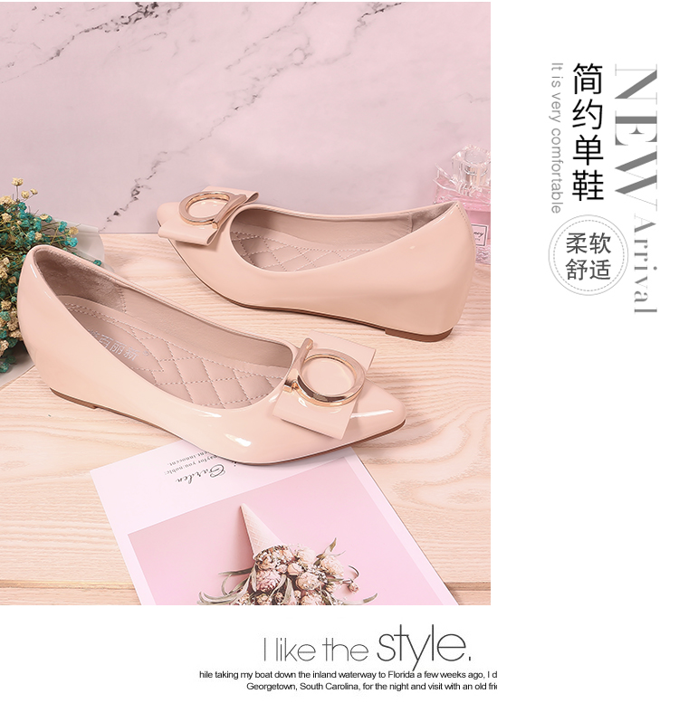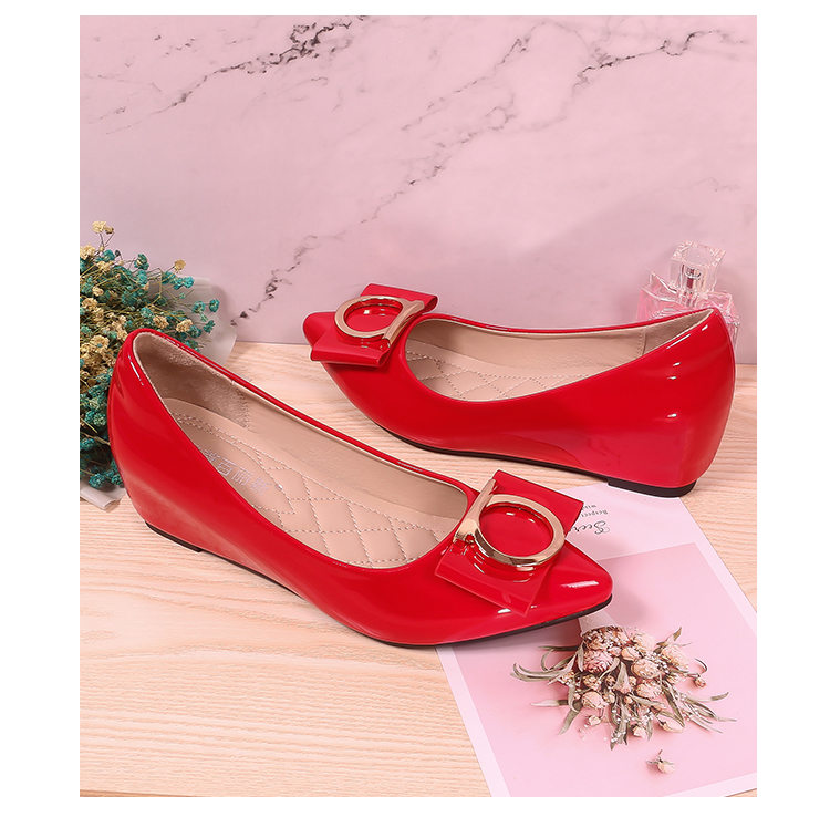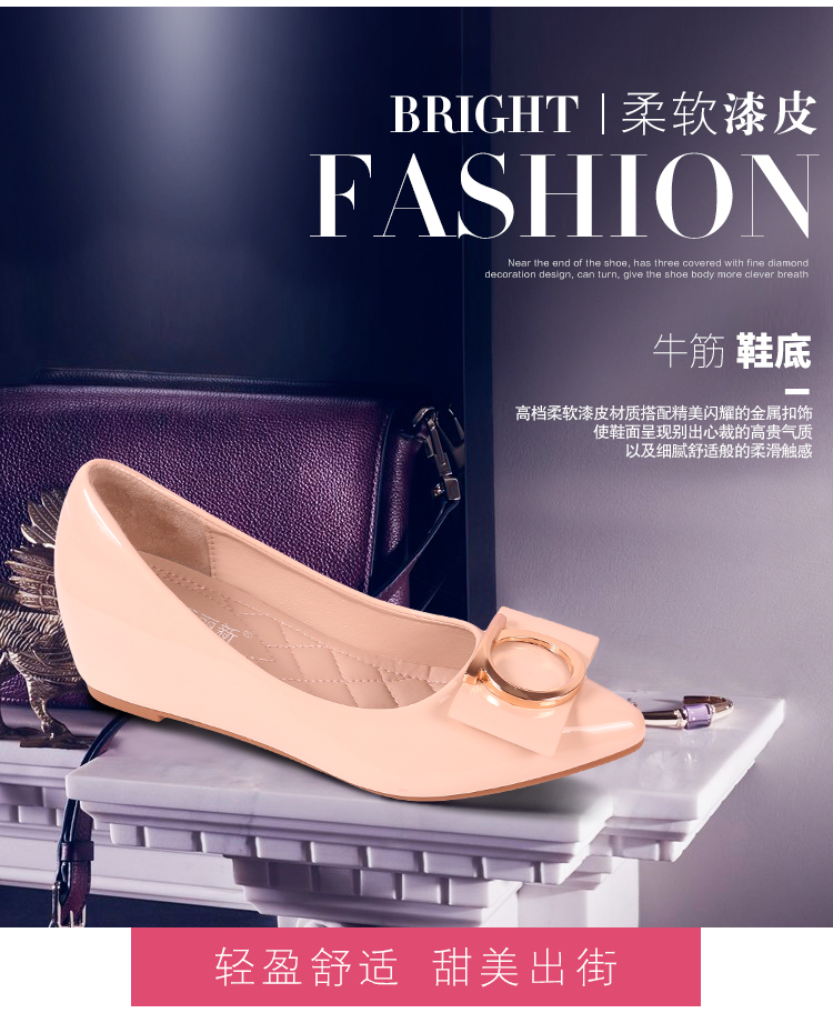 豆豆鞋内增高女2025新款春季百搭尖头浅口漆皮平底淑女坡跟单鞋女
