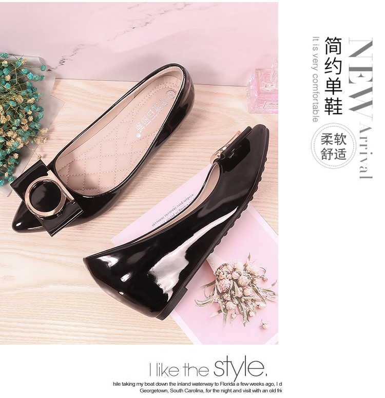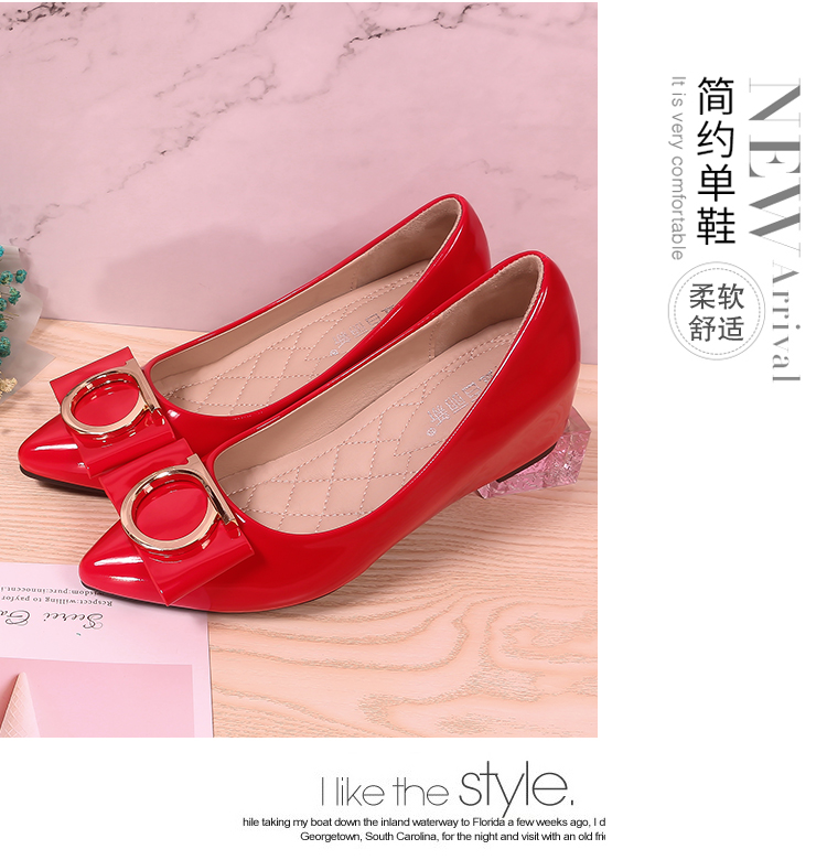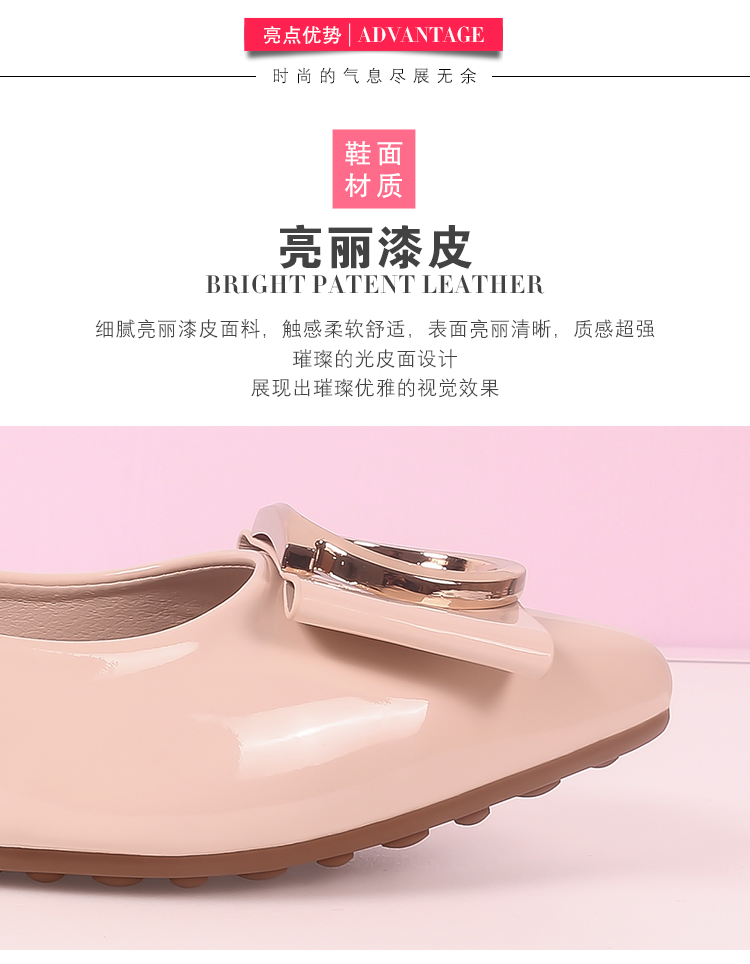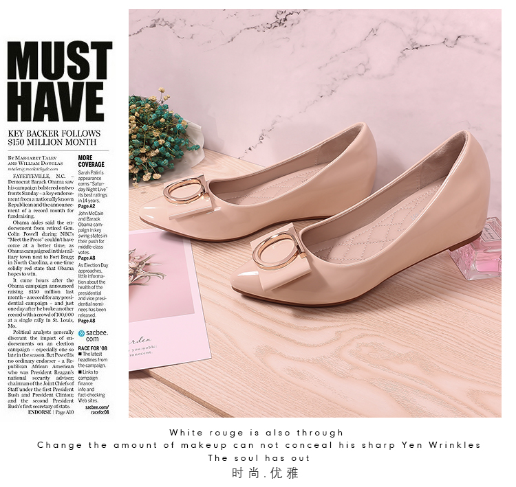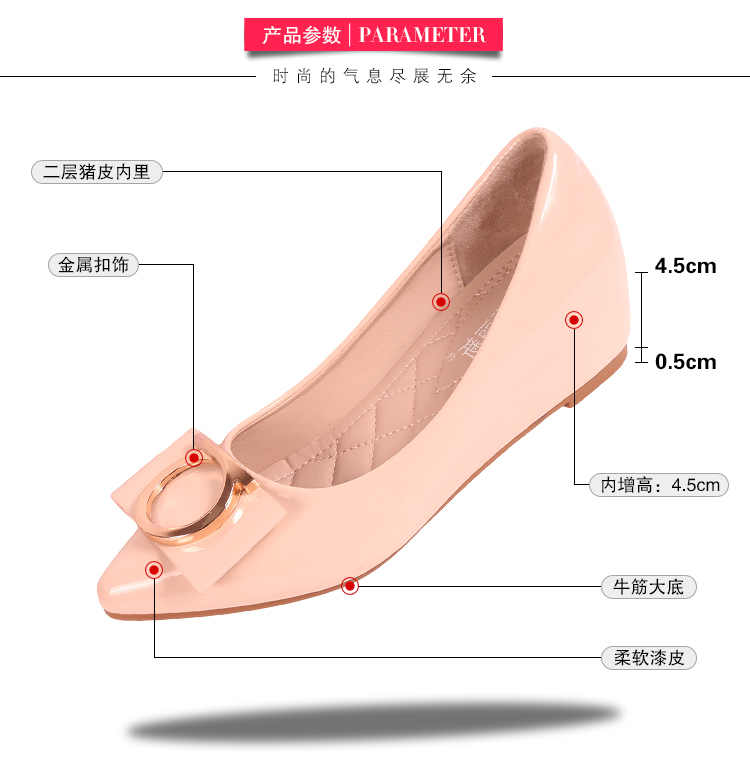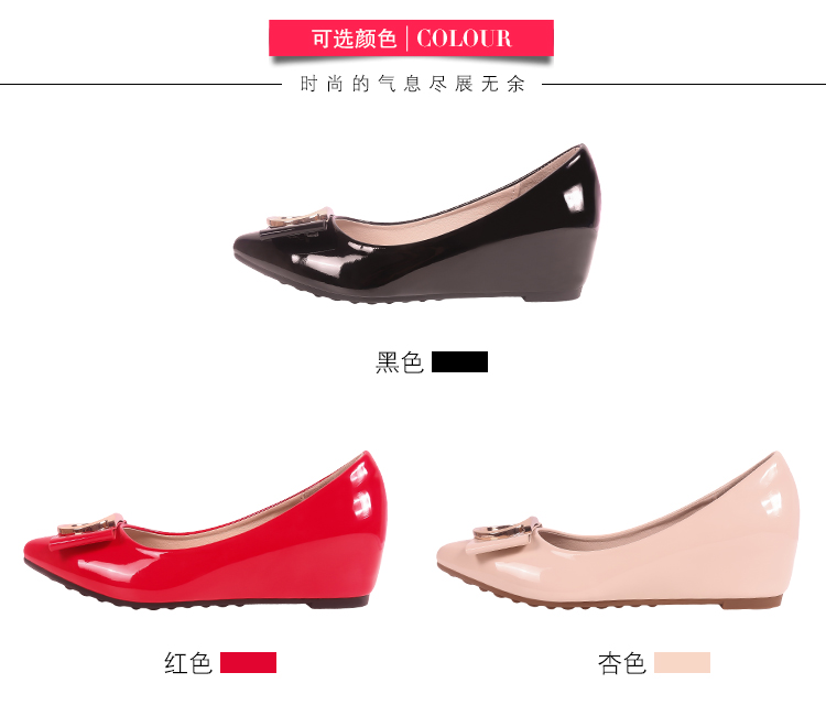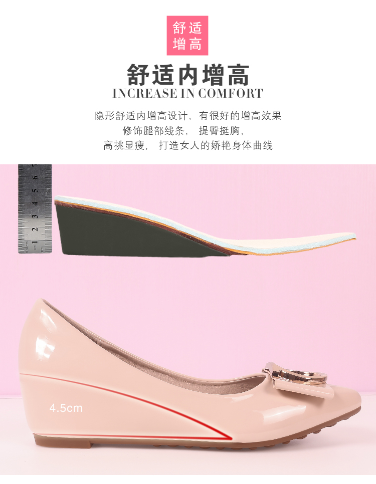 豆豆鞋内增高女2025新款春季百搭尖头浅口漆皮平底淑女坡跟单鞋女