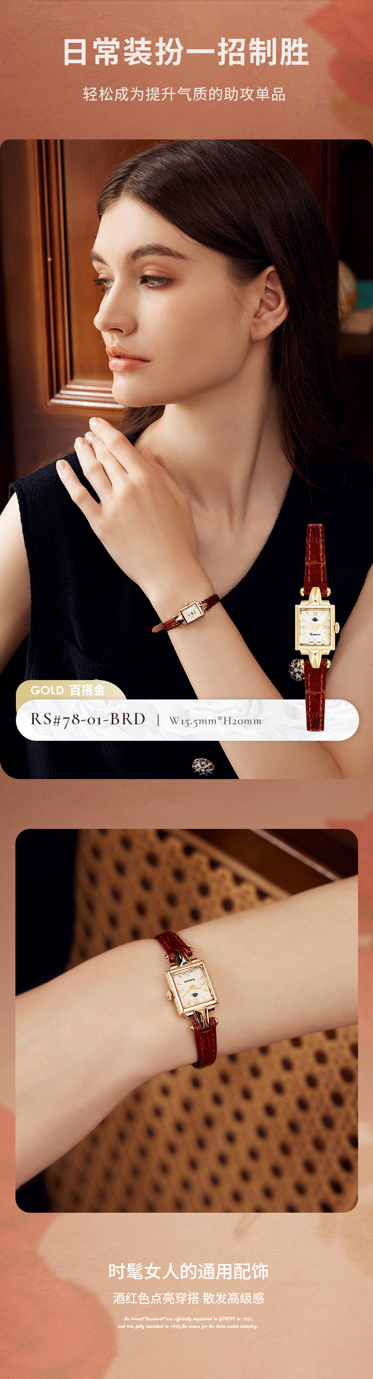 Rosemont 瑞士复古精致真皮迷你小方表玫瑰手表女