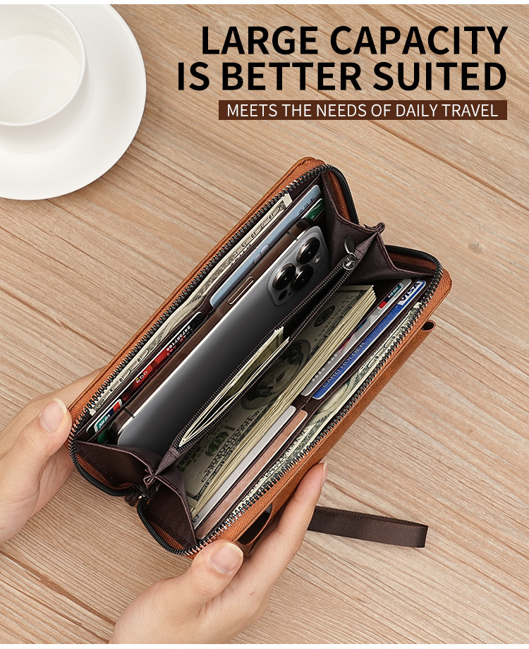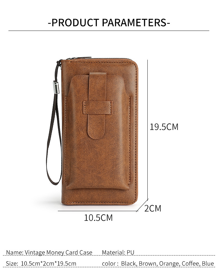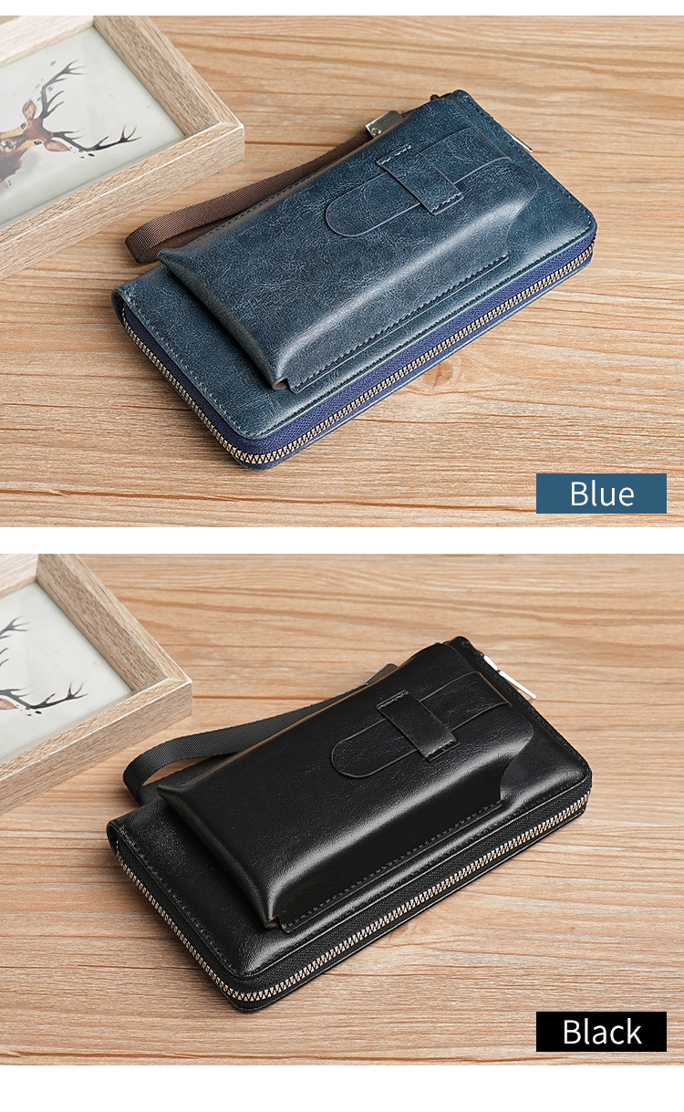 新款男士长款钱包复古时尚软皮夹拉链多卡位钱夹手机包大容量卡包