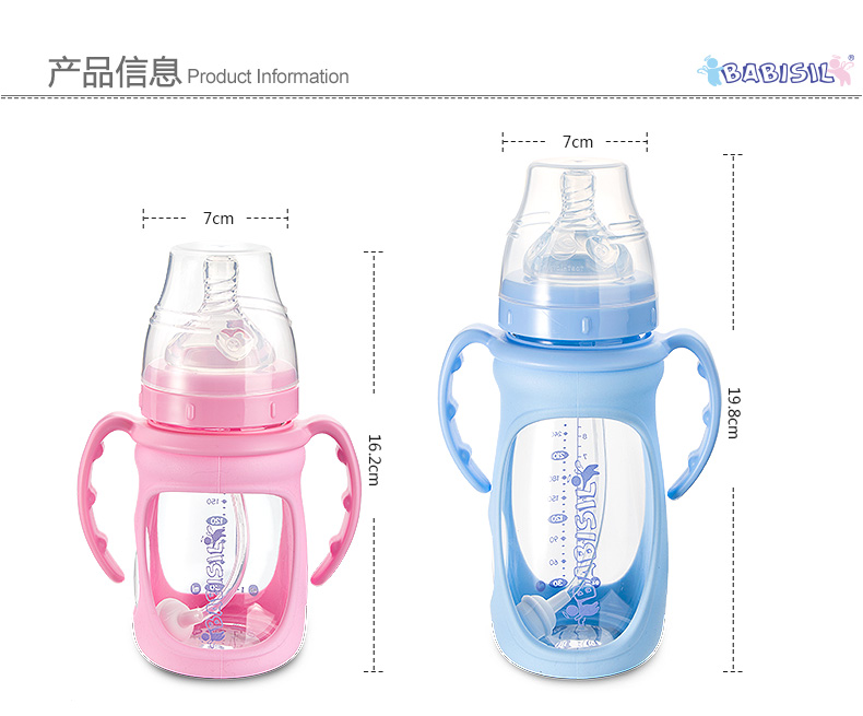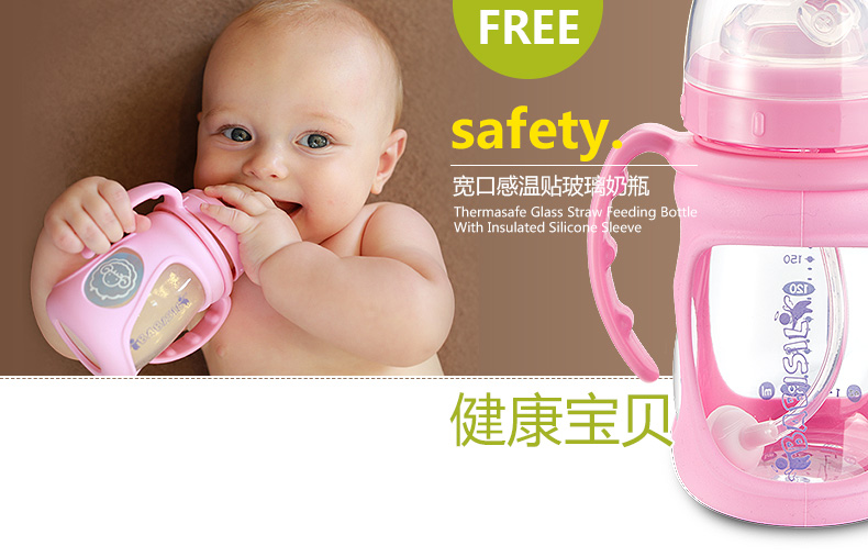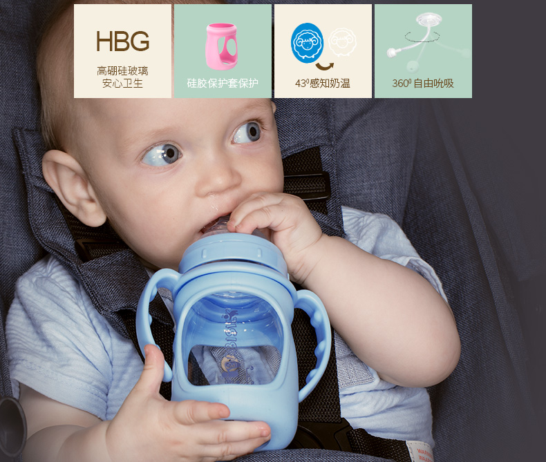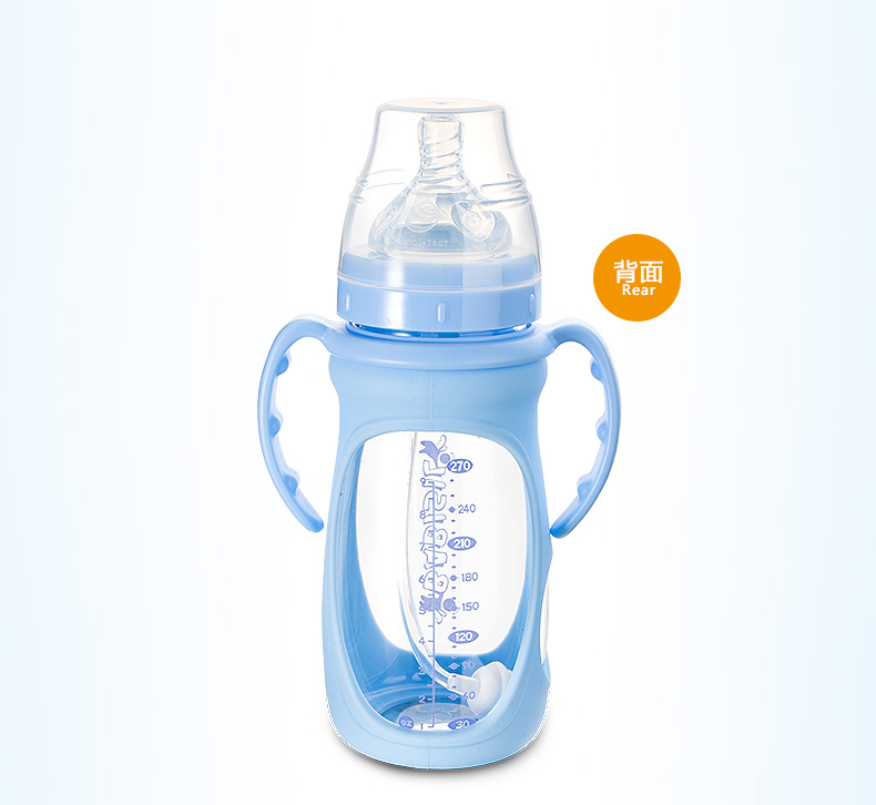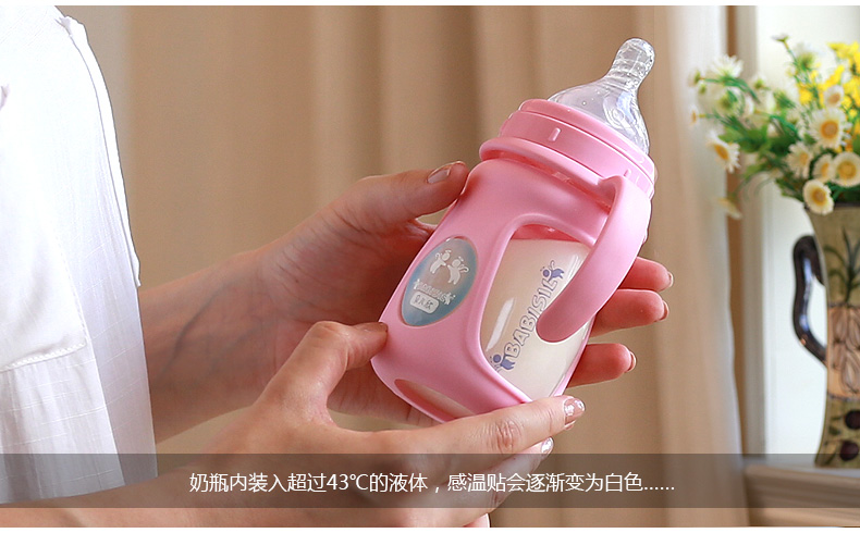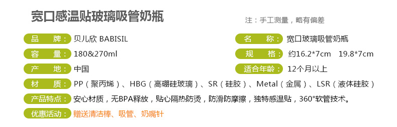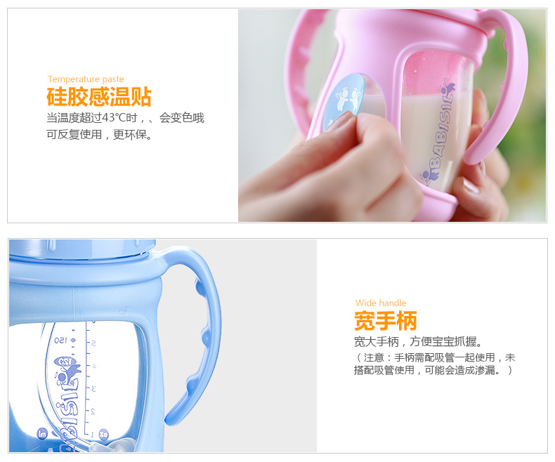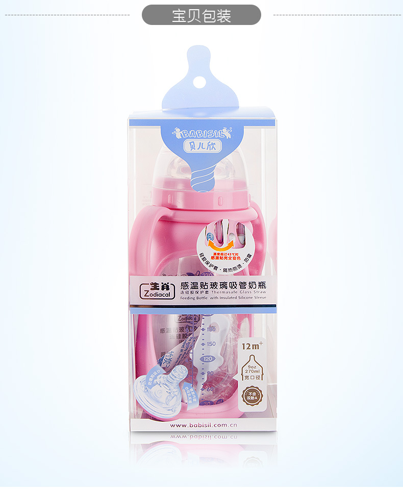 贝儿欣宽口径感温防呛防爆玻璃奶瓶 宝宝吸管奶瓶 新生儿奶瓶礼盒
