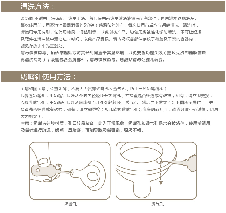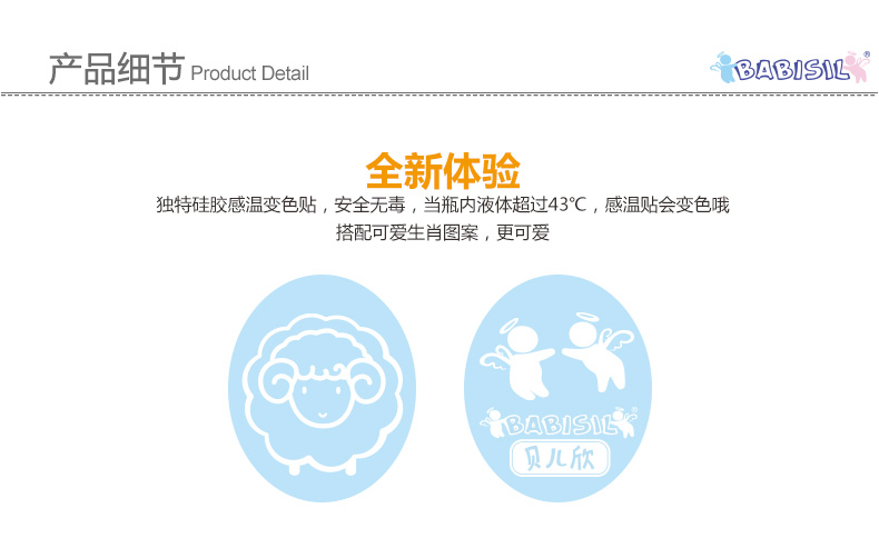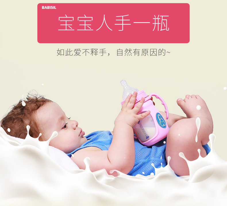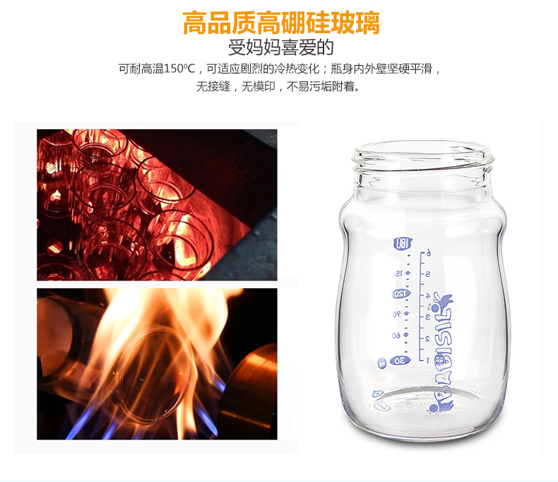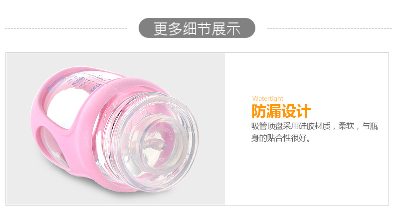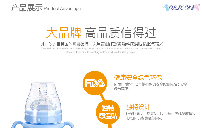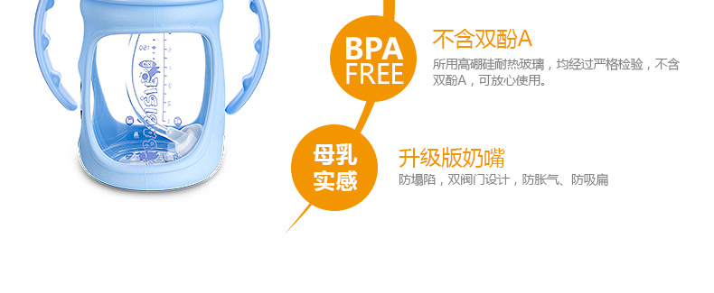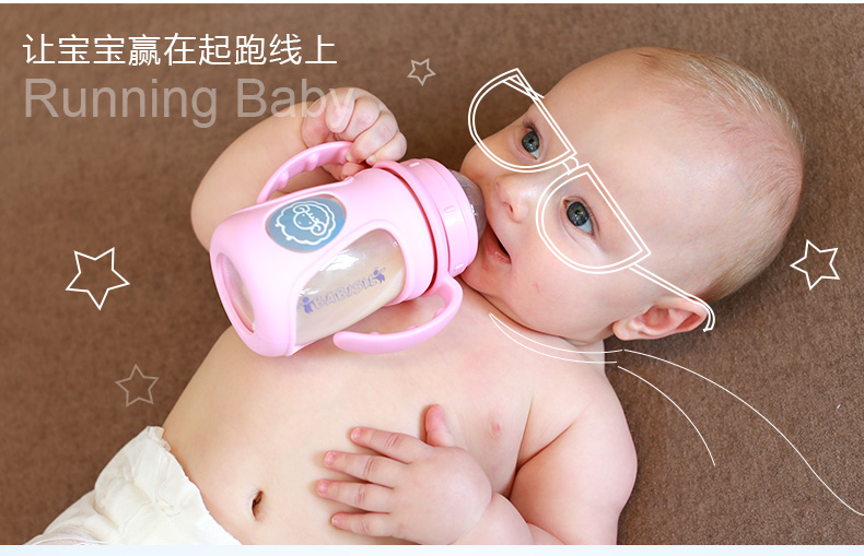 贝儿欣宽口径感温防呛防爆玻璃奶瓶 宝宝吸管奶瓶 新生儿奶瓶礼盒