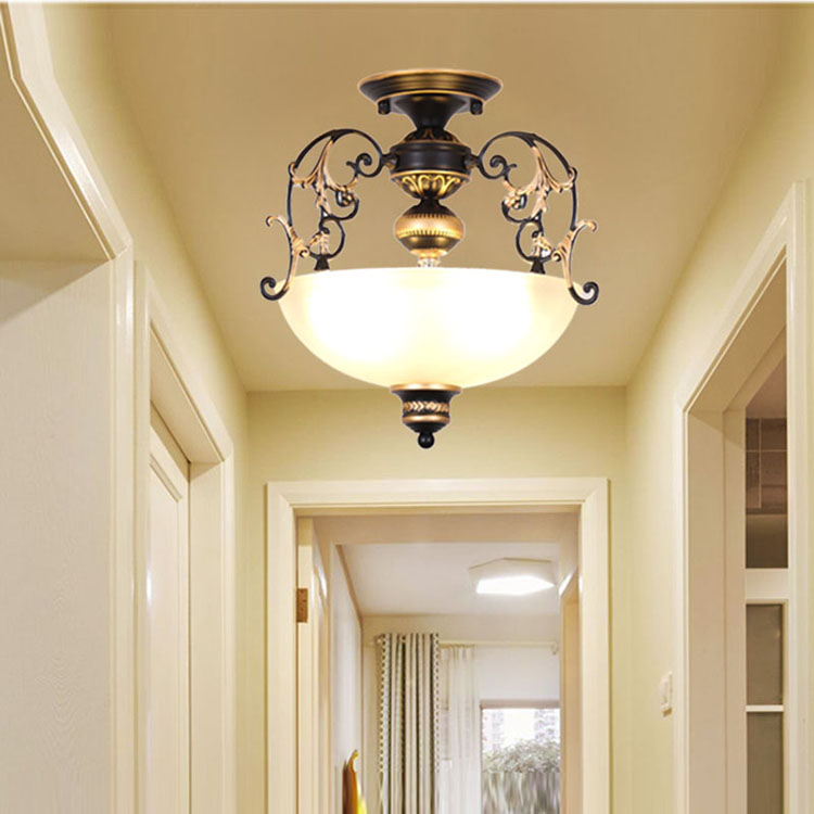 欧式复古阳台楼梯间美式简约过道灯铁艺个性入户门厅玄关半吸顶灯