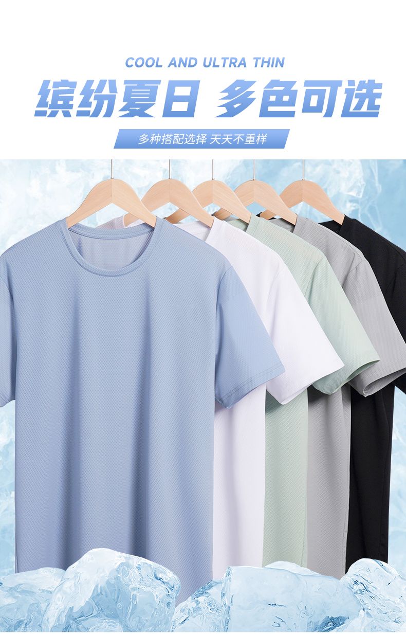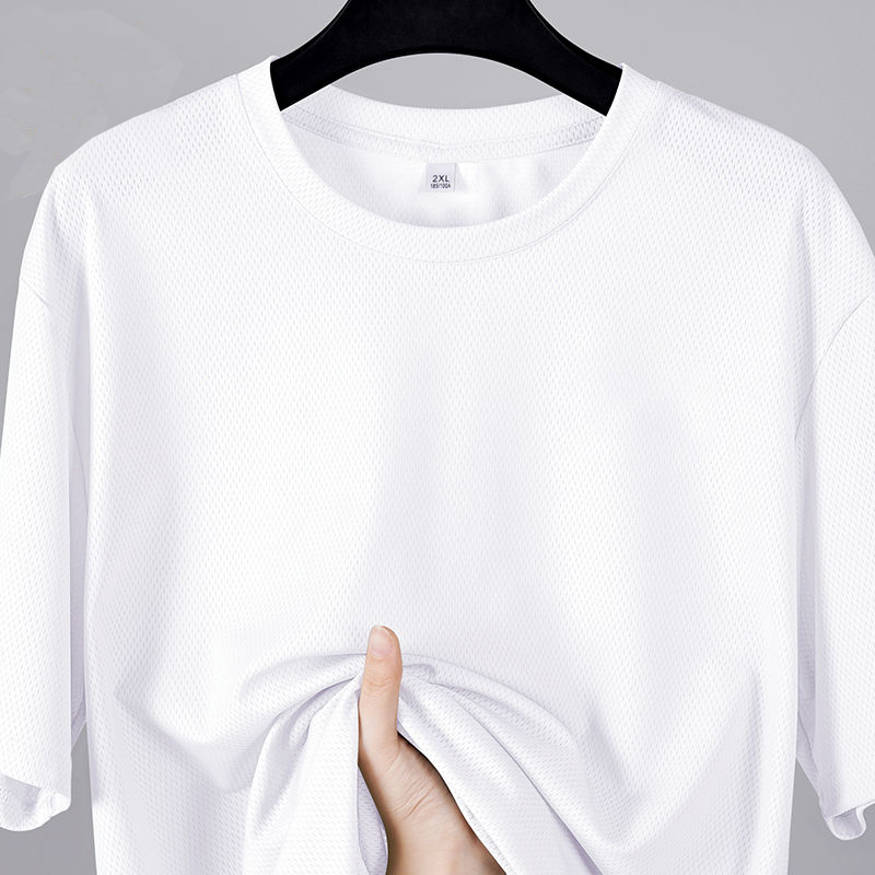 夏季冰丝t恤男士运动凉感网眼透气薄款半袖宽松大码纯色上衣速干T