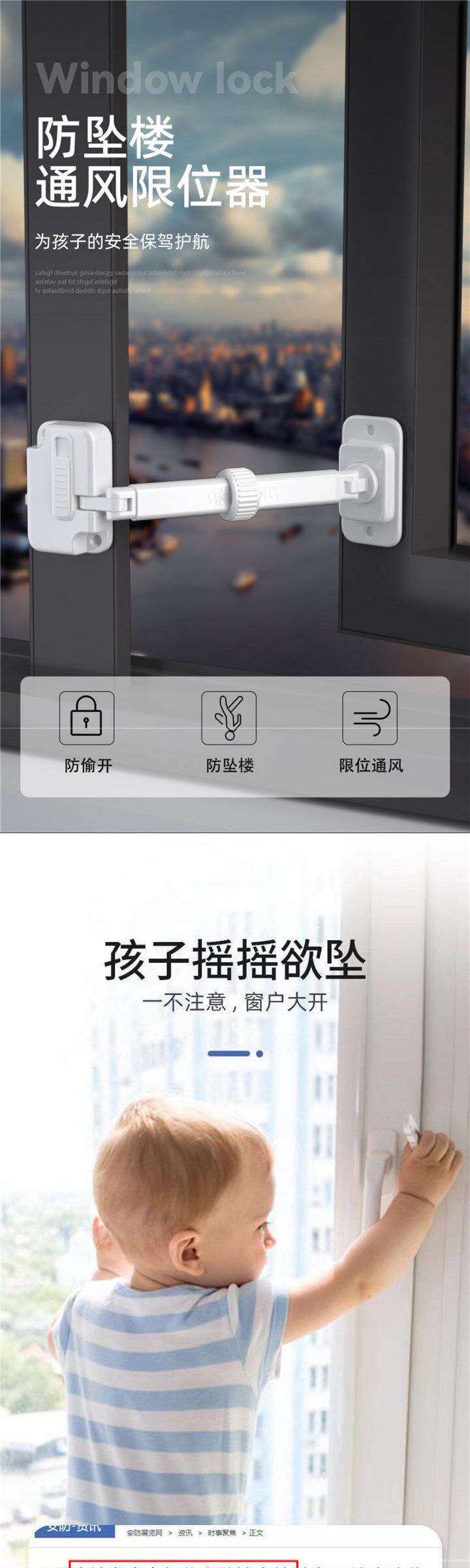 推拉窗限位防风固定器窗户安全锁防开窗锁扣防护高层儿童防坠神器