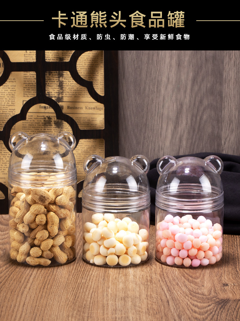 瓜子储存盒卡通熊收纳瓶糖果食品罐零食亚克力罐可爱密封罐饼干罐
