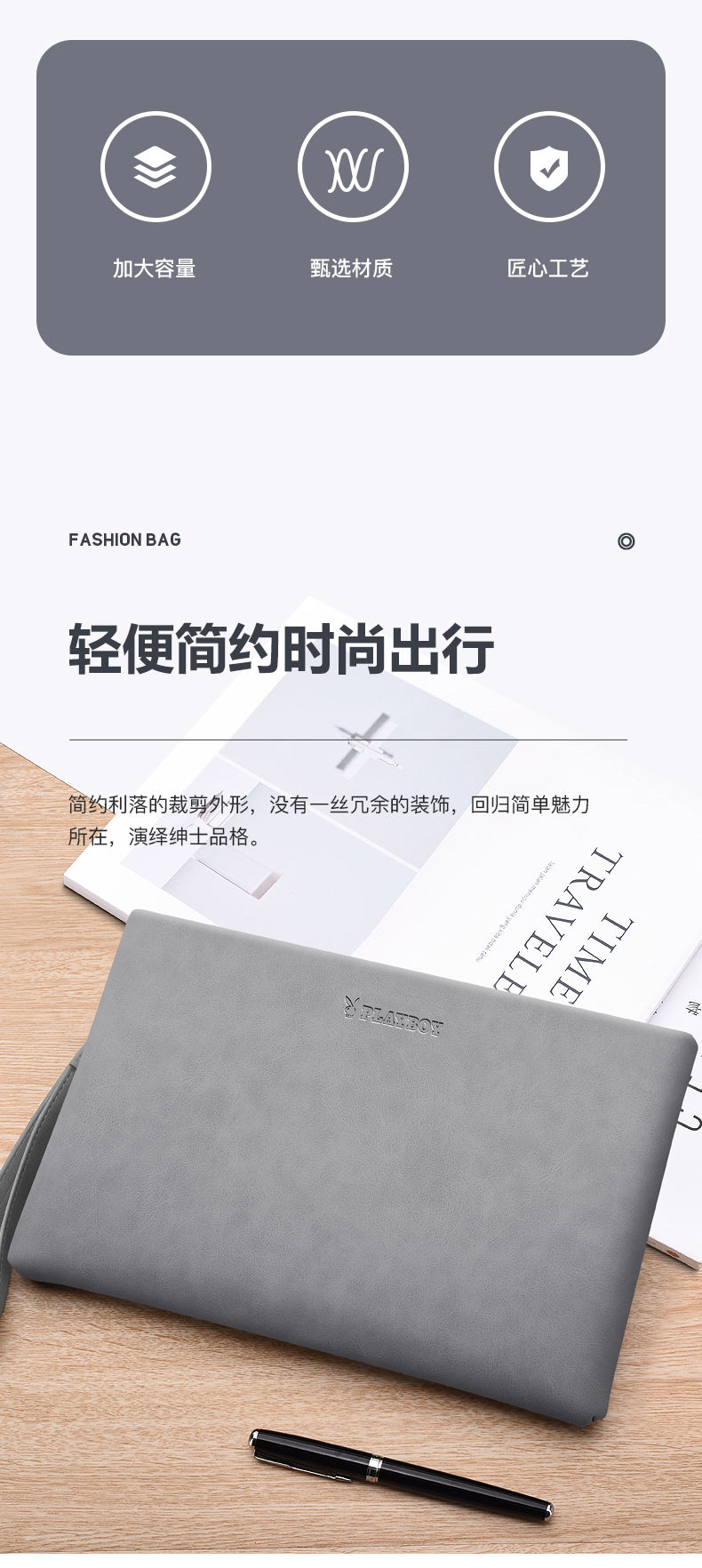 花花公子男士手拿包新款手包商务休闲手抓包包百搭大容量信封包潮