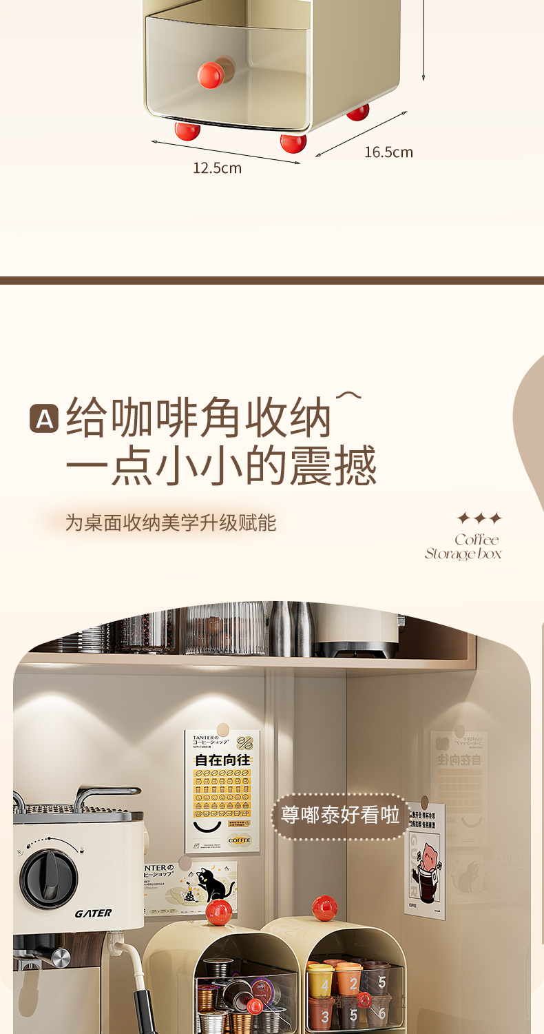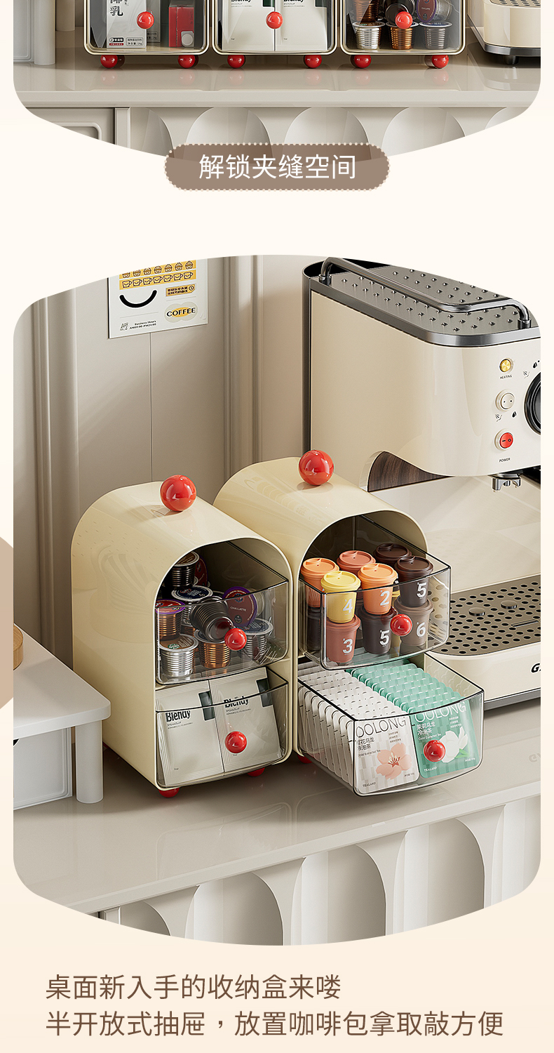 咖啡角茶包收纳盒抽屉式办公室茶水间吧台桌面胶囊咖啡多层置物架