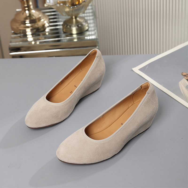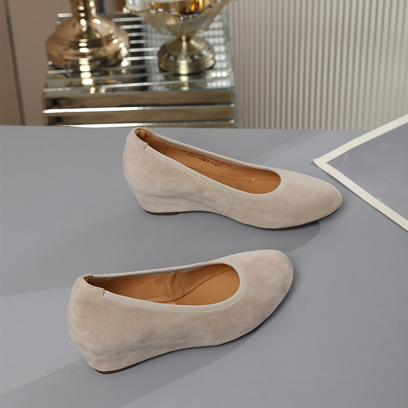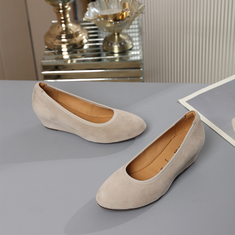 正品真皮德国Golbor女鞋2025春新款圆头内增高软底坡跟单鞋95.360