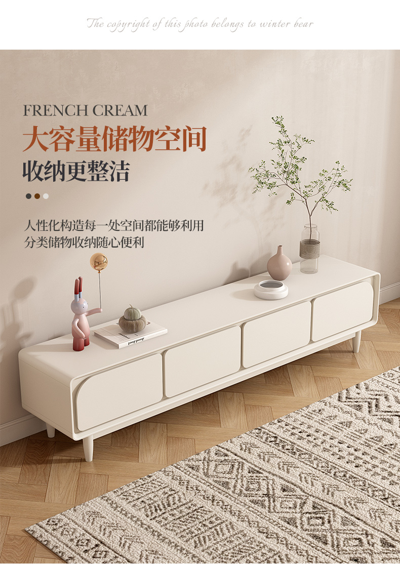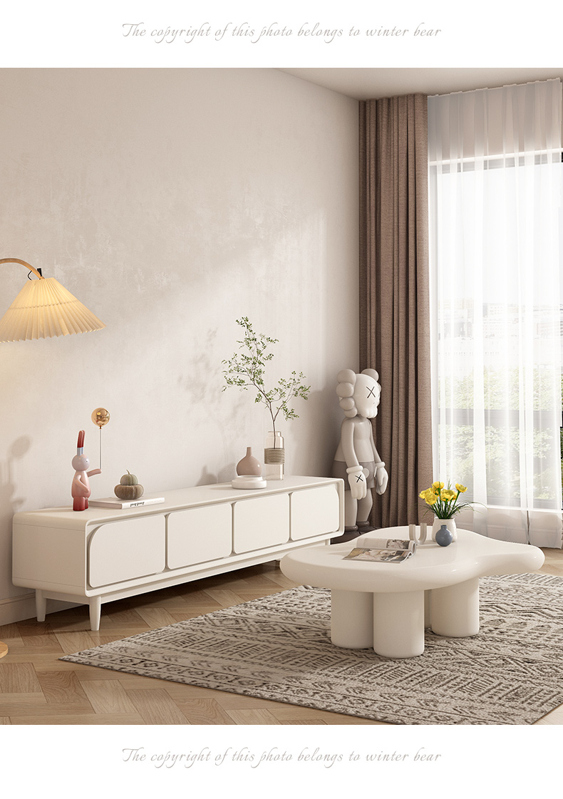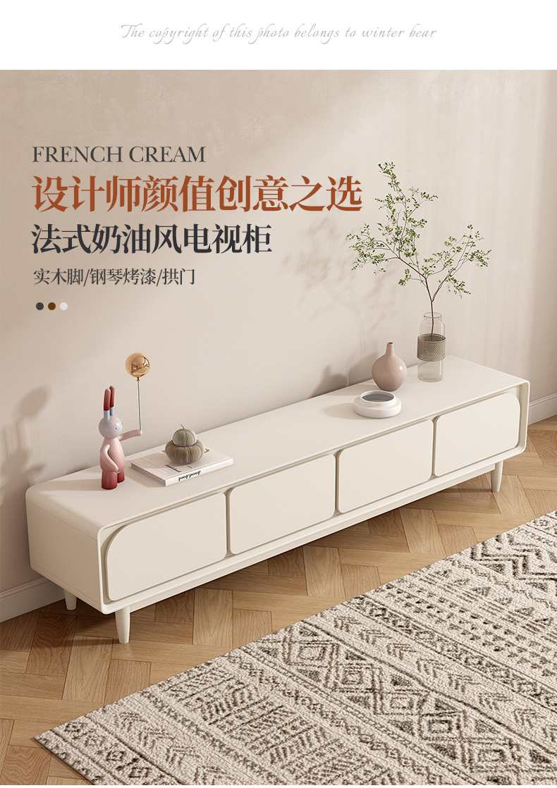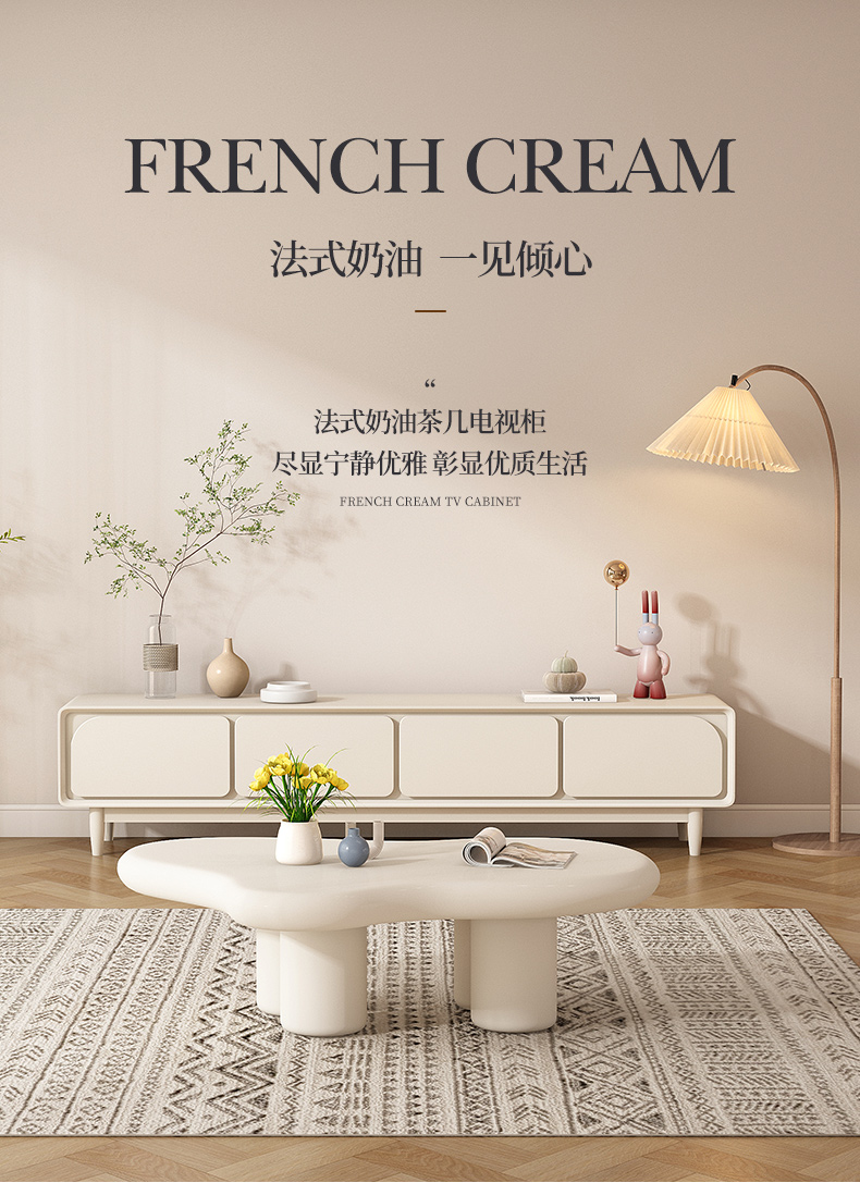 法式电视柜简约现代实木小户型2025新款奶油风茶几电视机柜组合