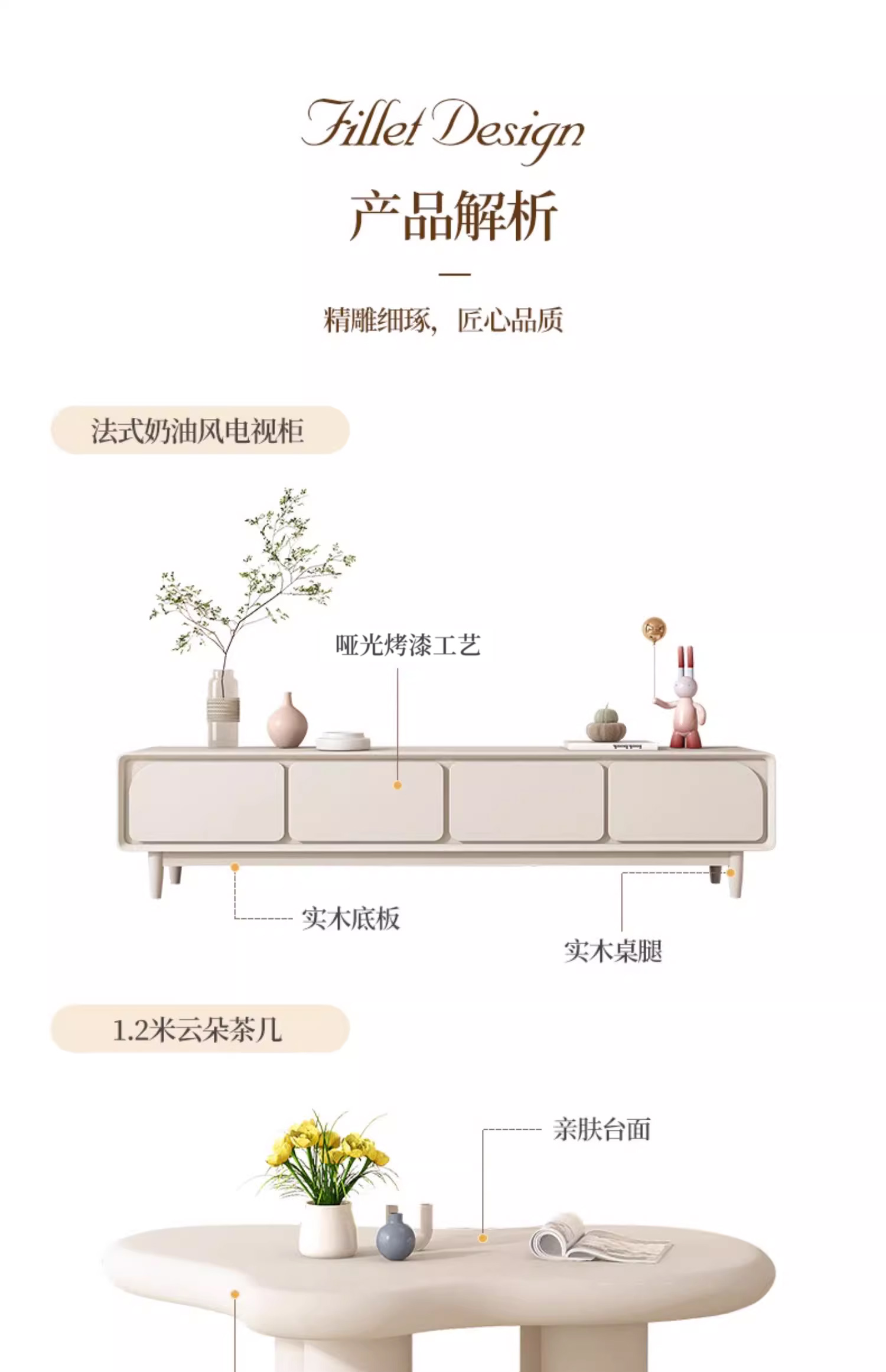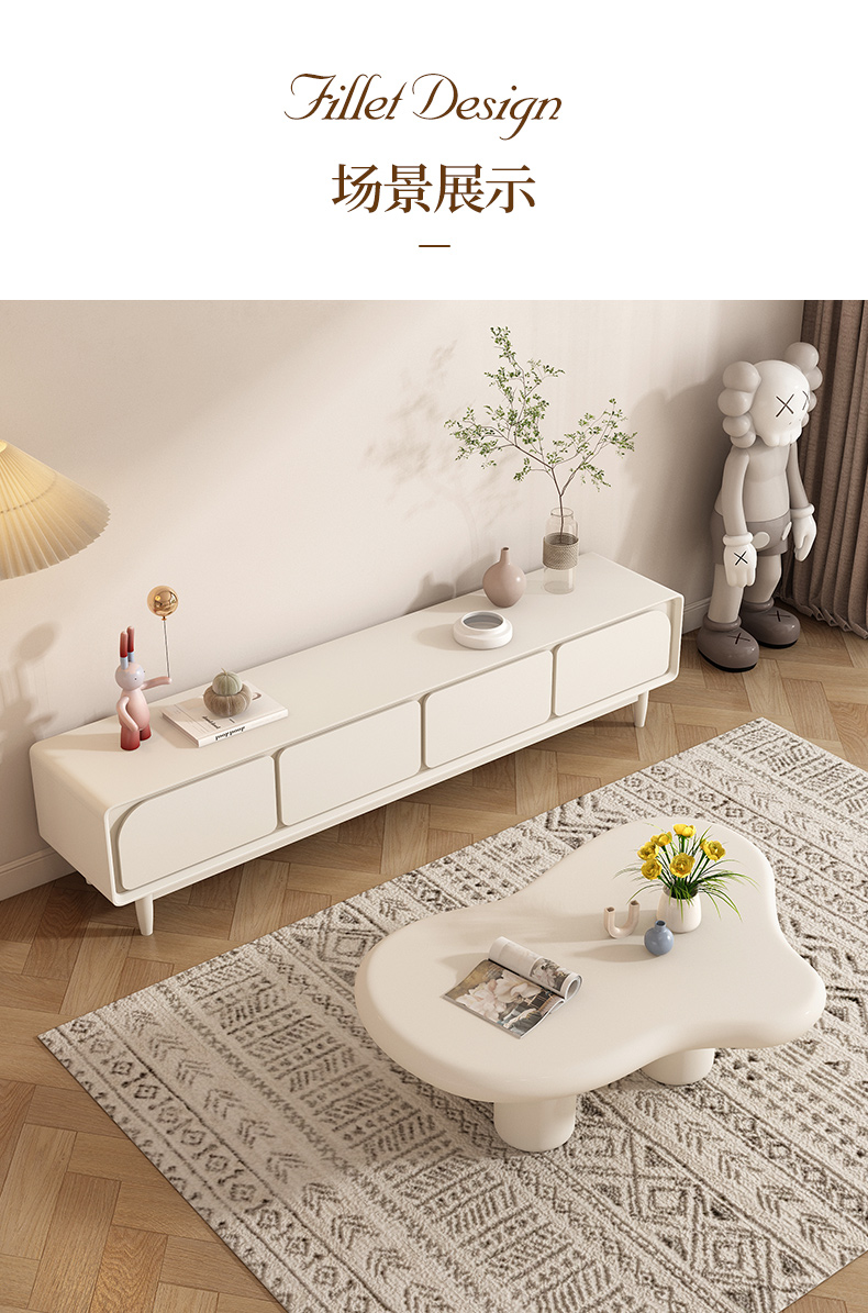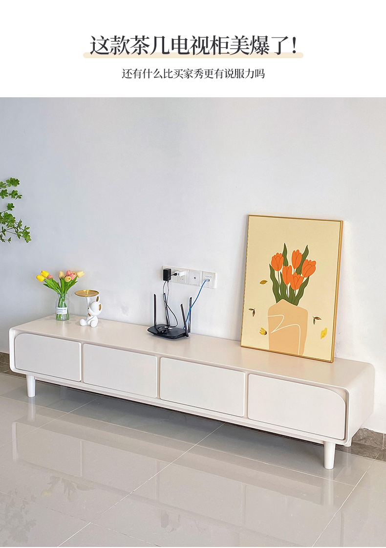 法式电视柜简约现代实木小户型2025新款奶油风茶几电视机柜组合