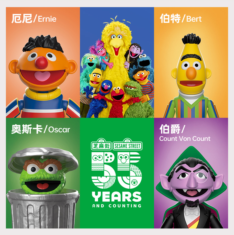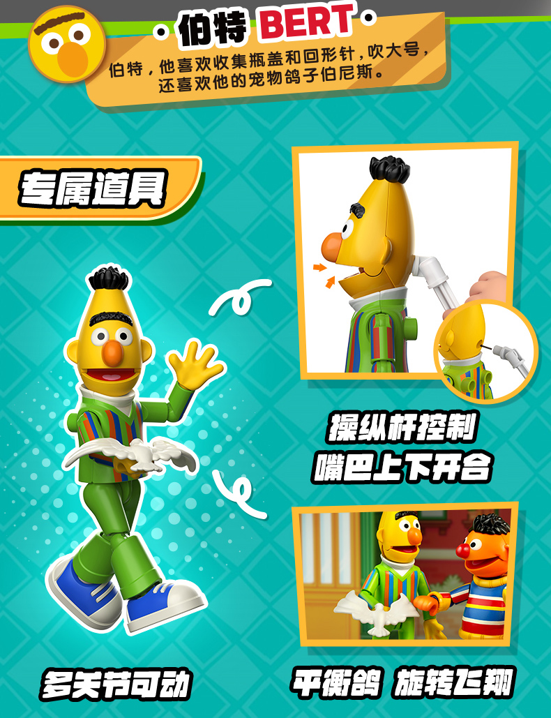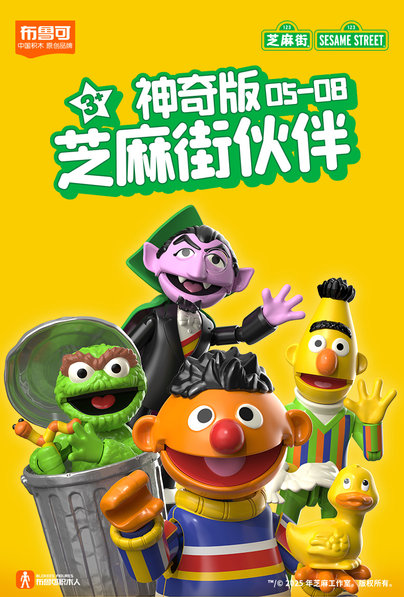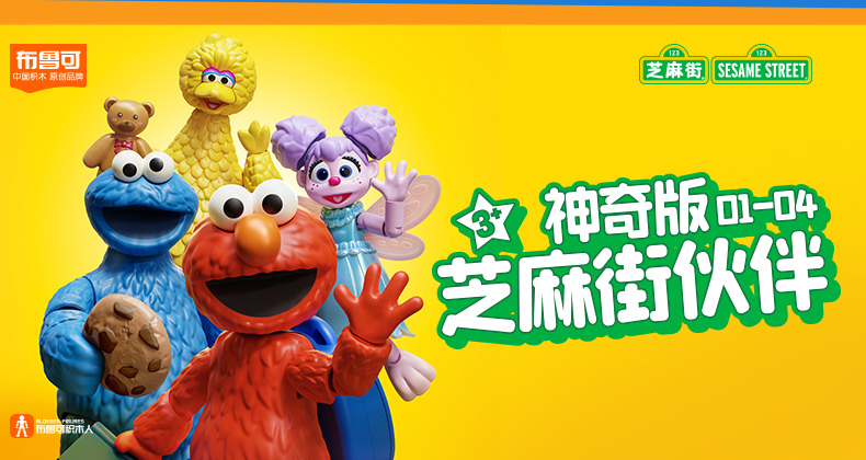 布鲁可积木人芝麻街神奇版艾摩甜饼怪大鸟奥斯卡拼装玩具
