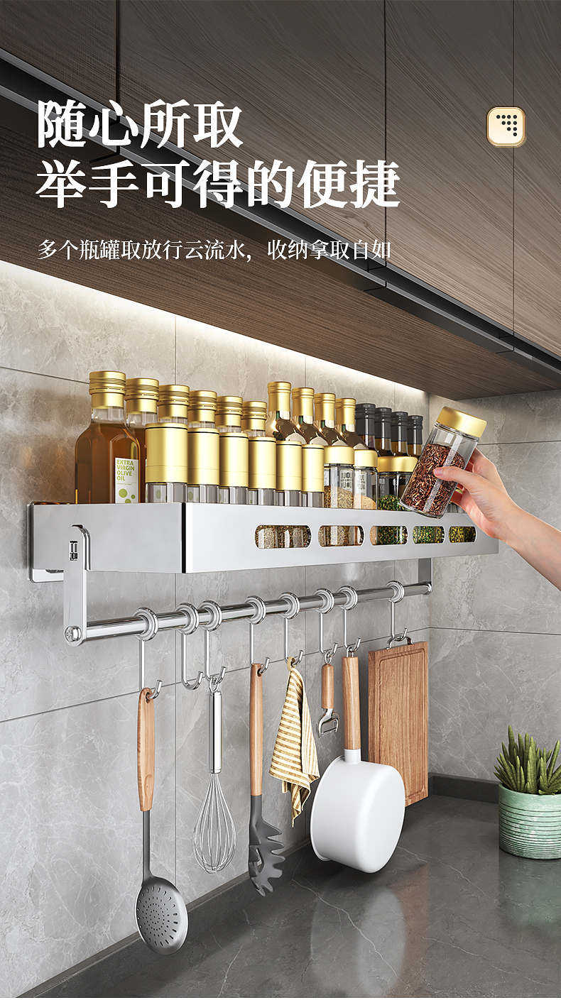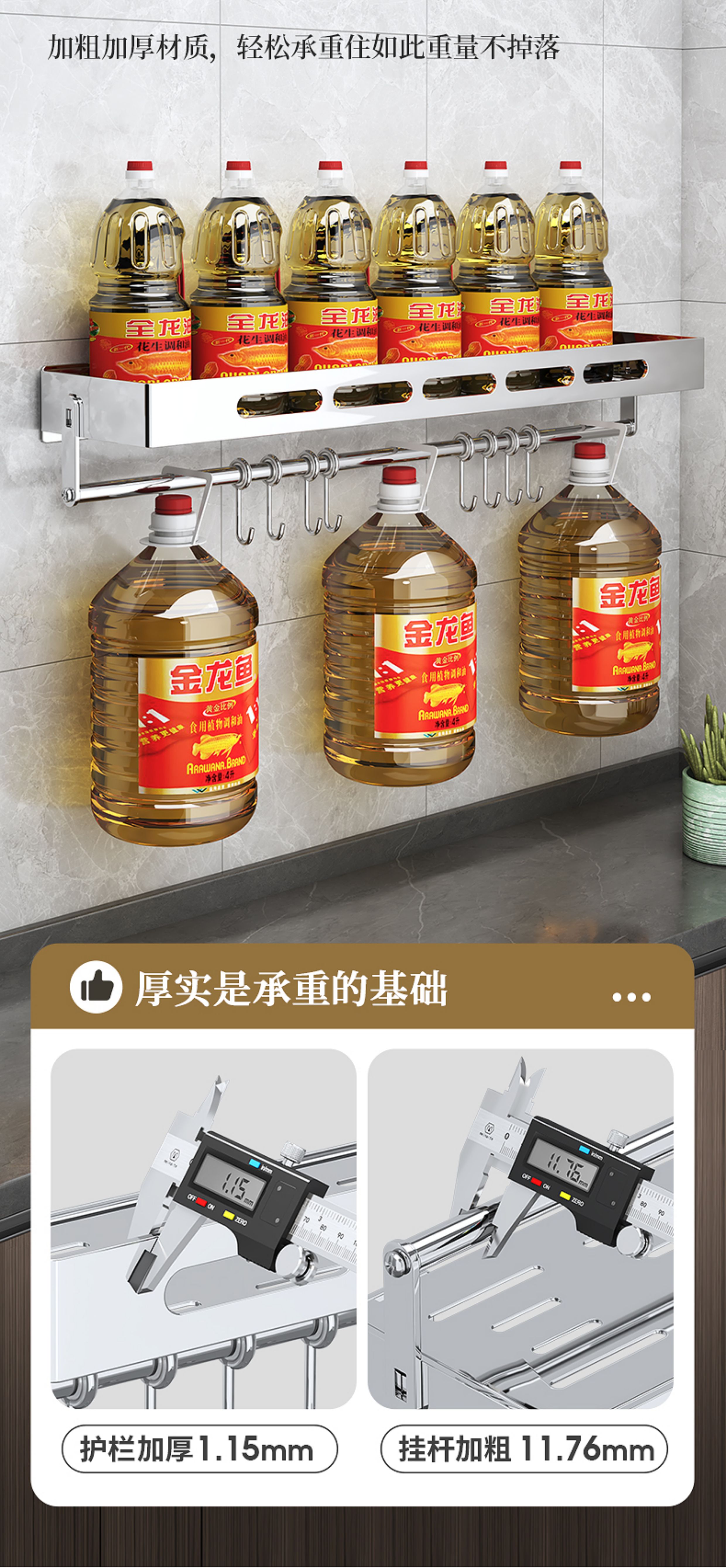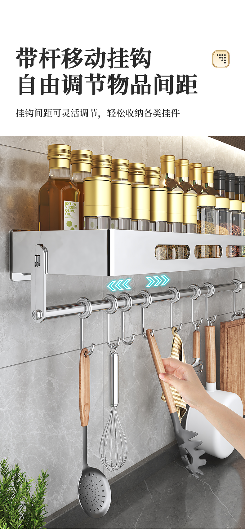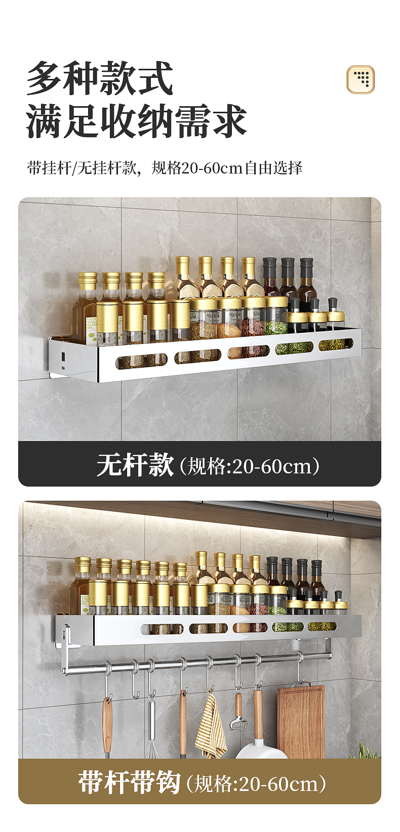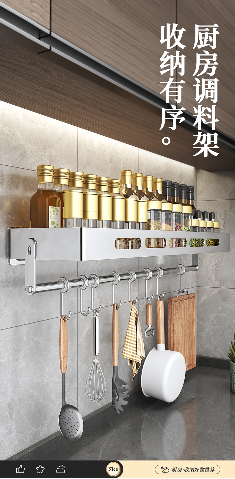 厨房不锈钢置物架免打孔家用调料瓶收纳架壁挂式多功能调味料挂架
