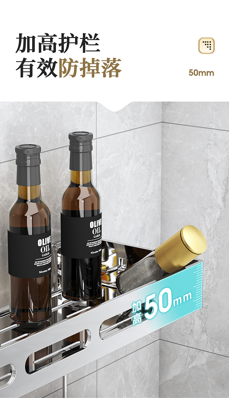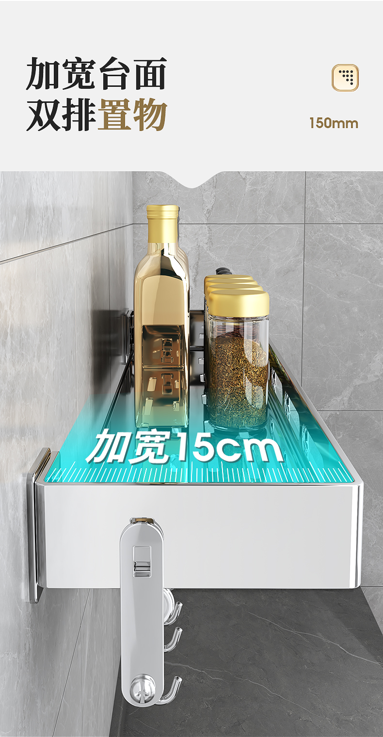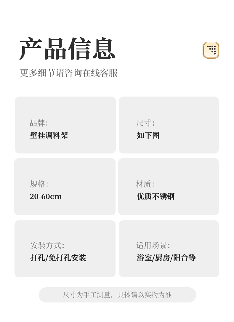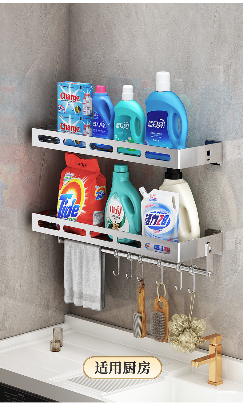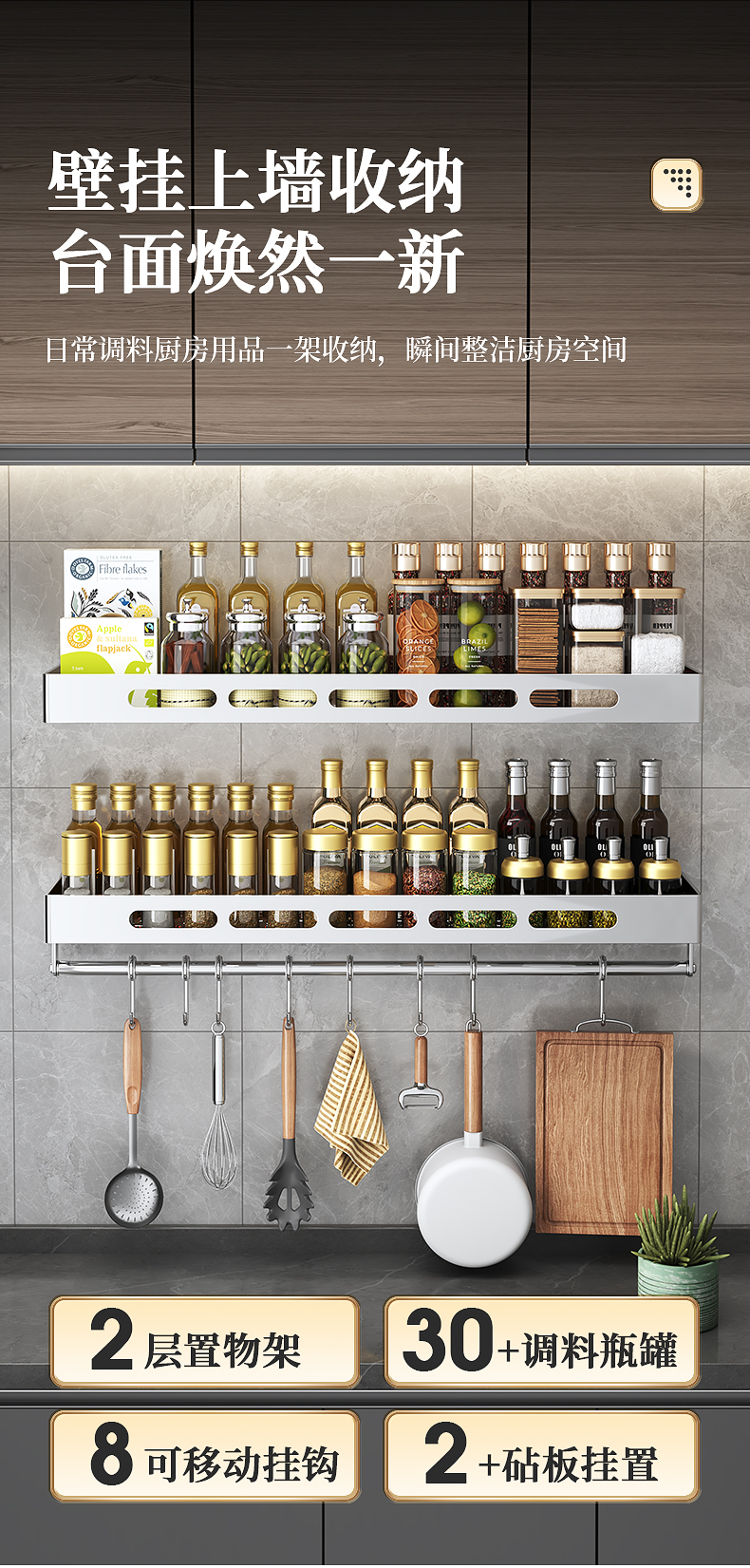 厨房不锈钢置物架免打孔家用调料瓶收纳架壁挂式多功能调味料挂架