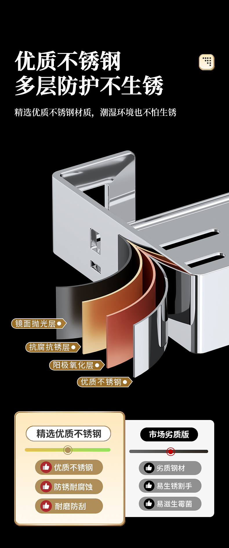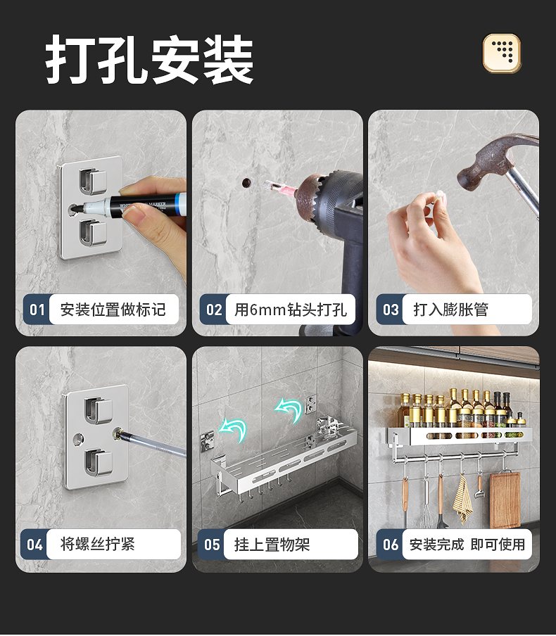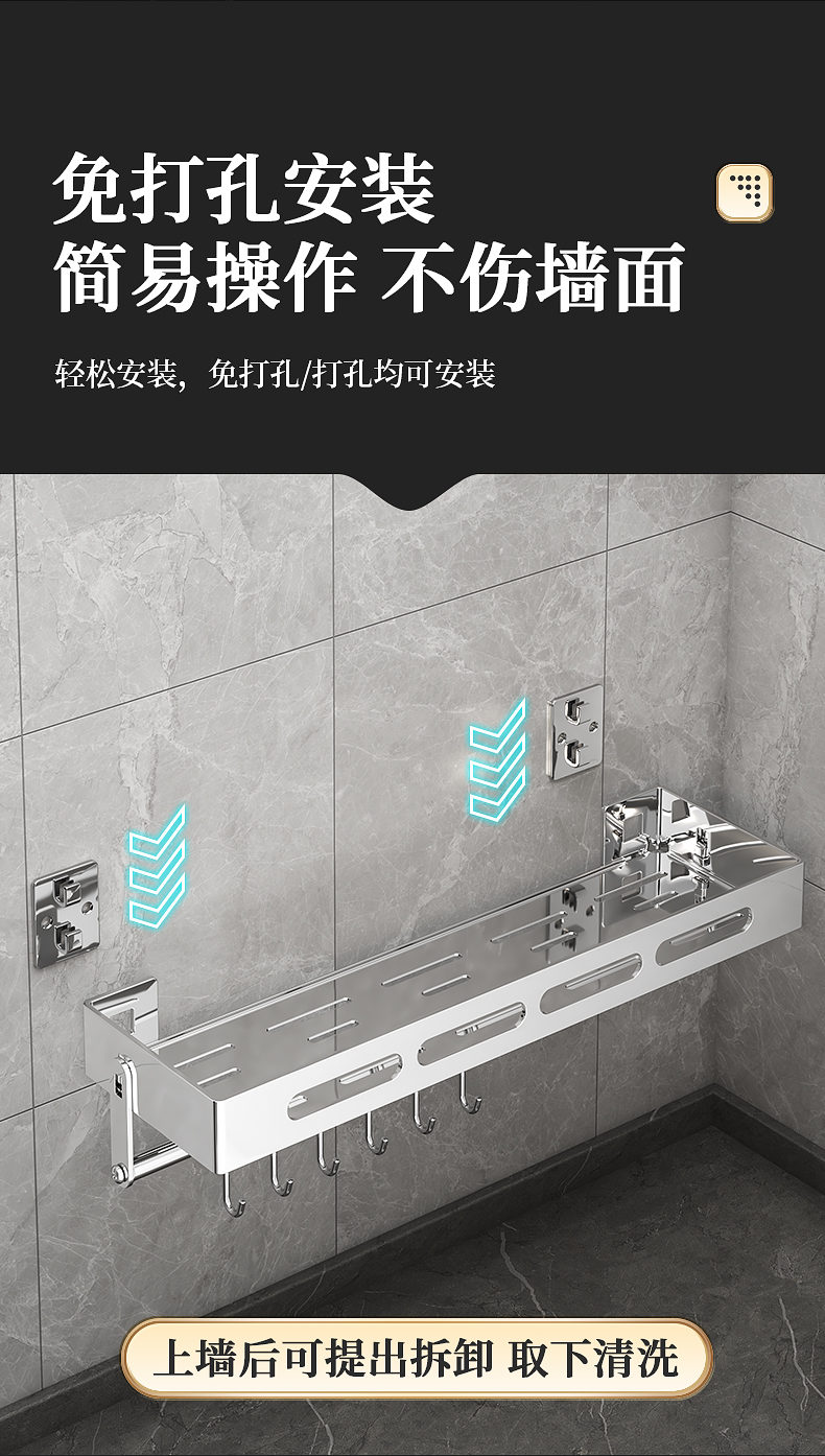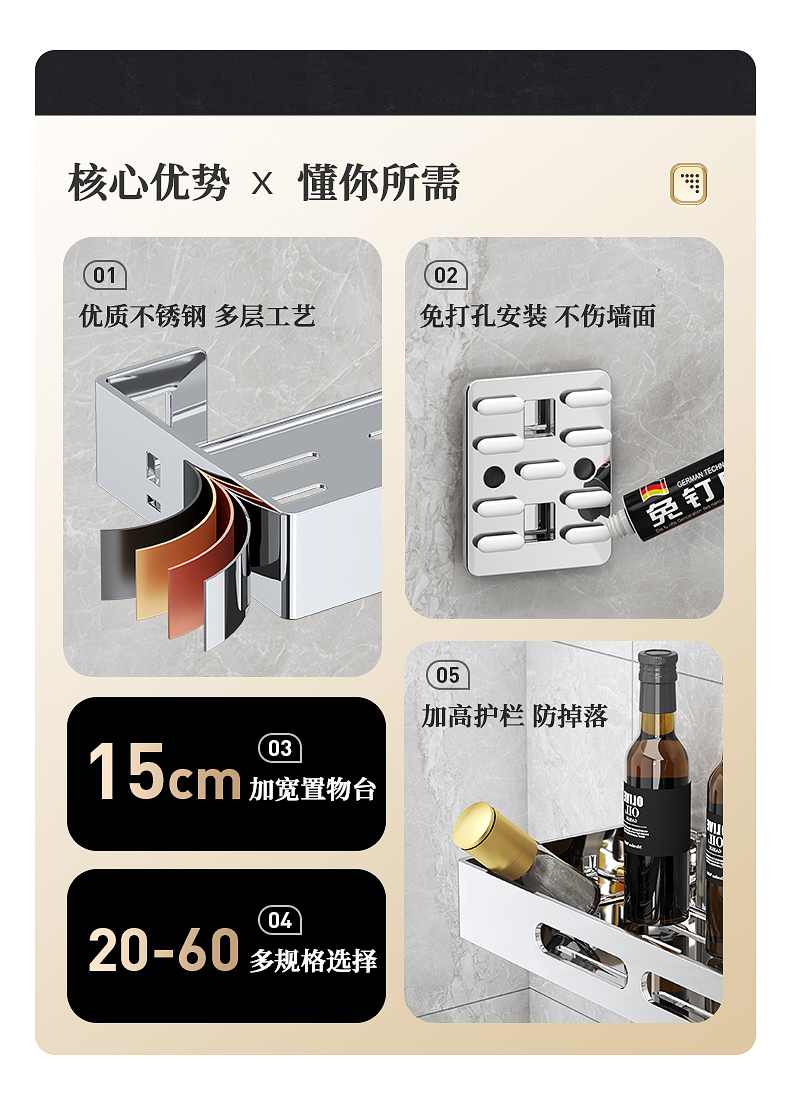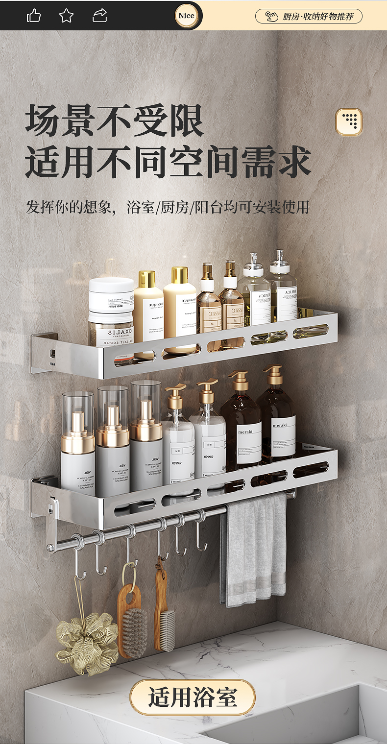厨房不锈钢置物架免打孔家用调料瓶收纳架壁挂式多功能调味料挂架