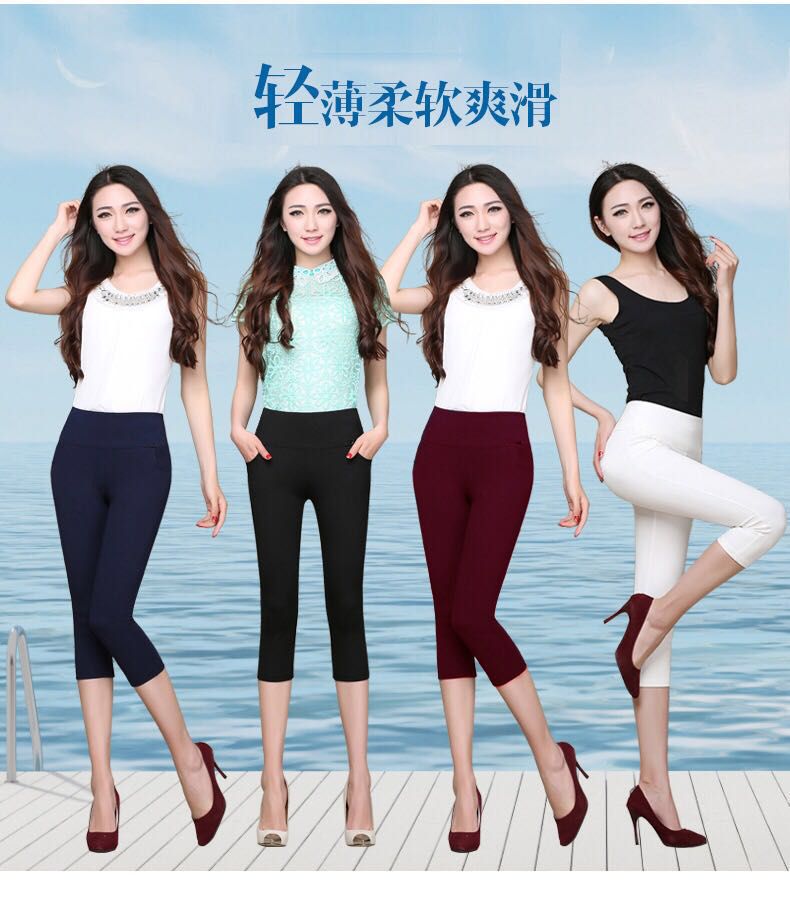 夏季胖mm大码女士七分裤高腰显瘦弹力打底裤收腹薄款提臀透气裤子
