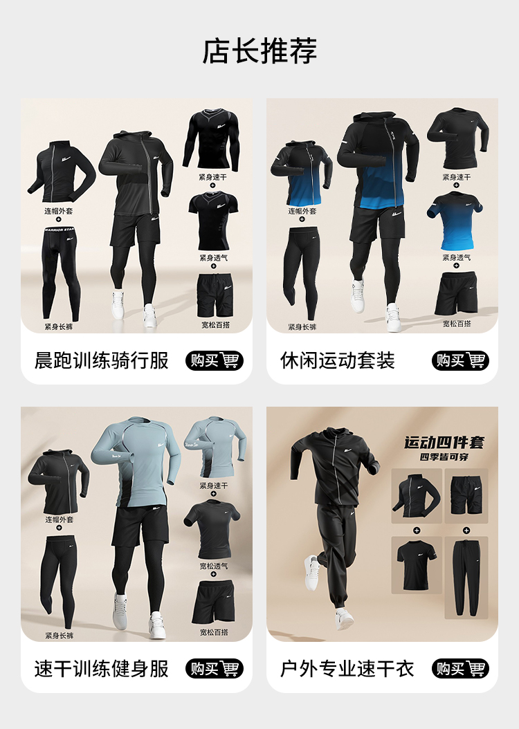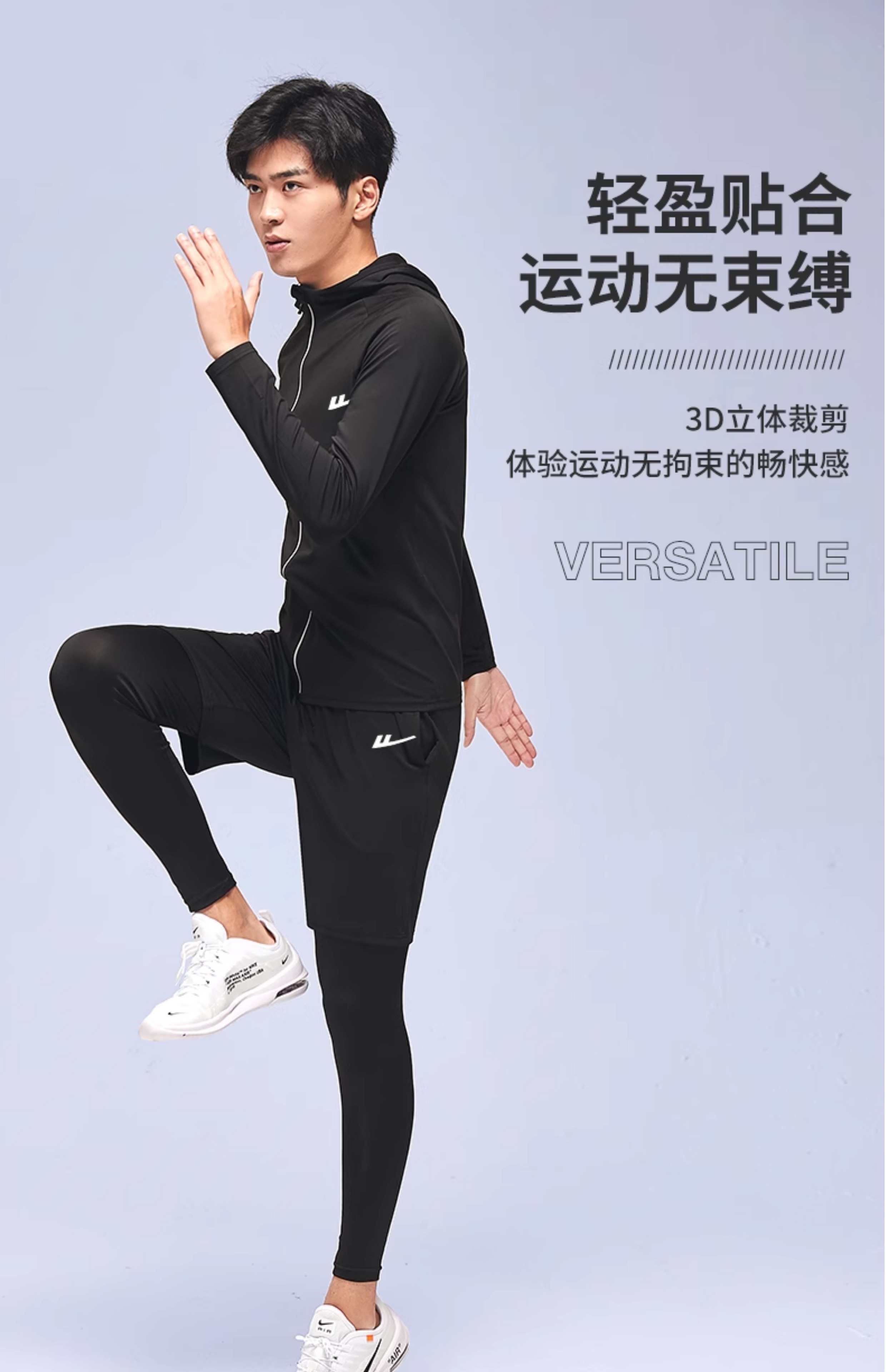 回力运动套装男跑步健身房衣服春秋速干衣紧身装备晨跑训练骑行服