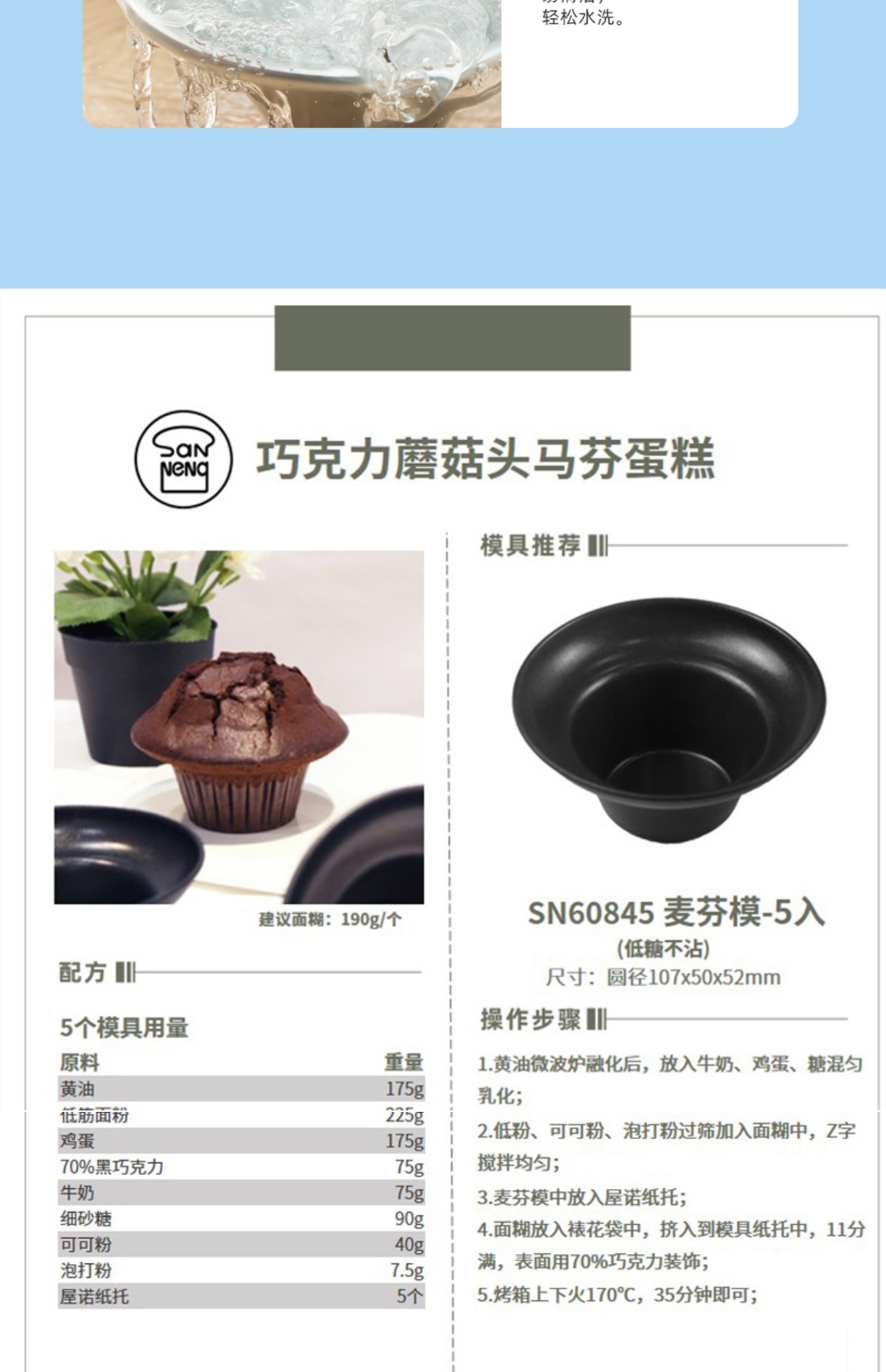 三能蘑菇头麦芬模具马芬不沾爆炸头蛋糕富士山烘焙模具星爸爸同款