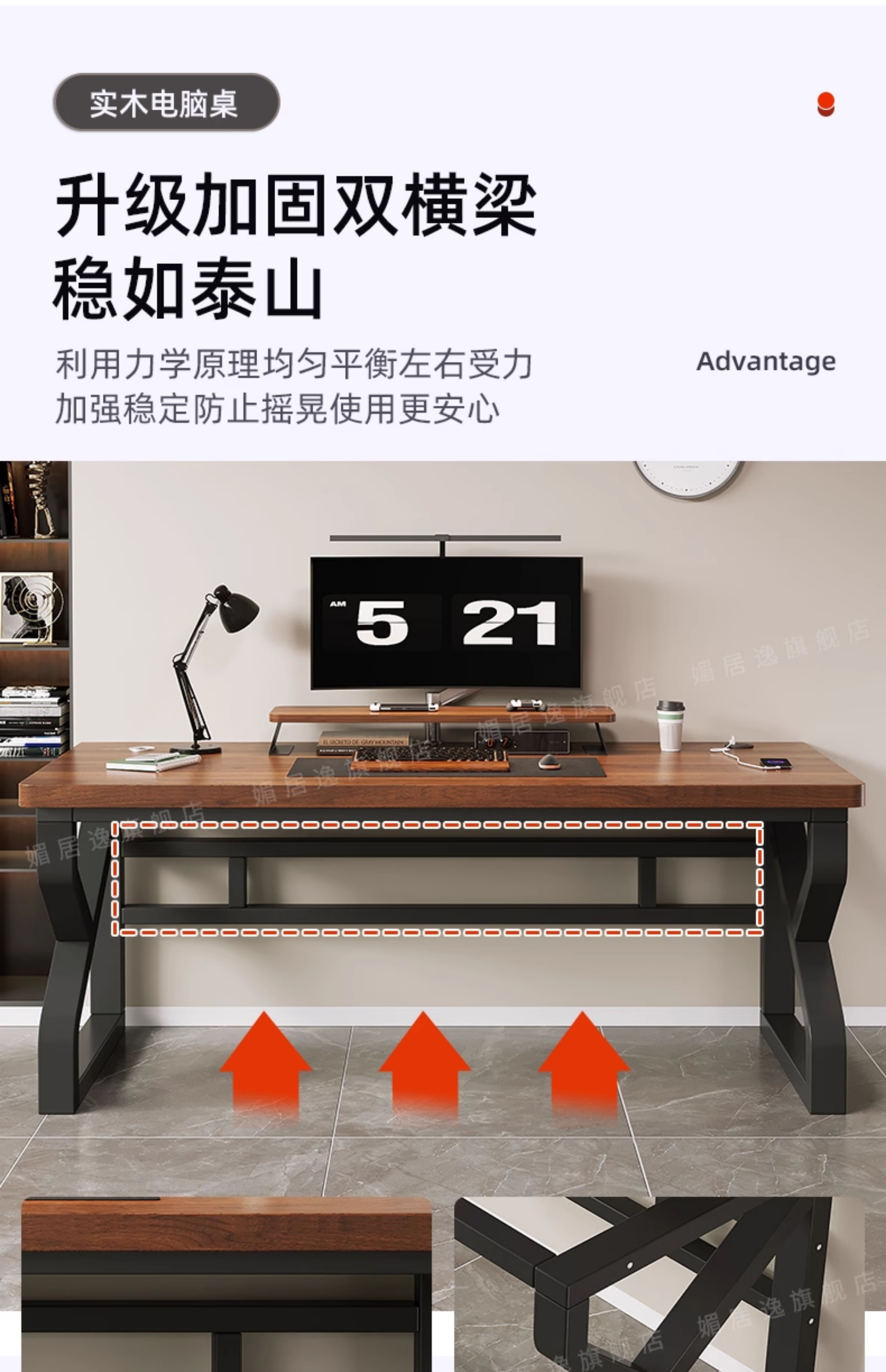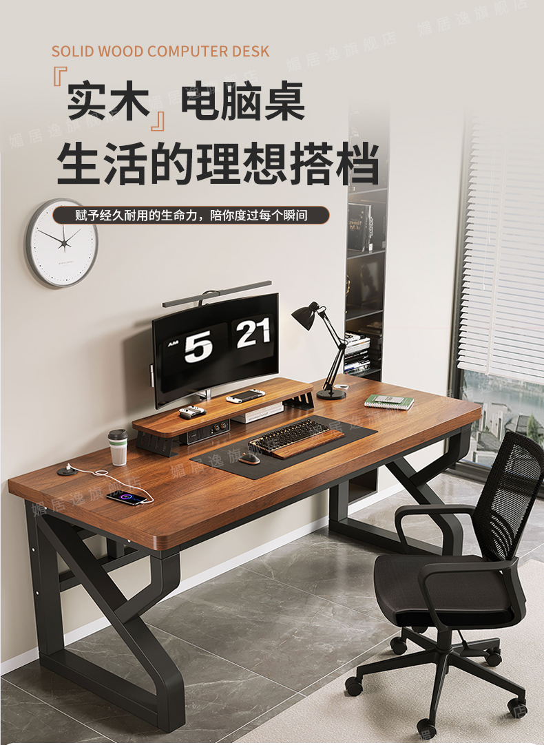 实木电脑桌台式卧室家用小型书桌学生写字桌双人电竞桌简约办公桌