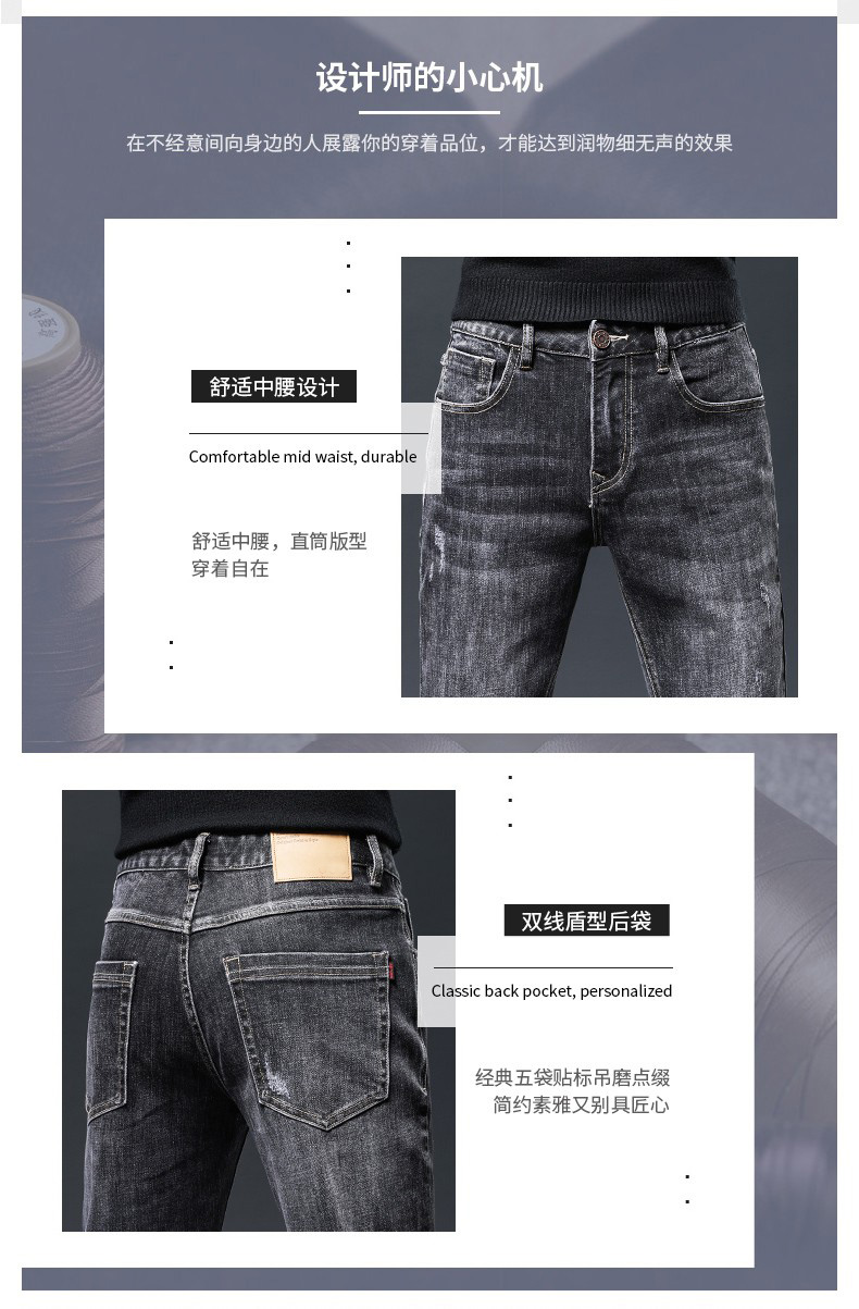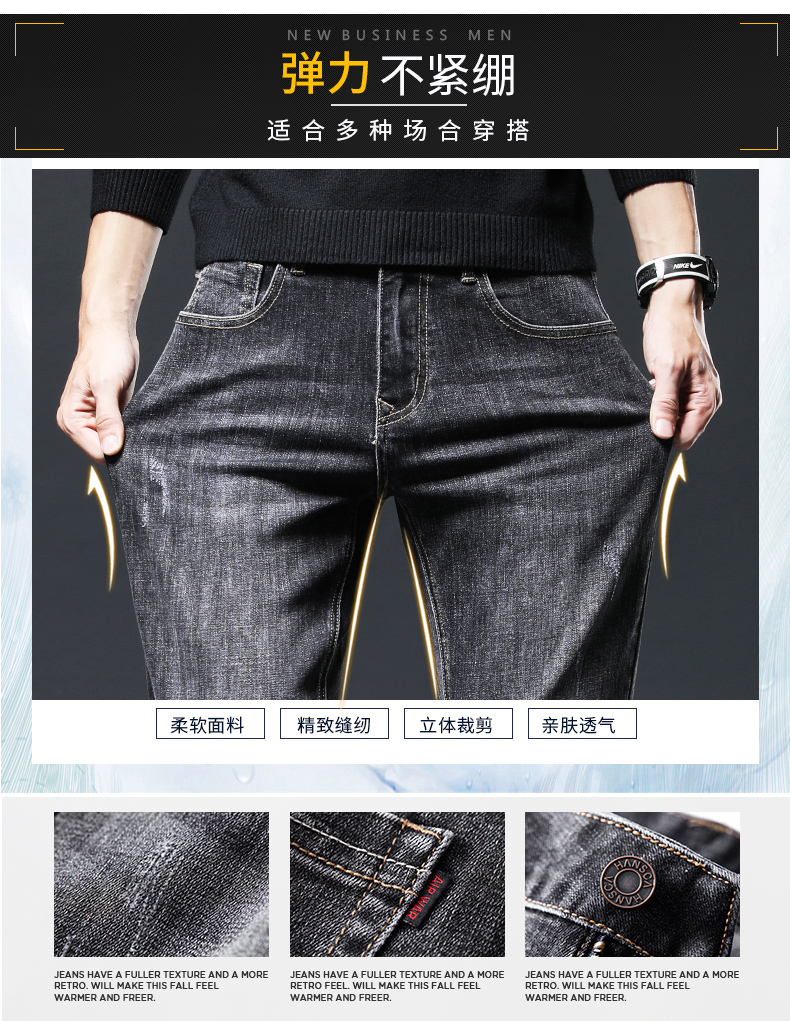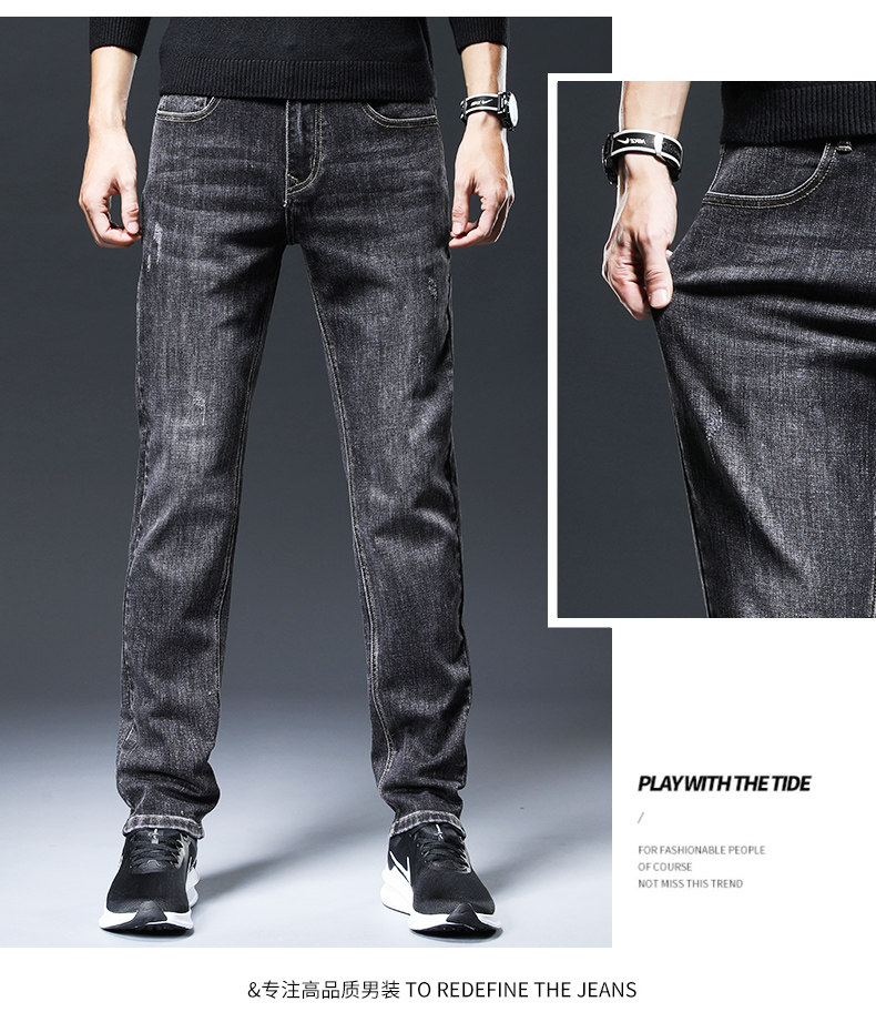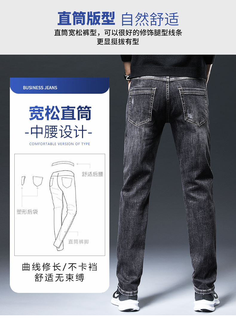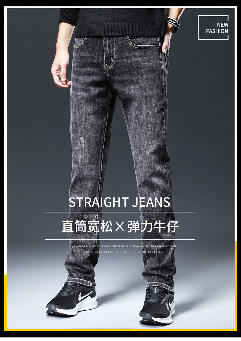 牛仔裤男弹力宽松直筒男士裤子新款男生男裤黑色春秋男装休闲裤