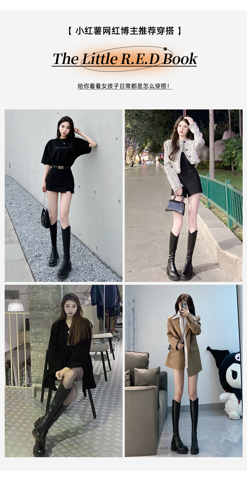 香港超高跟长靴子2024秋冬季新款厚底增高筒加绒长筒靴女不过膝盖