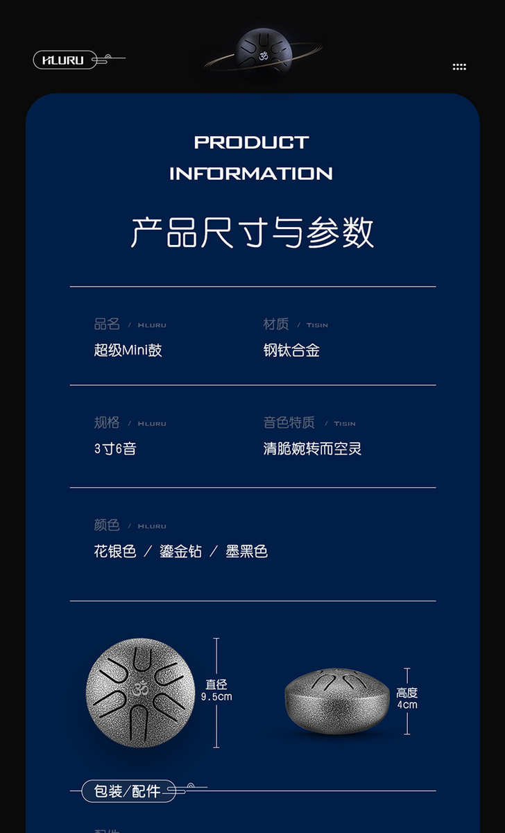 鲁儒mini3寸6音儿童迷你空灵鼓小鼓入门简单乐器儿童男童女童礼物