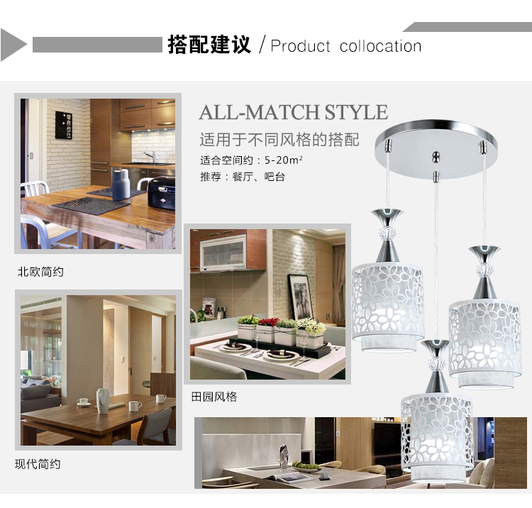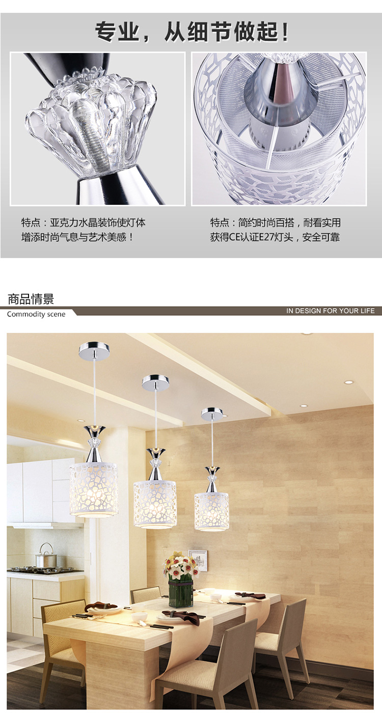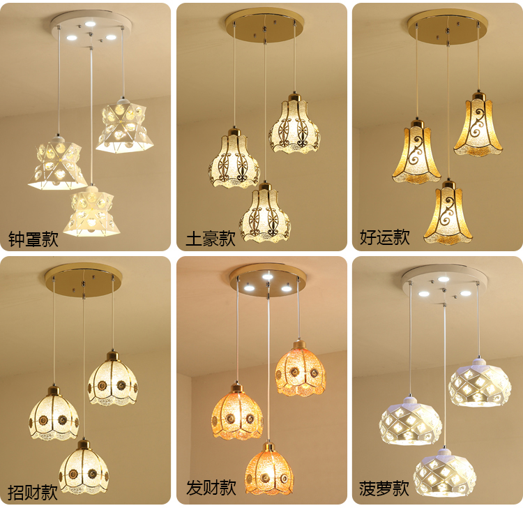 现代简约餐厅吊灯三头个性创意田园饭厅灯led单头吧台卧室吊灯具