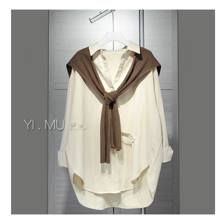 大码300斤胖mm披肩两件套衬衫女春秋新款宽松慵懒风衬衣外套上衣