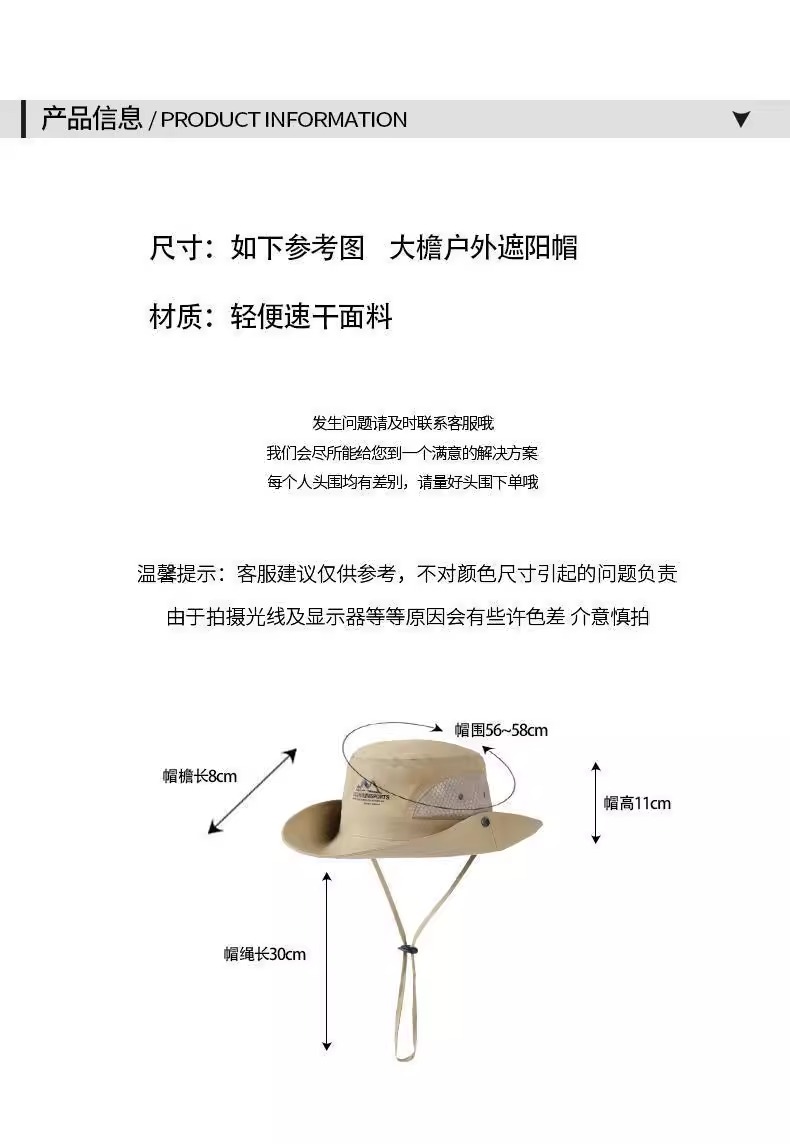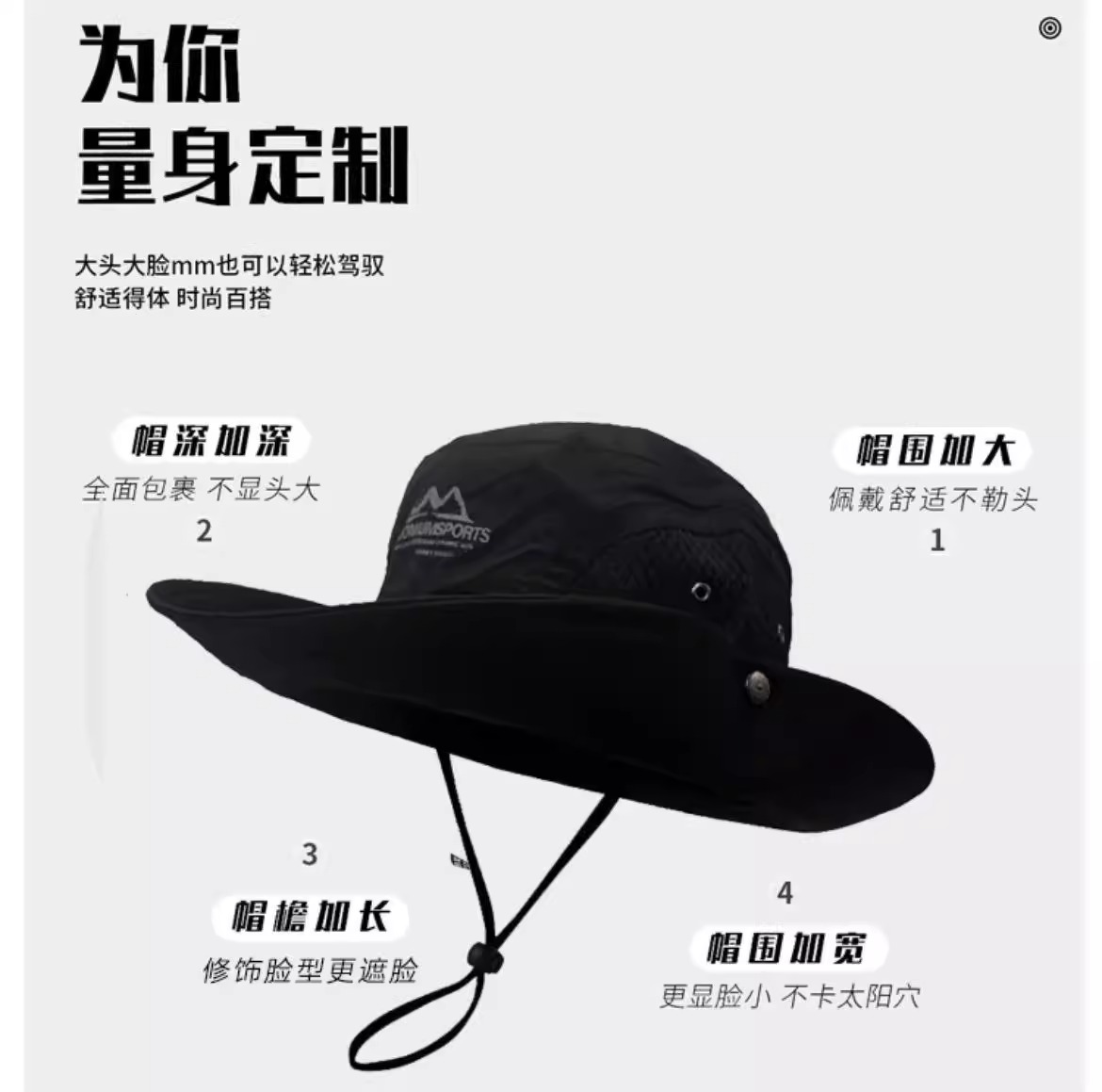 山系遮阳帽子男女徒步登山露营渔夫帽户外钓鱼防紫外线西部牛仔帽