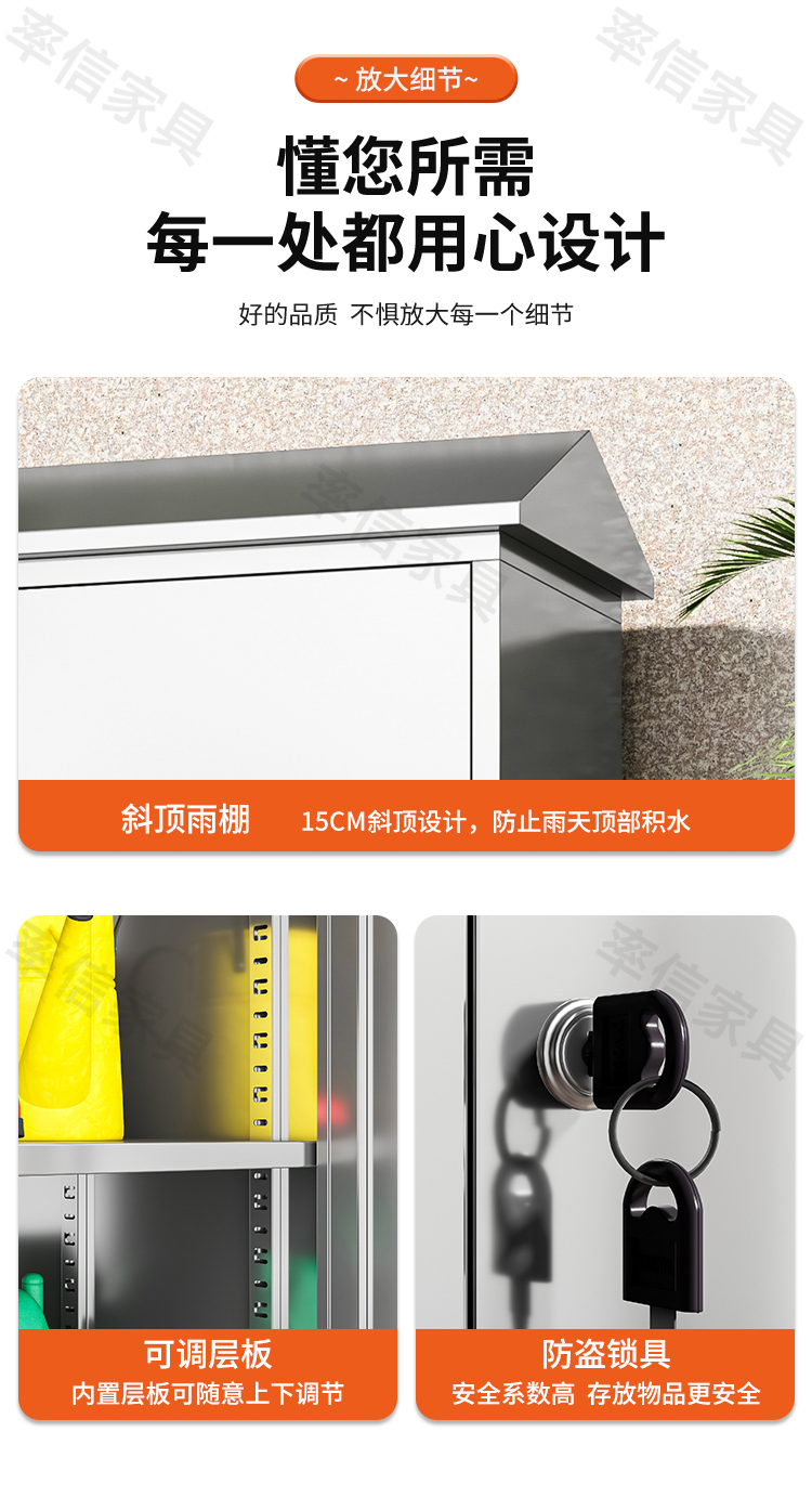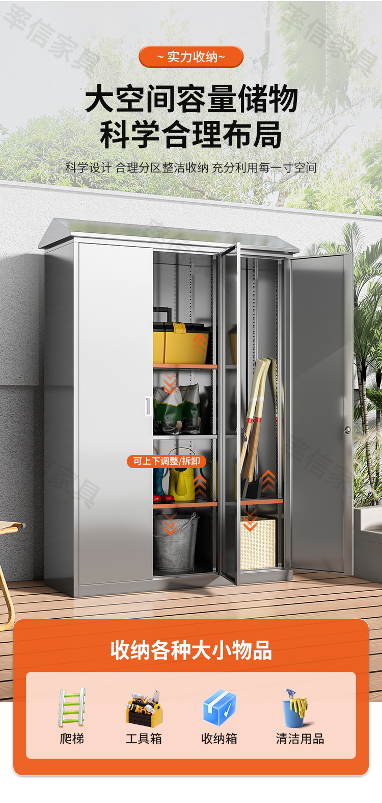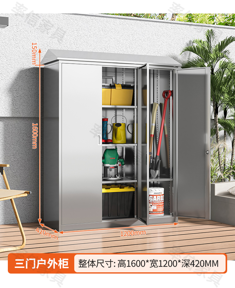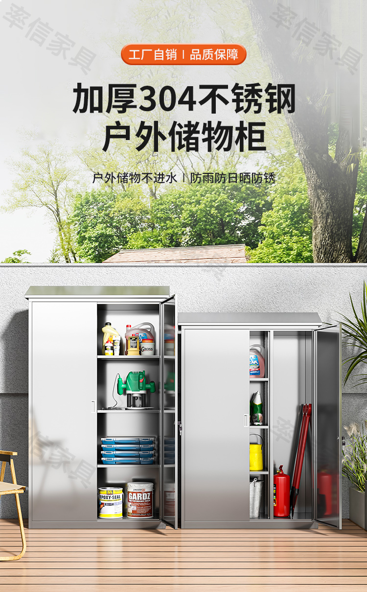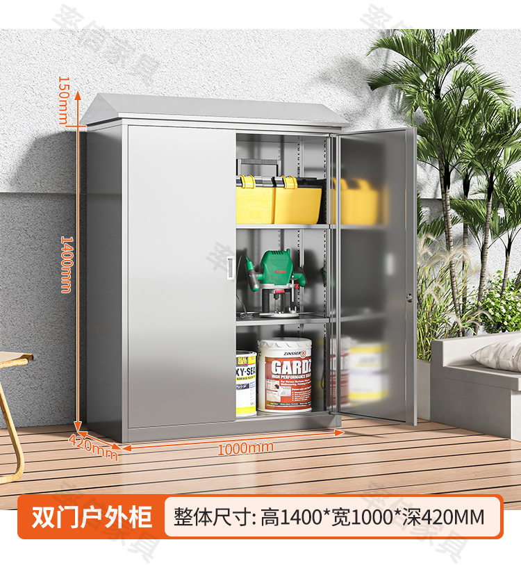 定做不锈钢户外柜防晒防水阳台柜室外储物柜庭院收纳柜花园工具柜