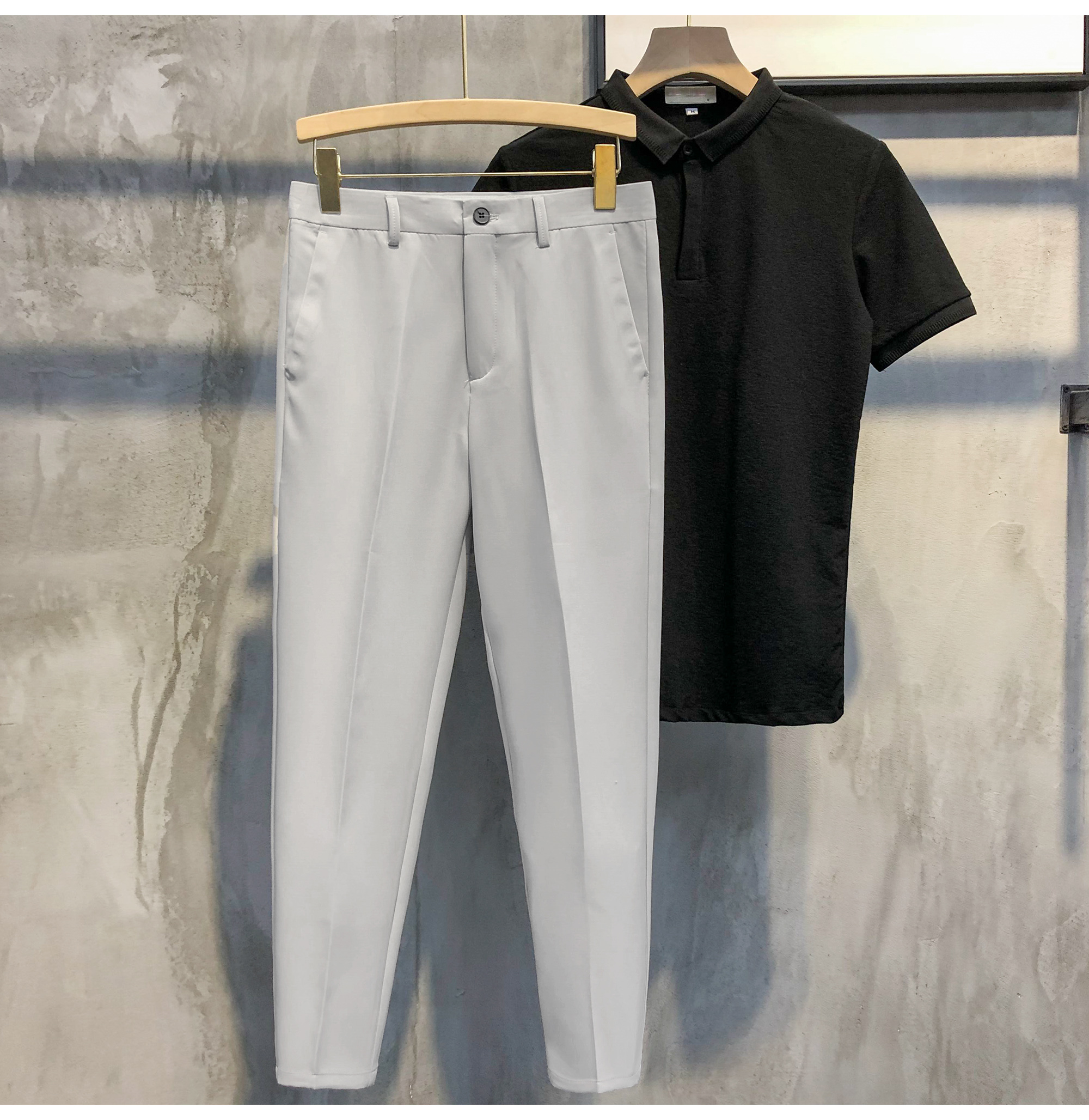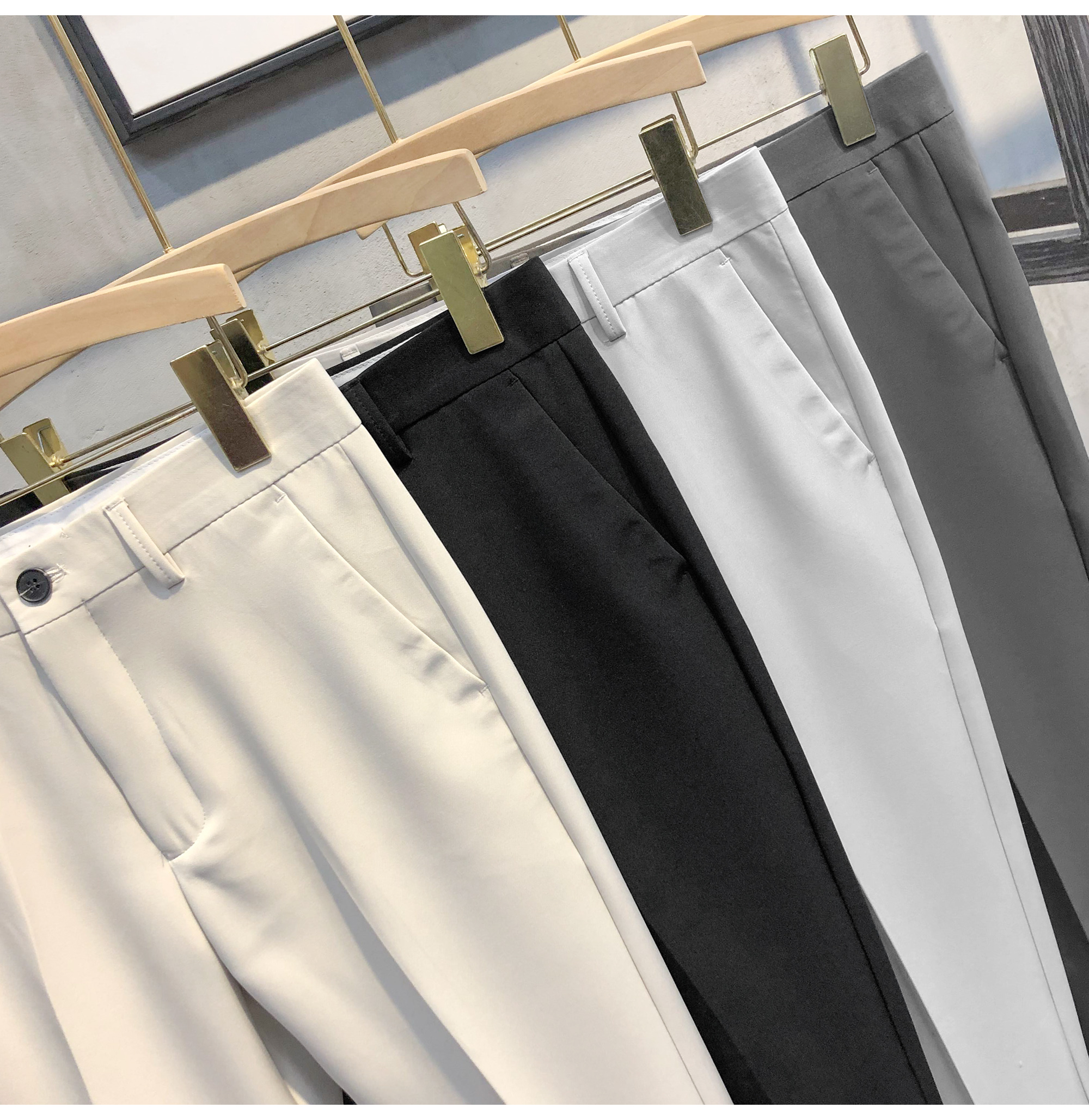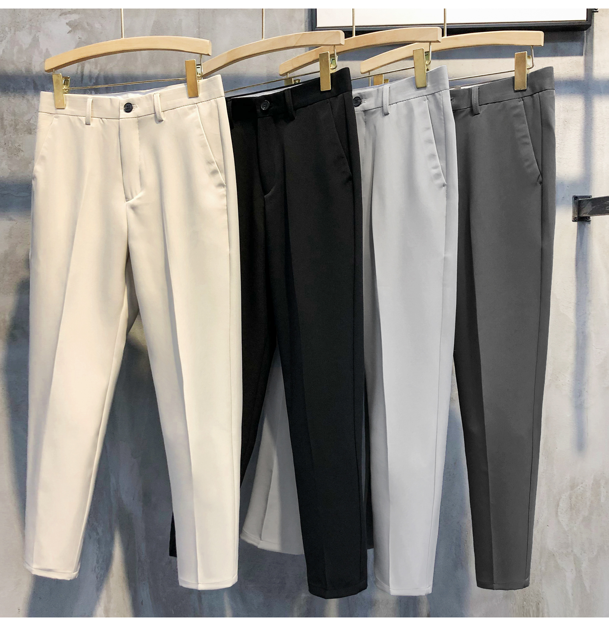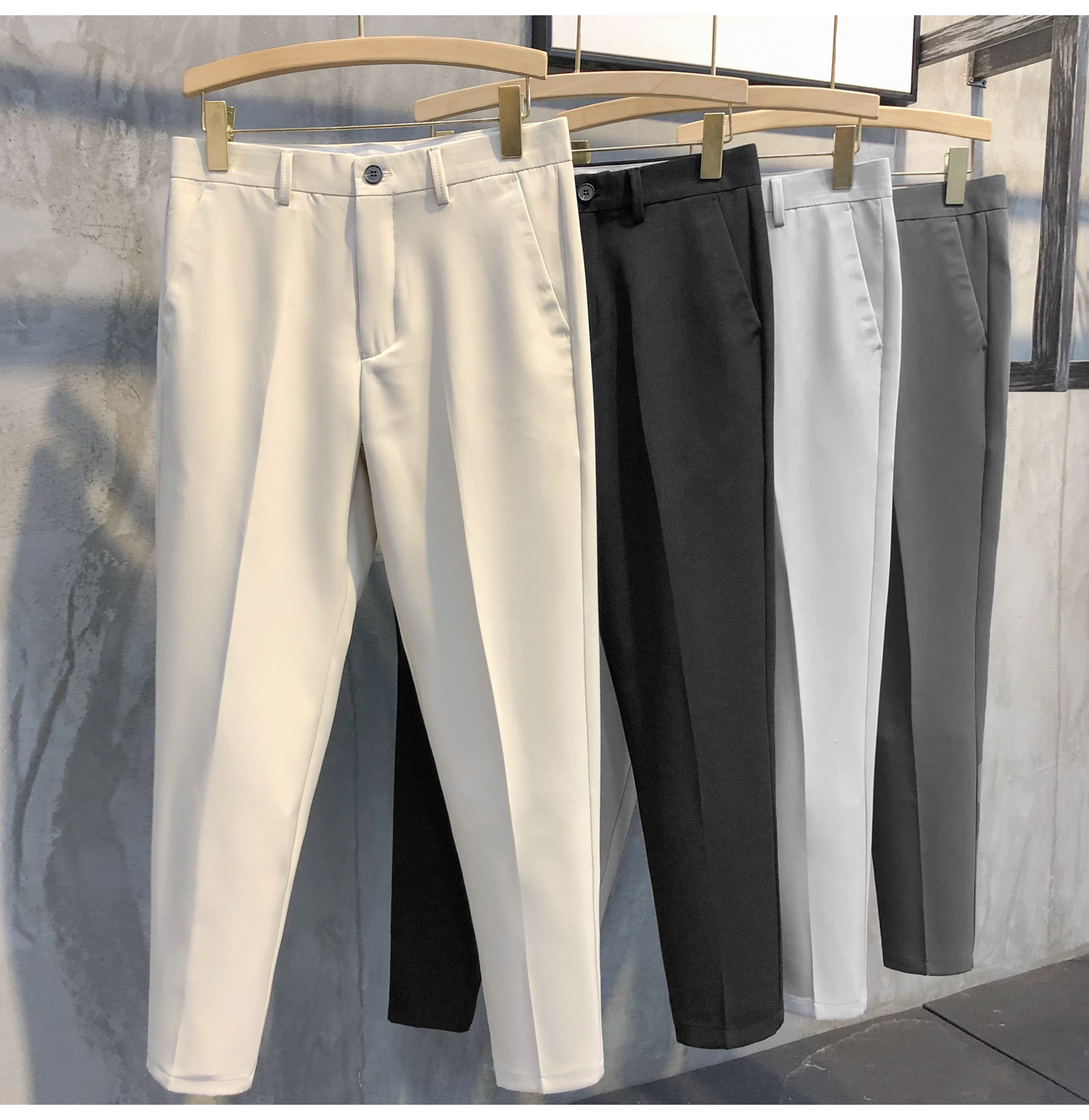 LUUD 2025夏季纯色锥形9九分西裤男士英伦免烫修身小脚裤休闲裤子