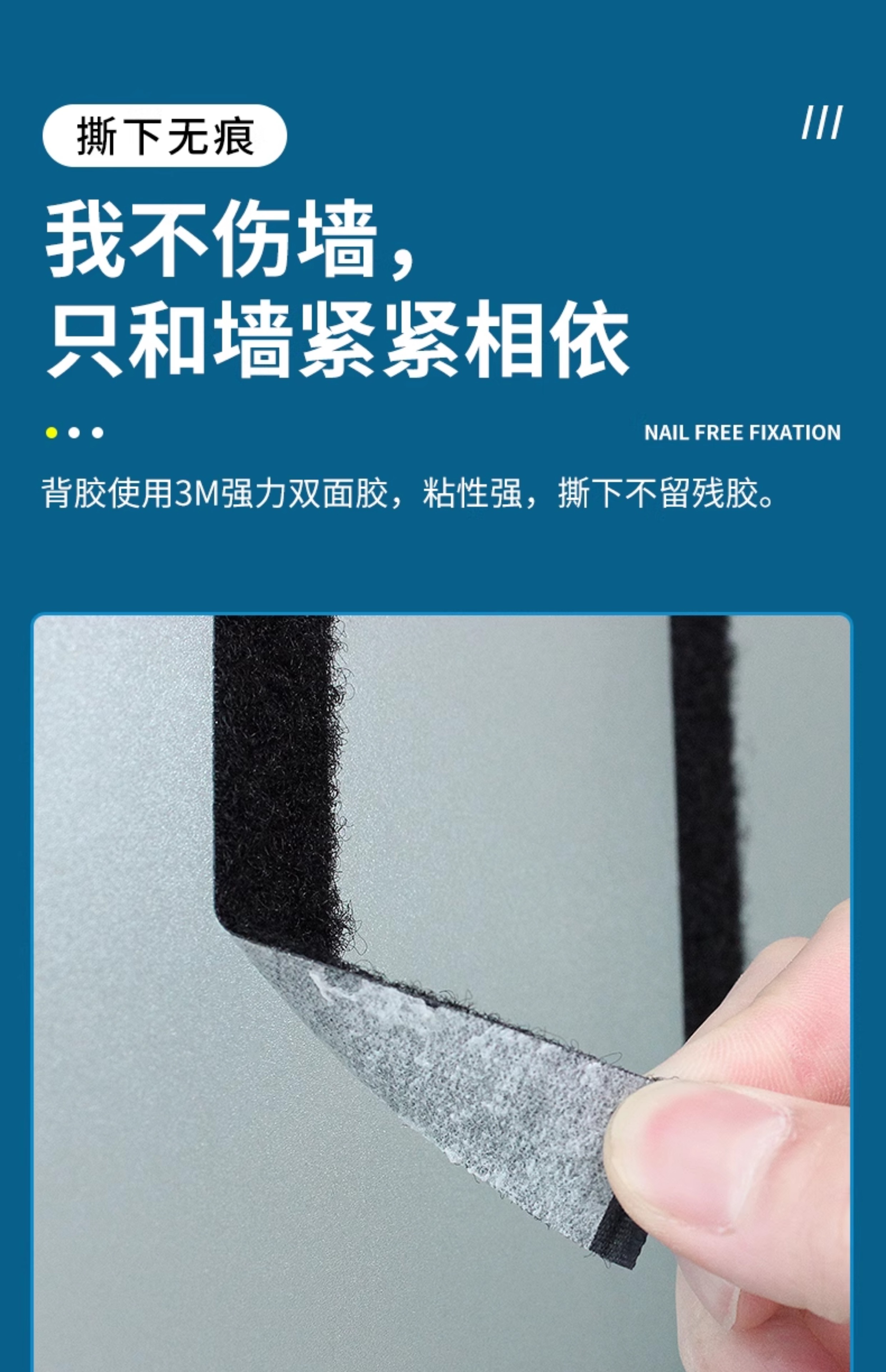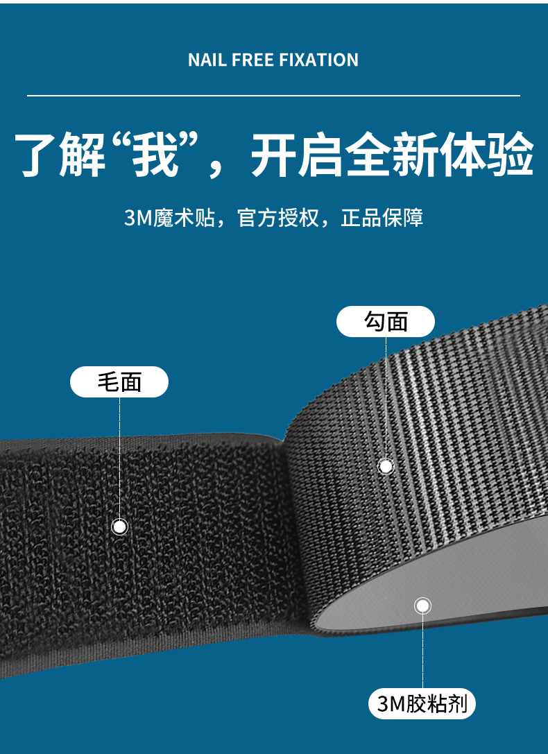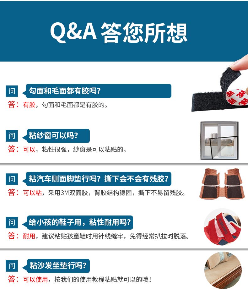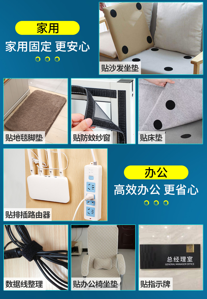 3M强力带背胶魔术贴高粘度双面胶自粘纱窗门帘子母贴条脚垫固定扣