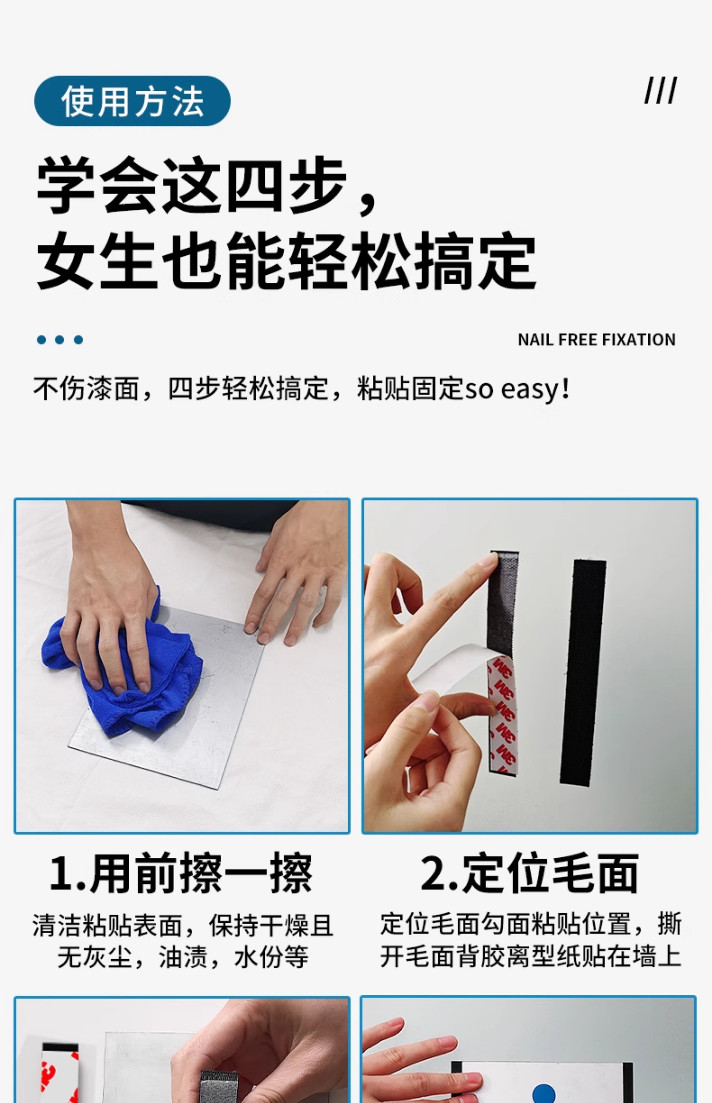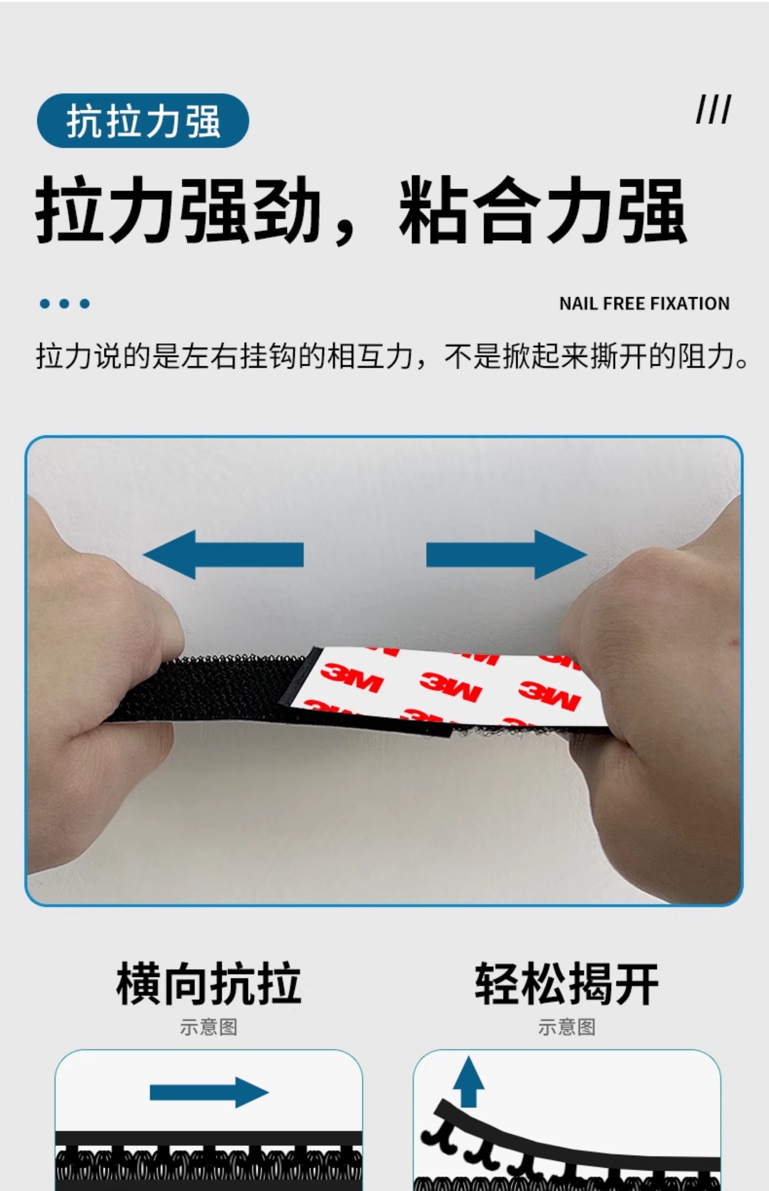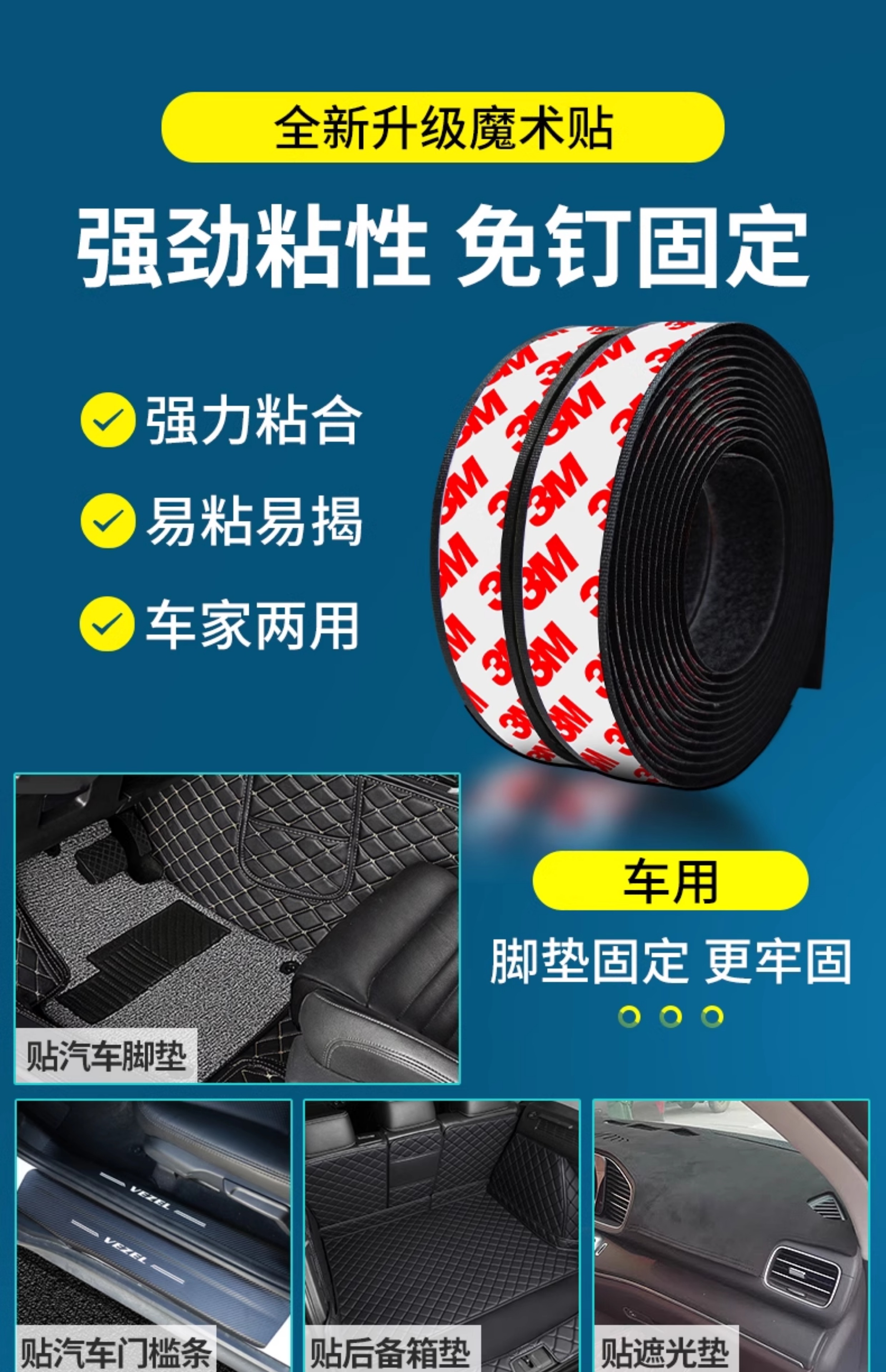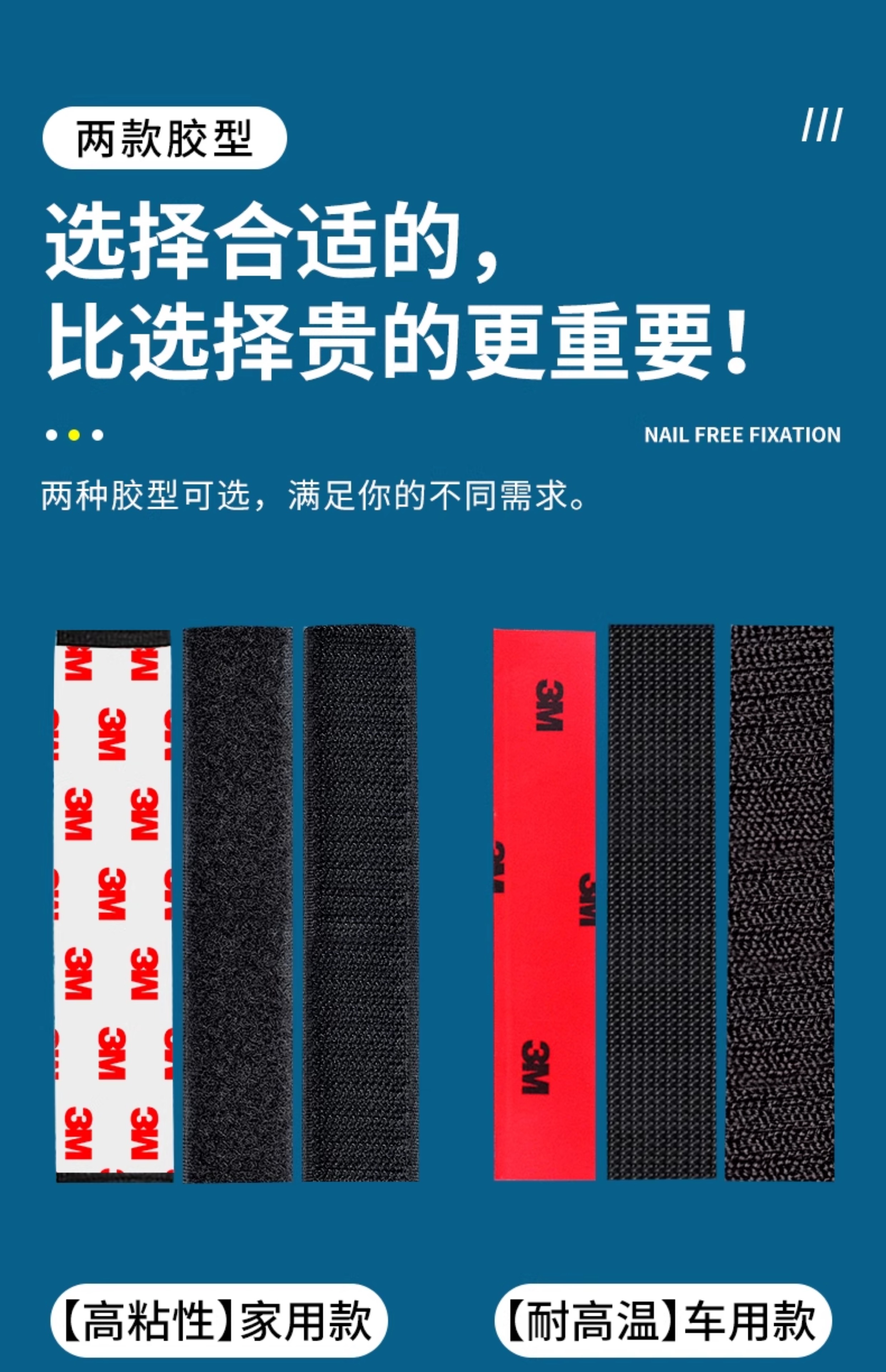 3M强力带背胶魔术贴高粘度双面胶自粘纱窗门帘子母贴条脚垫固定扣