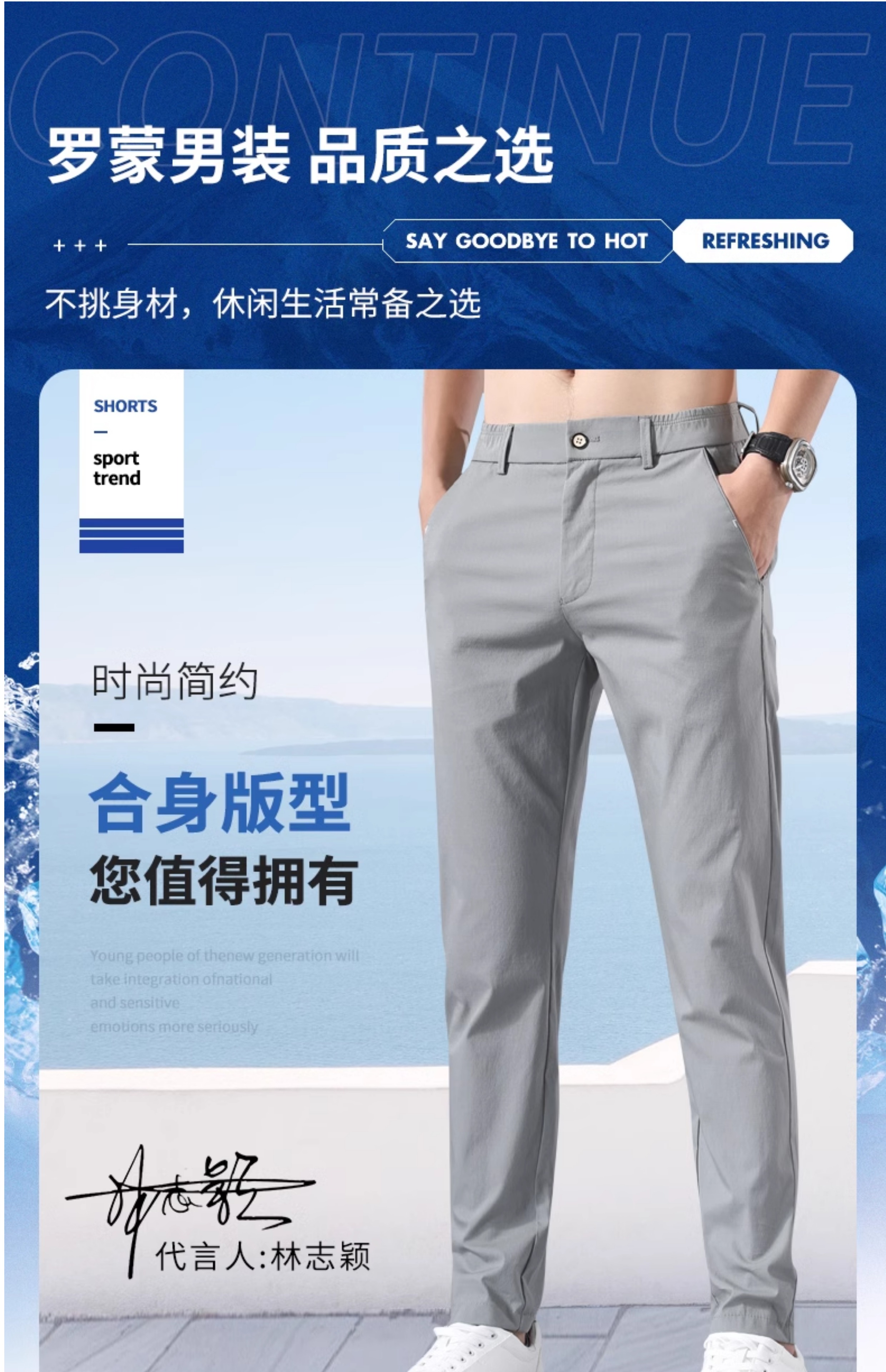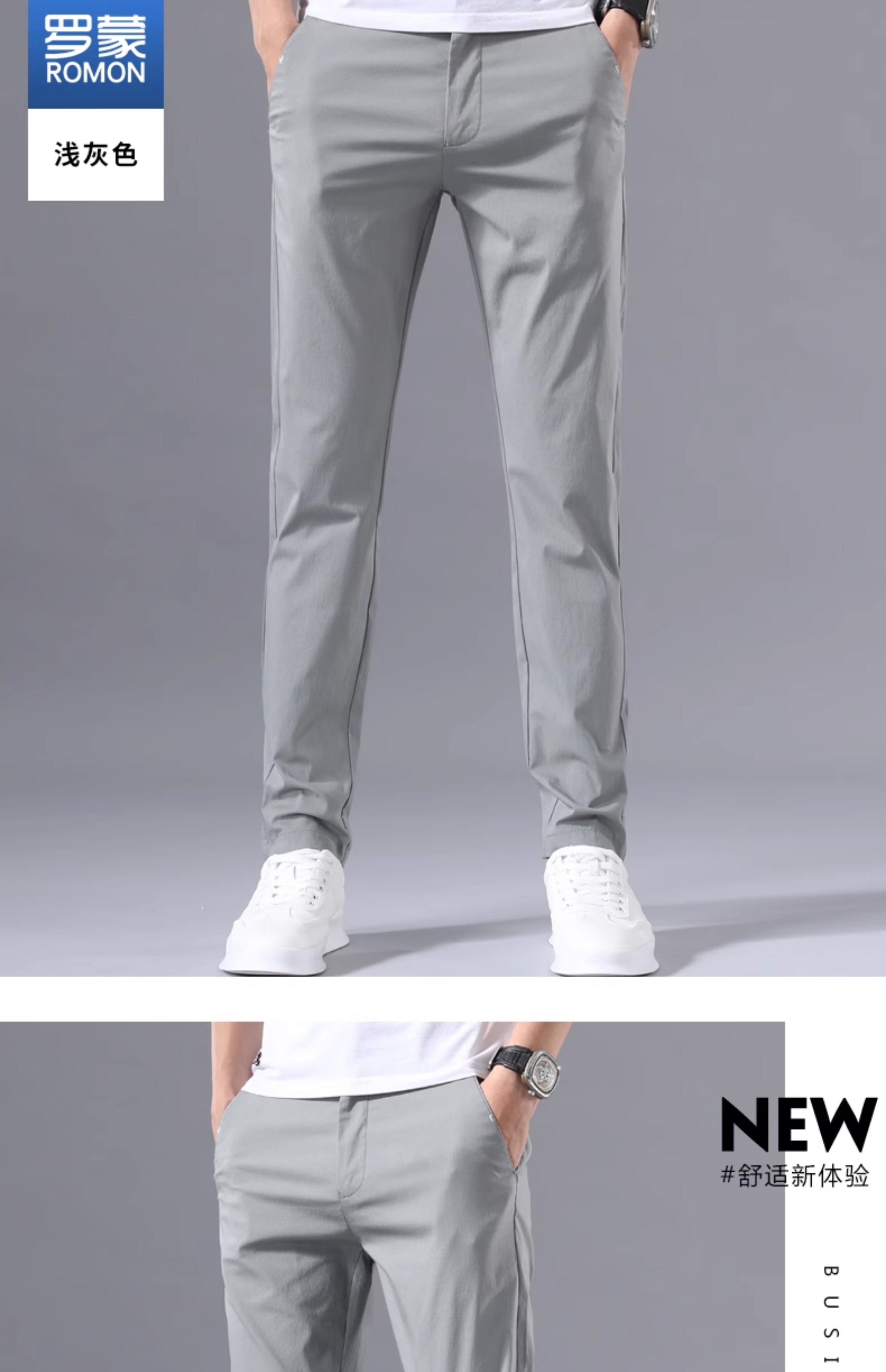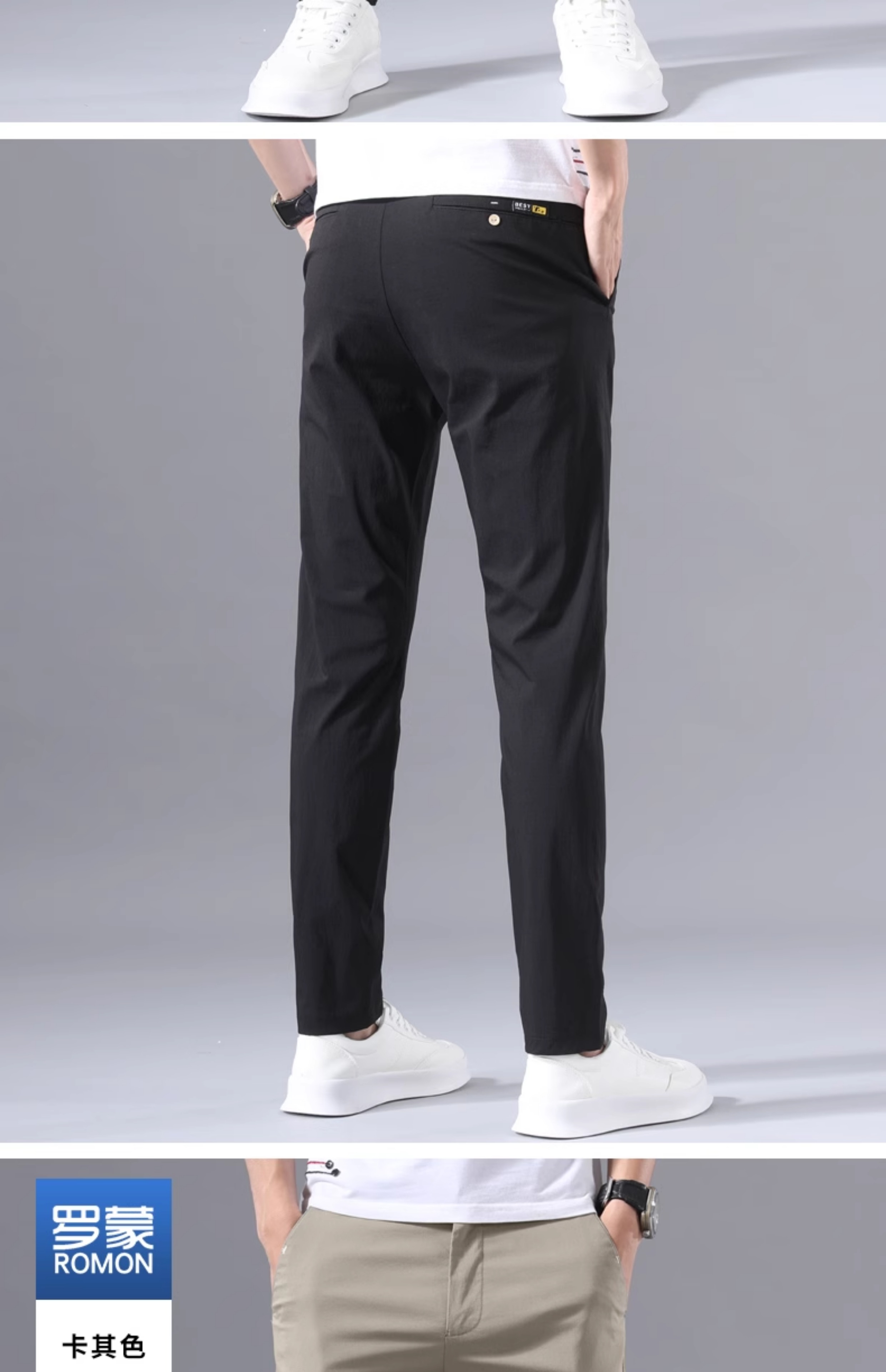 罗蒙休闲裤男士夏季薄款2025新款冰丝男裤弹力直筒长裤子男款西裤