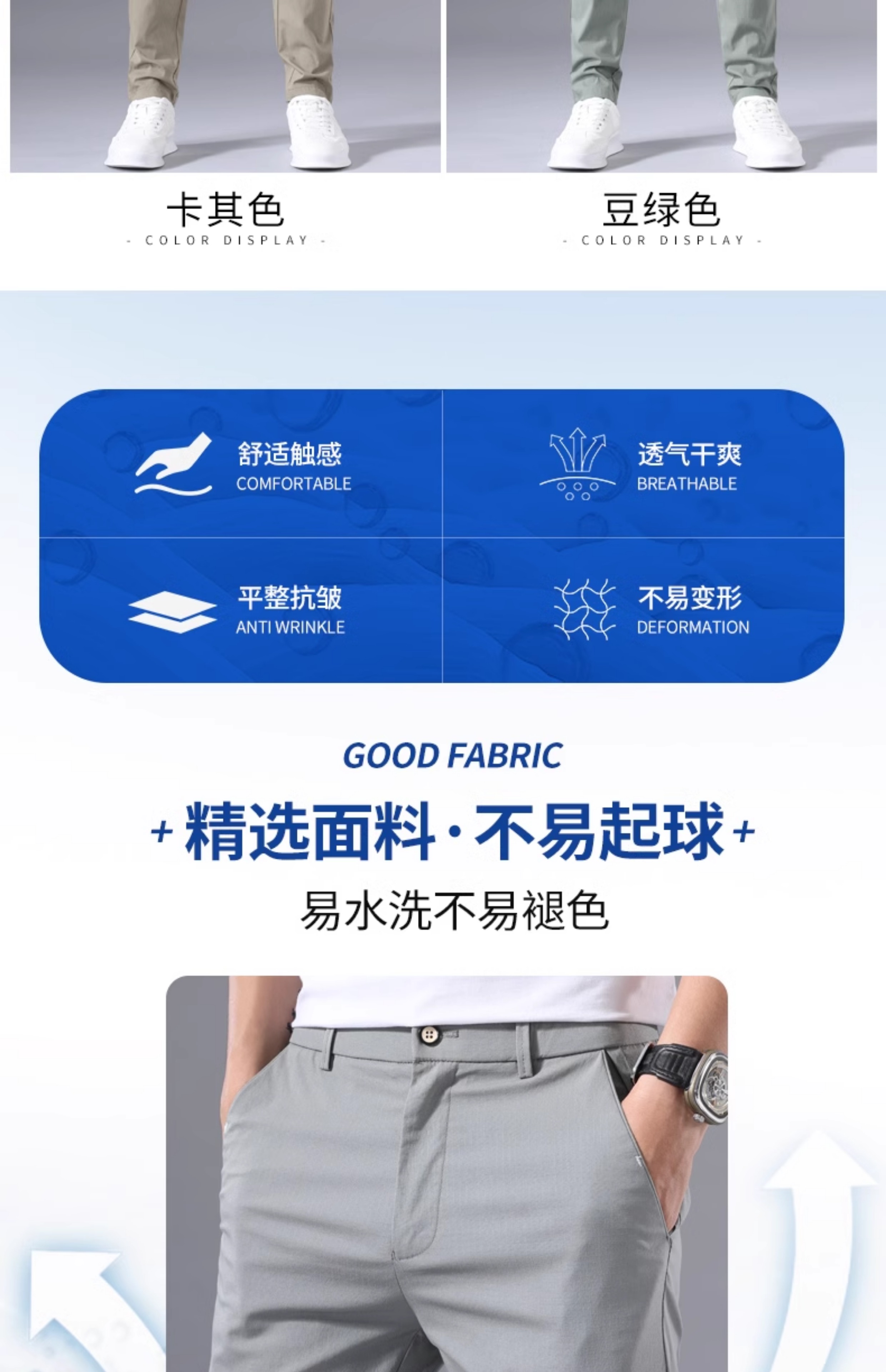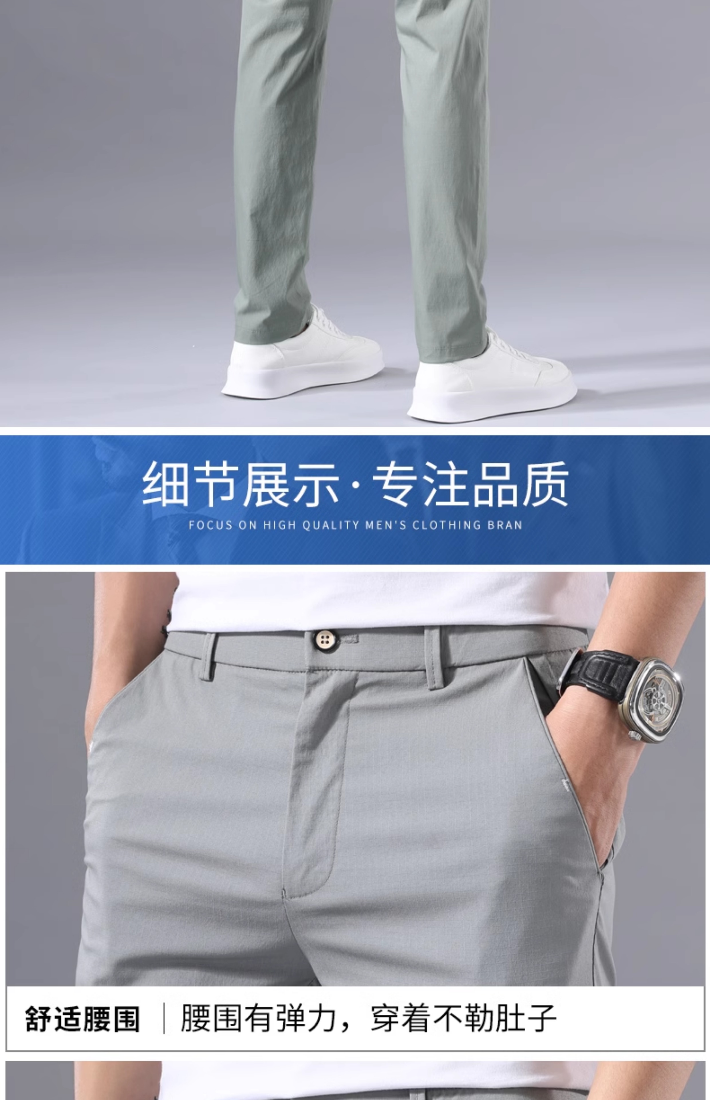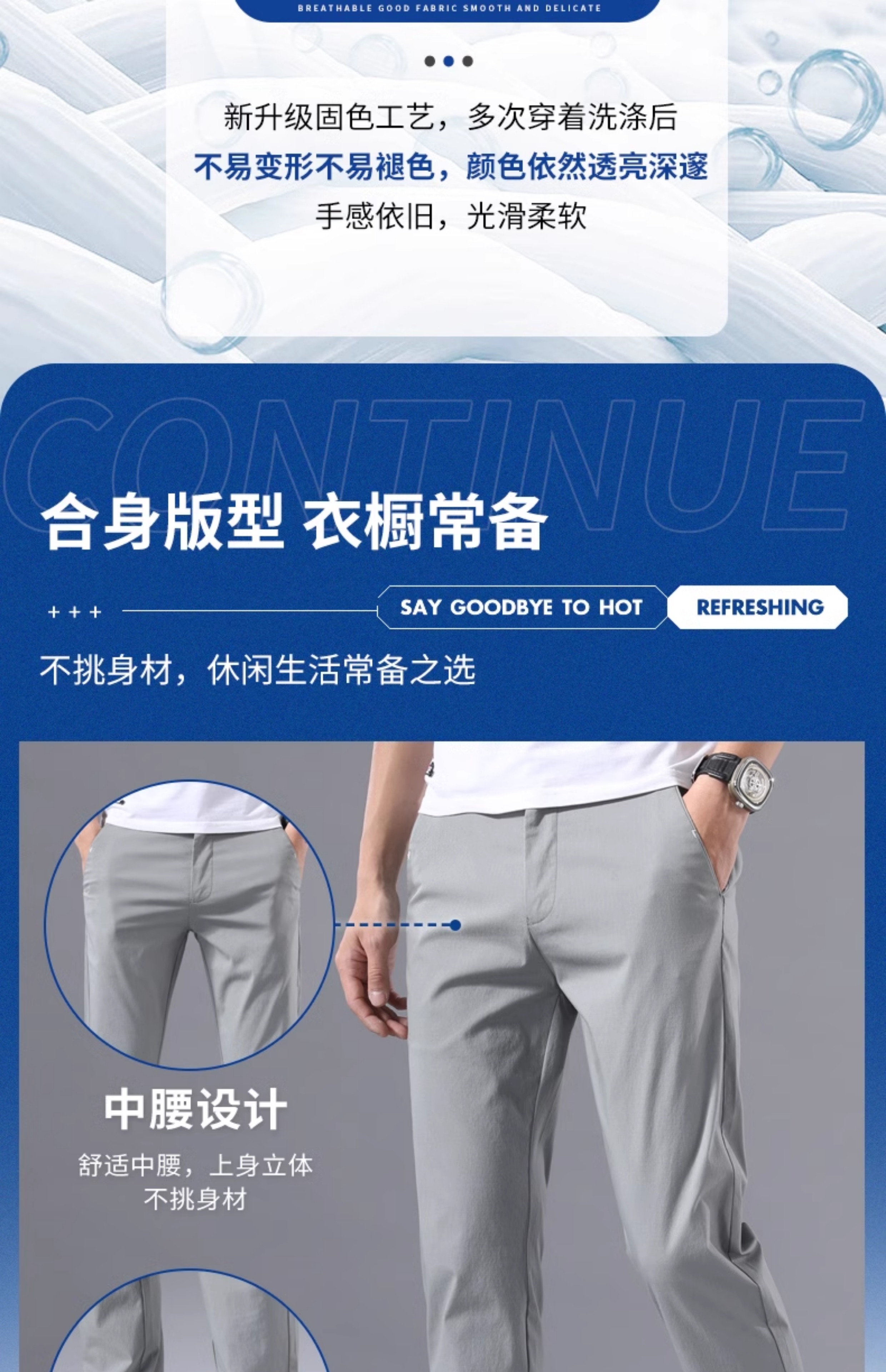 罗蒙休闲裤男士夏季薄款2025新款冰丝男裤弹力直筒长裤子男款西裤