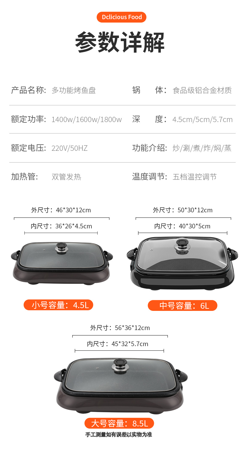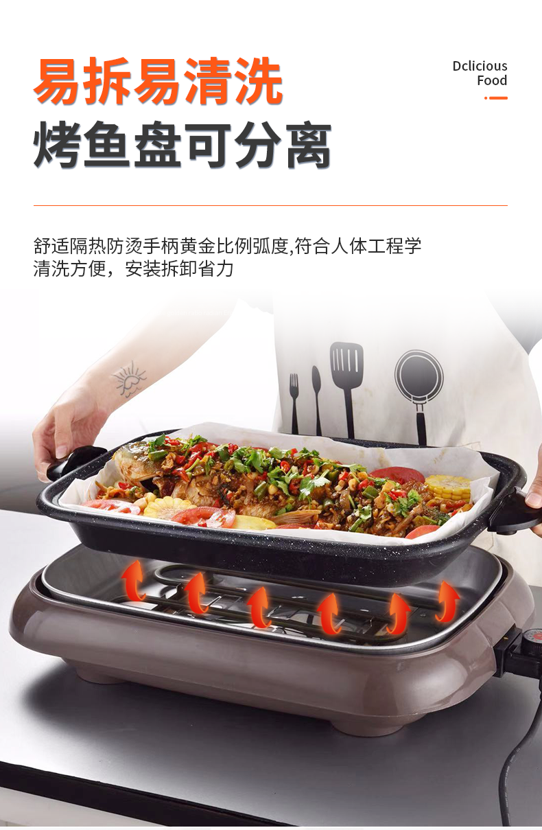 纸包鱼专用锅电烤盘烤涮一体长方形纸上烤鱼炉商用烤肉锅家用火锅