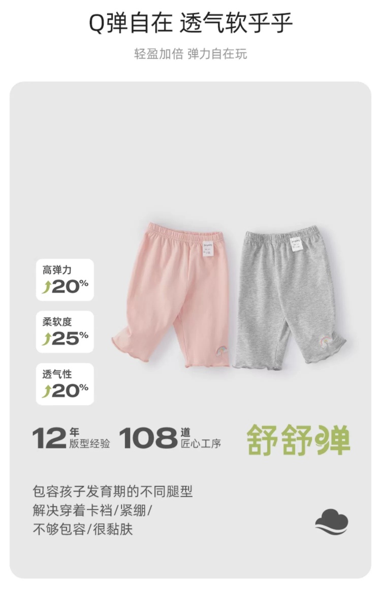 [7A抗菌]女童打底裤小童夏季甜美纯色裤子儿童七分裤薄款宝宝夏装