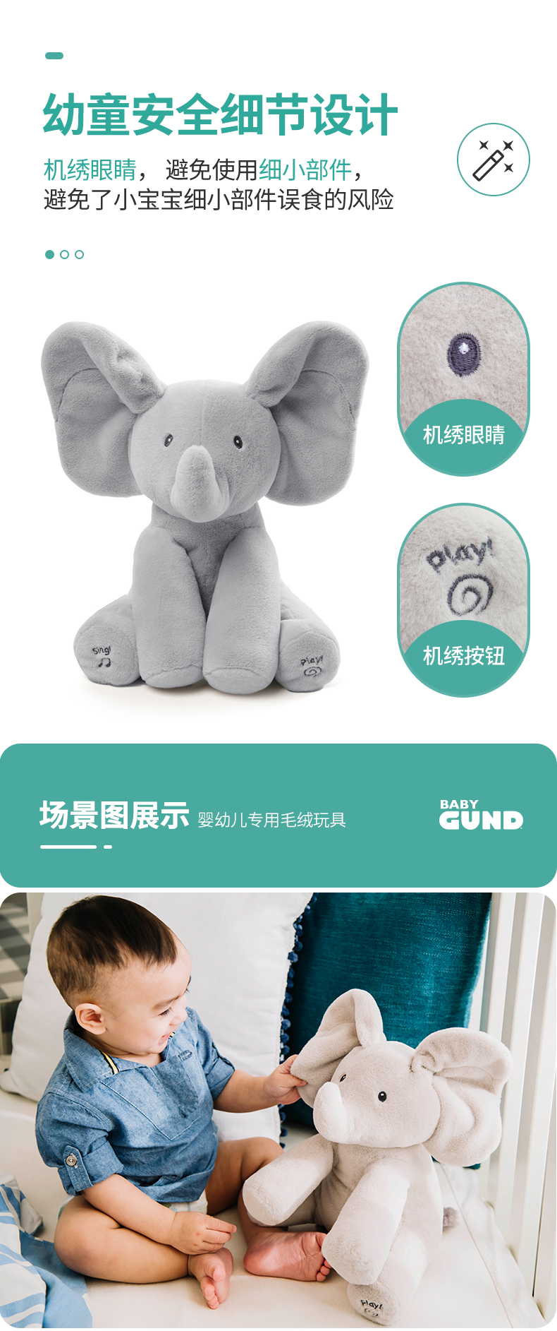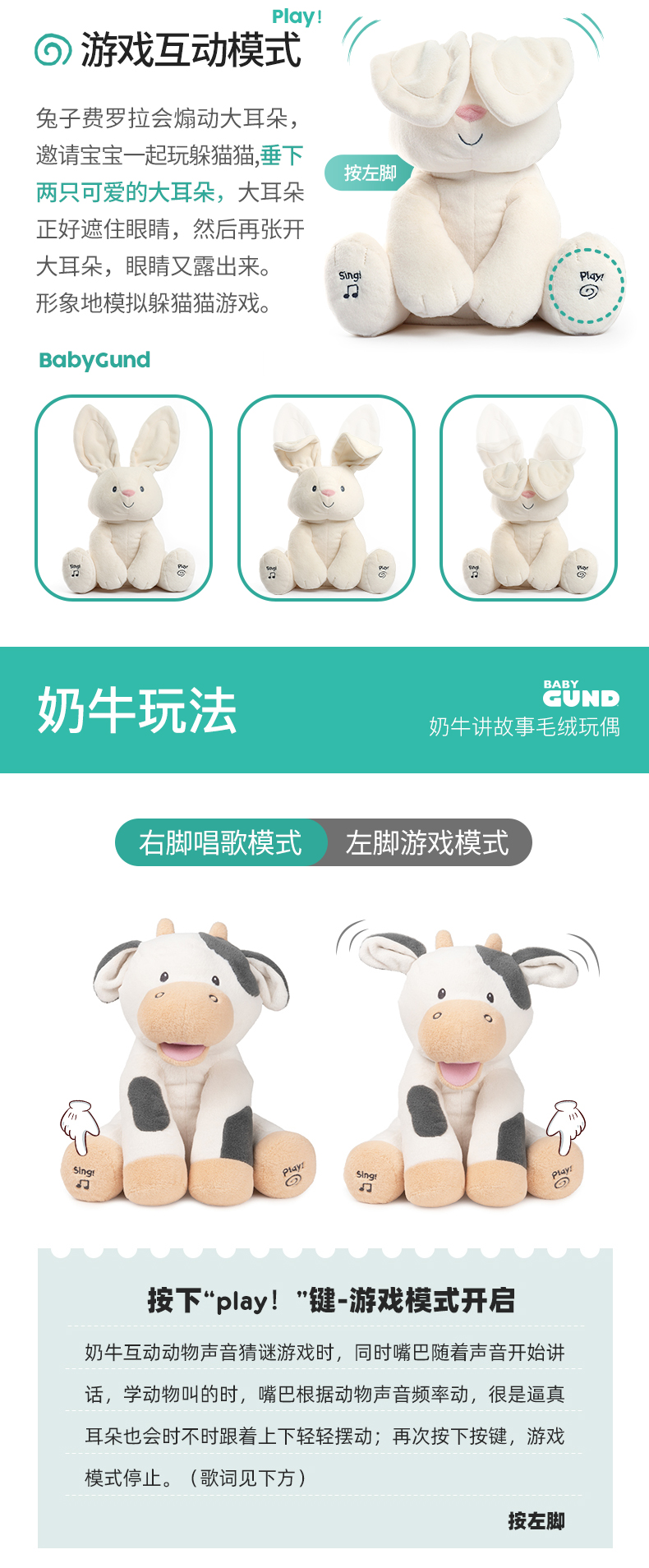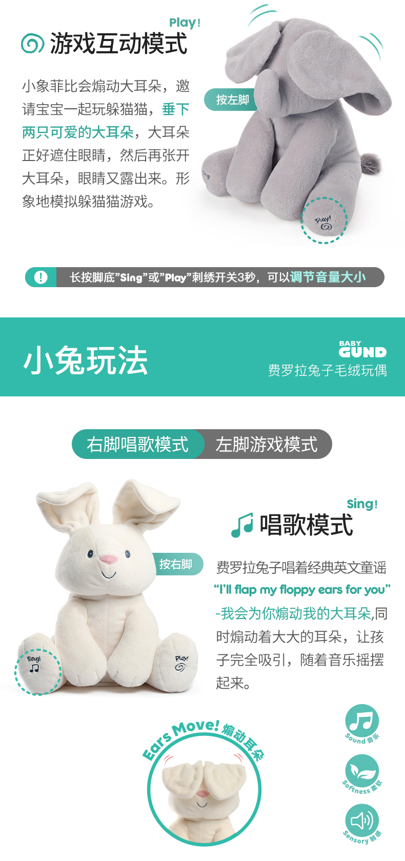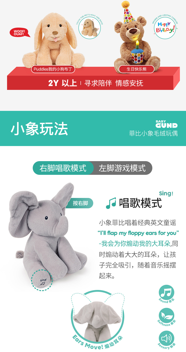 Gund费罗拉小兔小象躲猫猫毛绒玩偶婴儿声动安抚玩具新生儿礼物