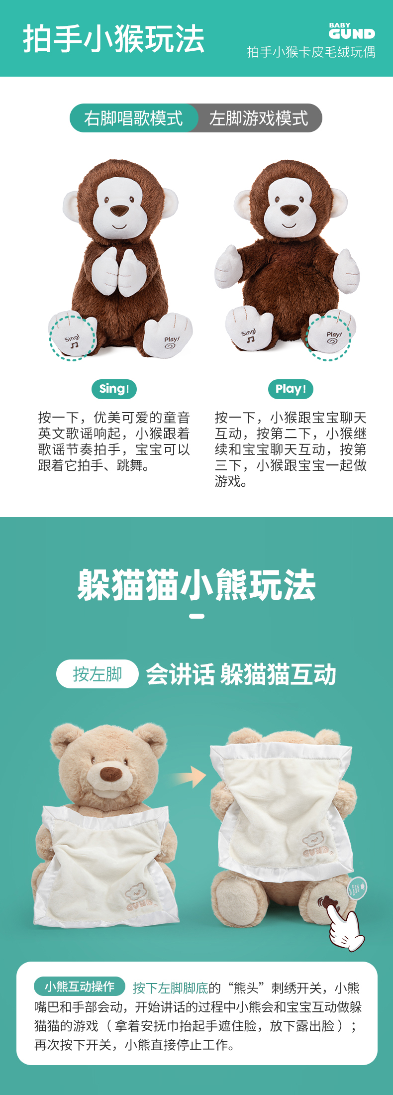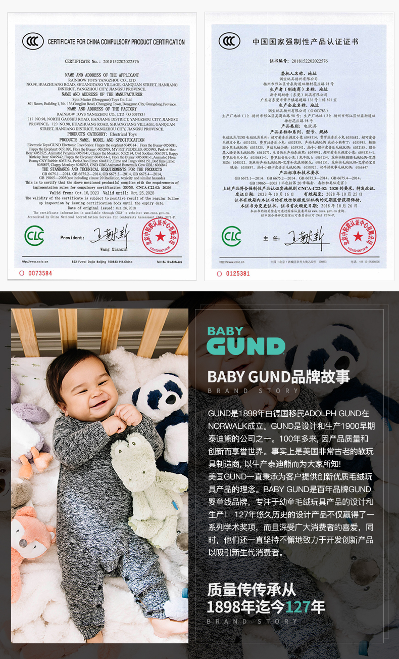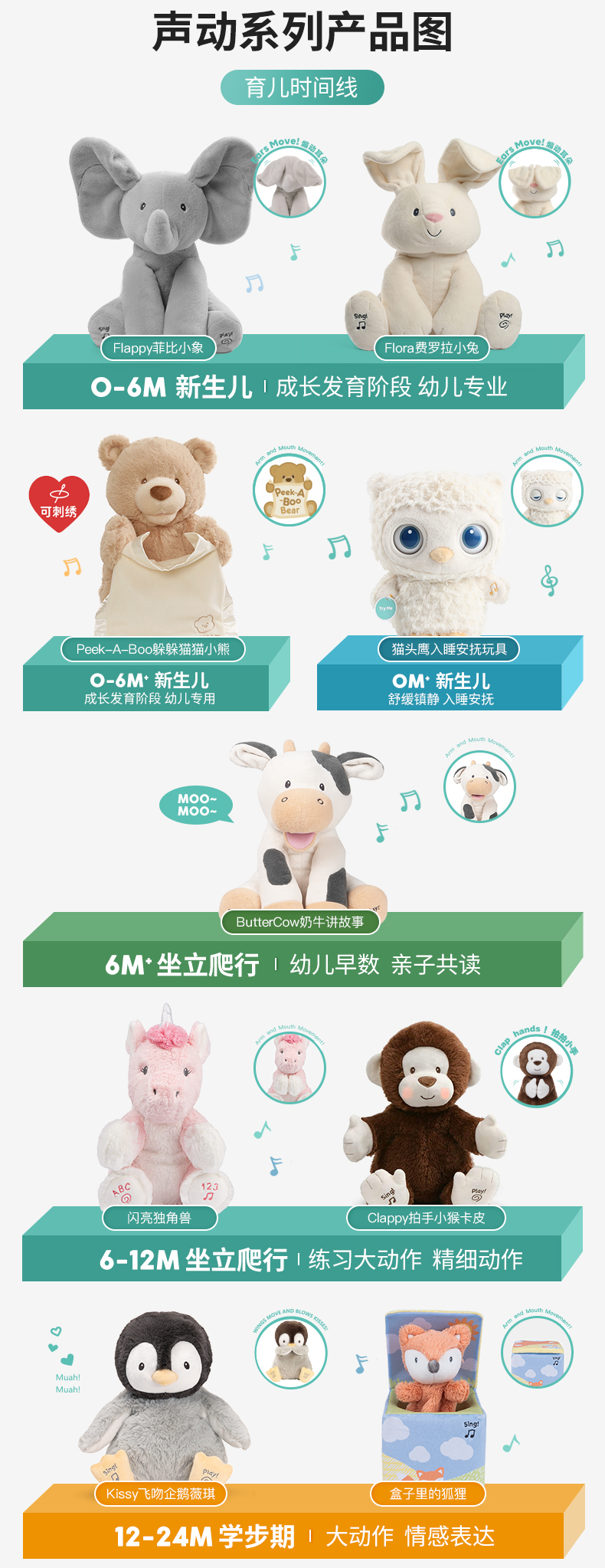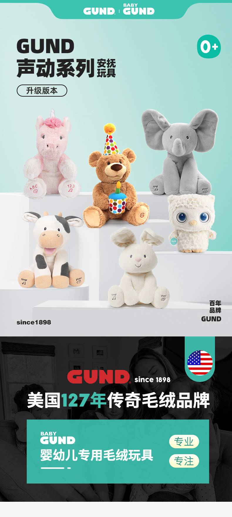 Gund费罗拉小兔小象躲猫猫毛绒玩偶婴儿声动安抚玩具新生儿礼物