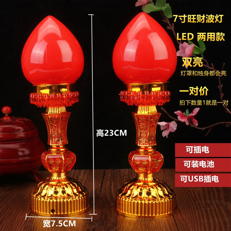 LED旺财波灯两用电蜡烛供佛电烛灯长明灯供财神灯佛前家用供奉灯