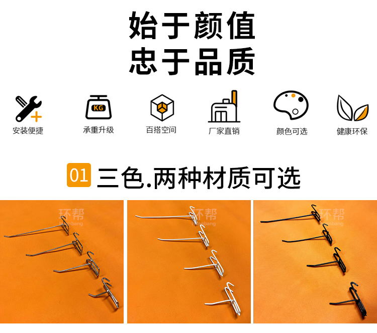 挂钩网片网格货架挂勾黑白色不锈钢饰品手机配件超市零食服装店钩
