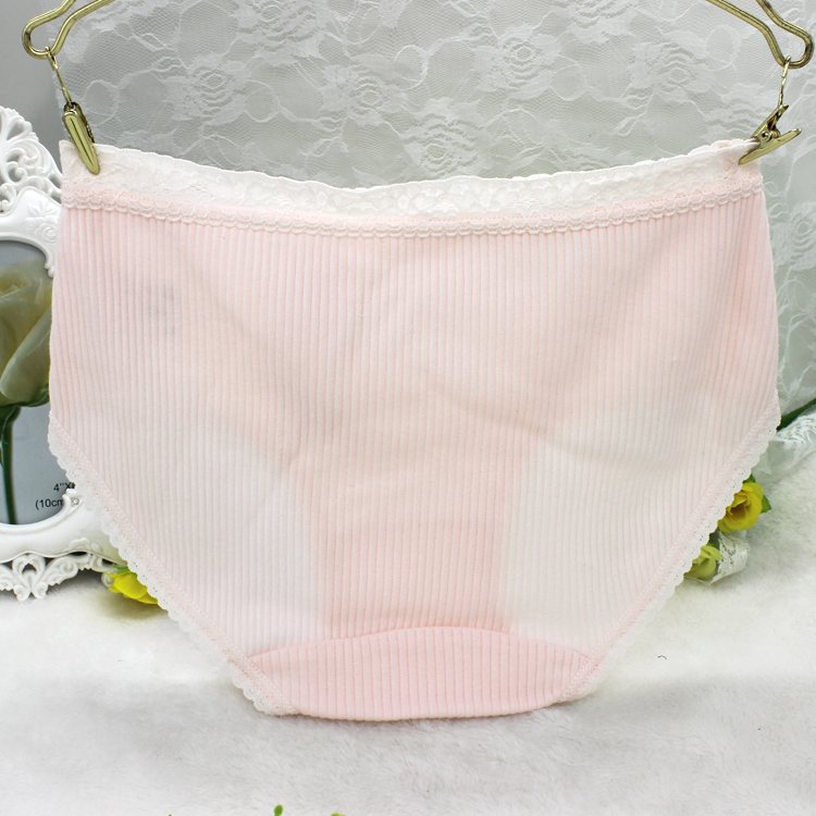 纯棉中腰女士内裤女式100%全棉无痕蕾丝 透气棉质大码胖MM三角裤