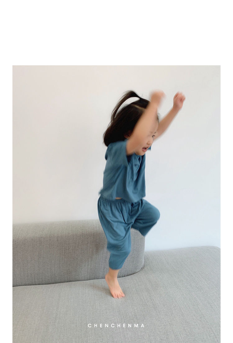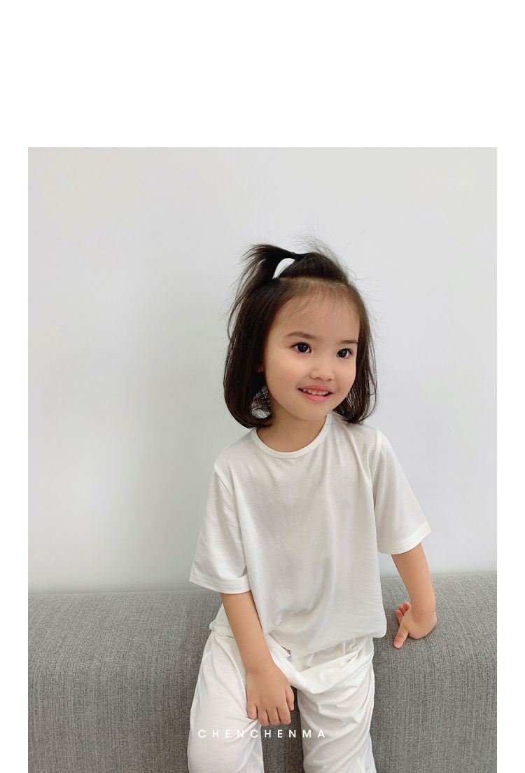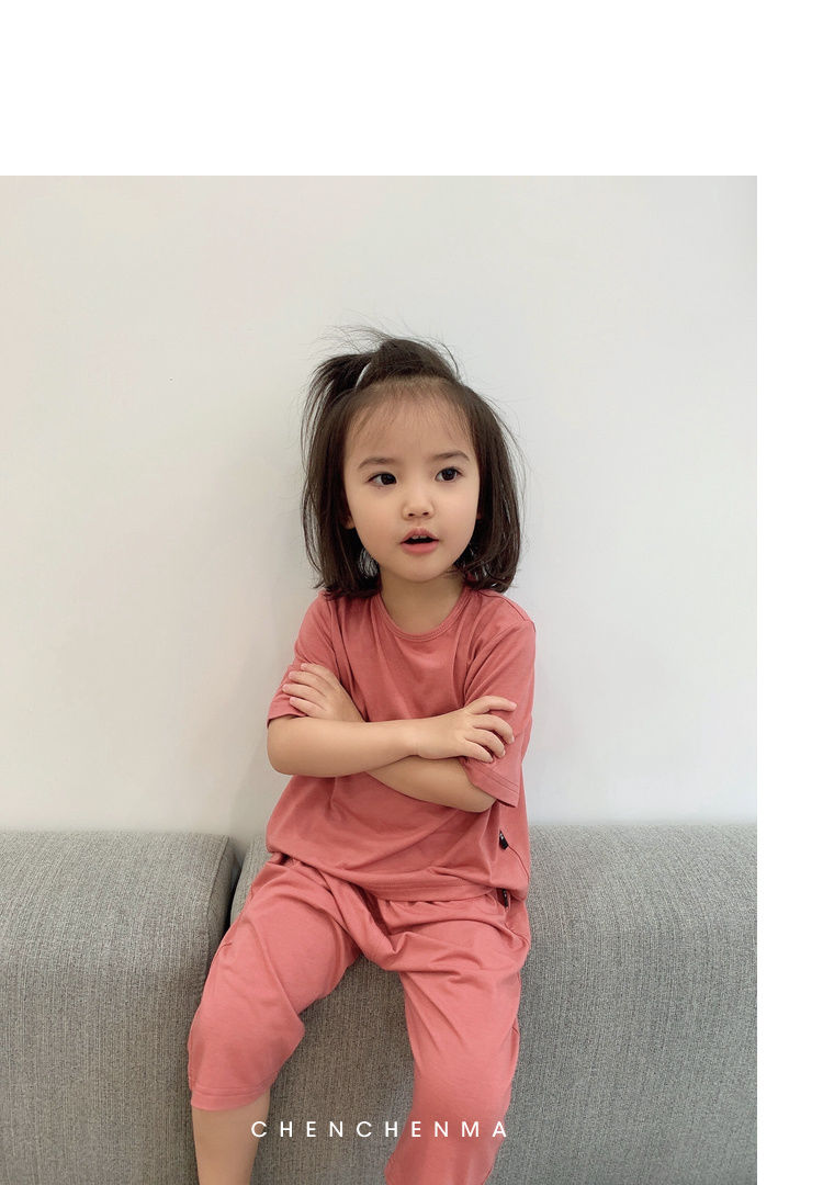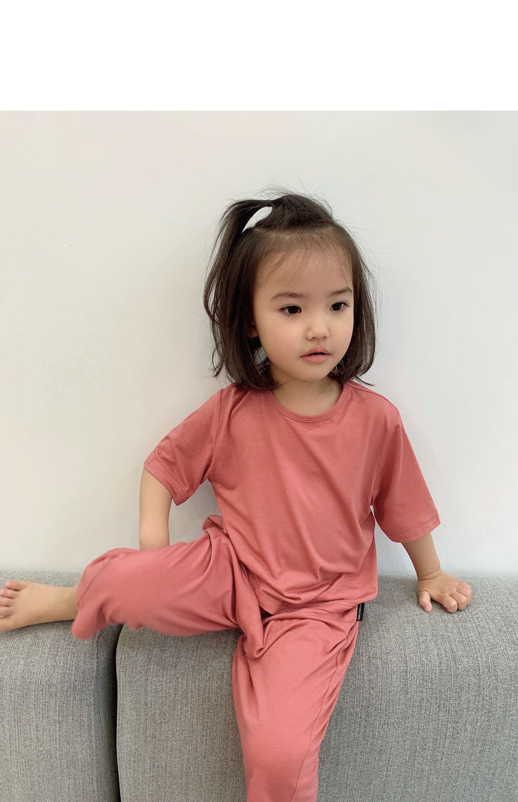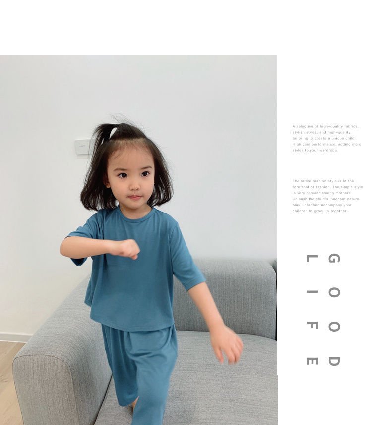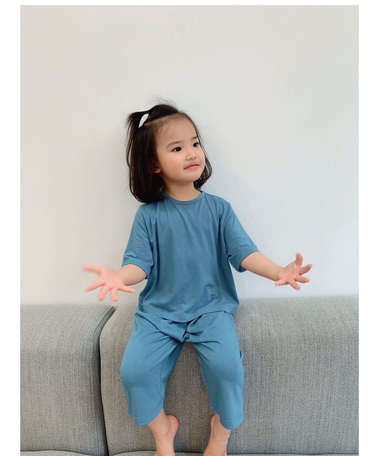 儿童莫代尔空调服夏季宽松薄款柔软女童男童宝宝睡衣家居服潮