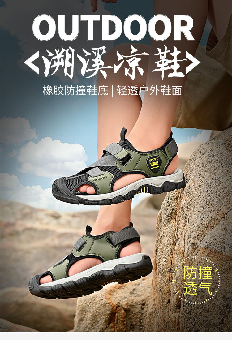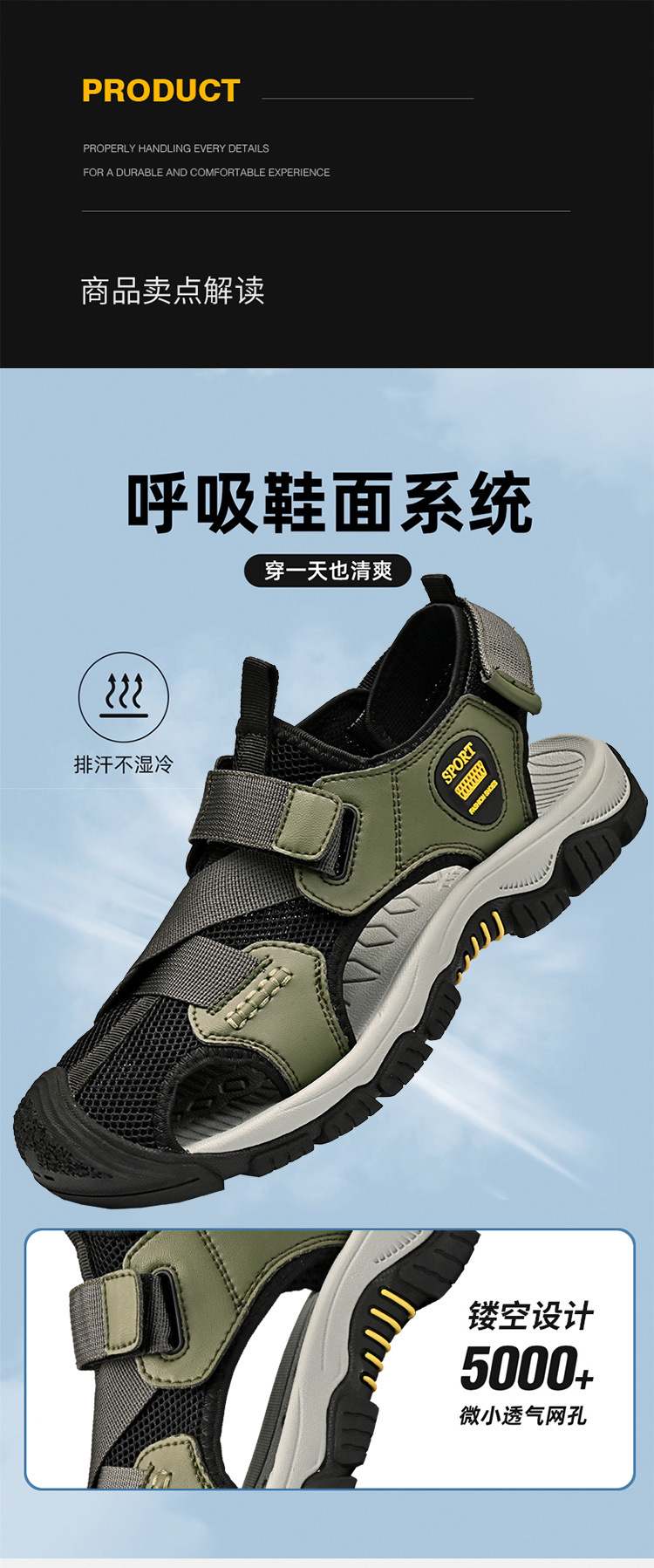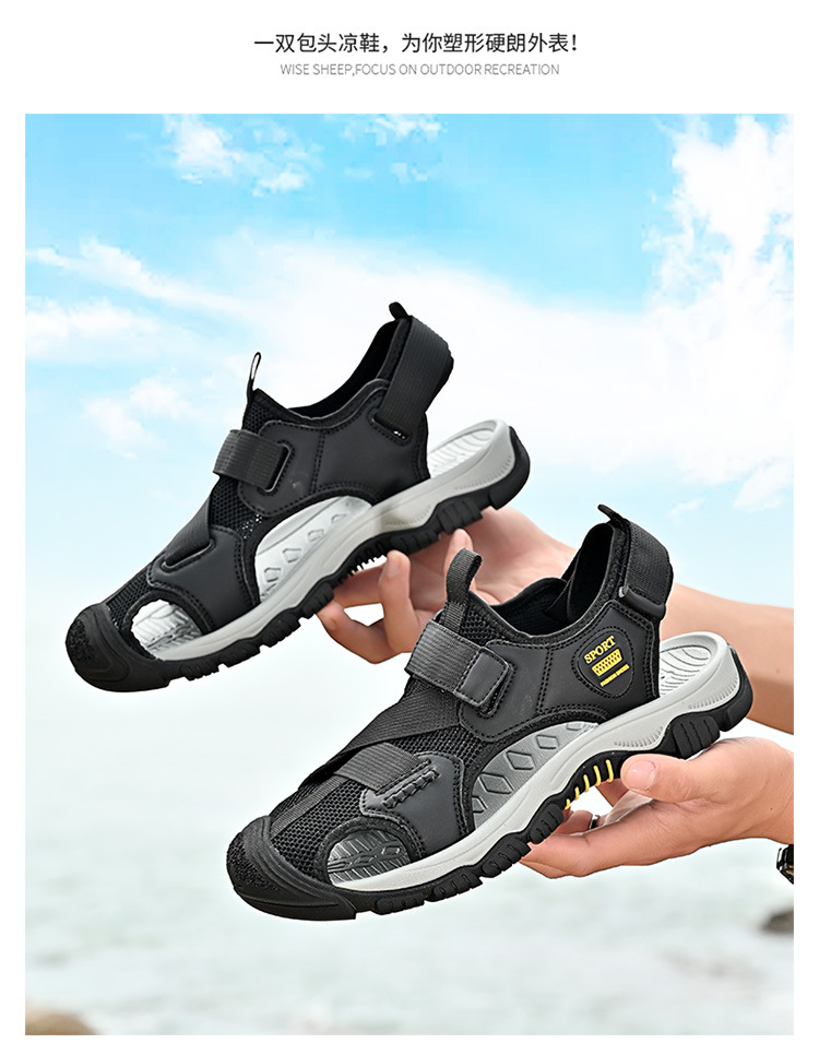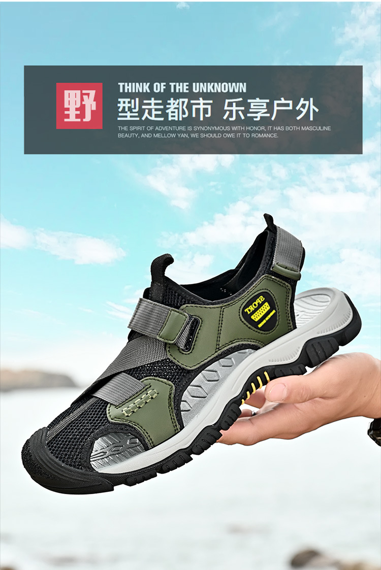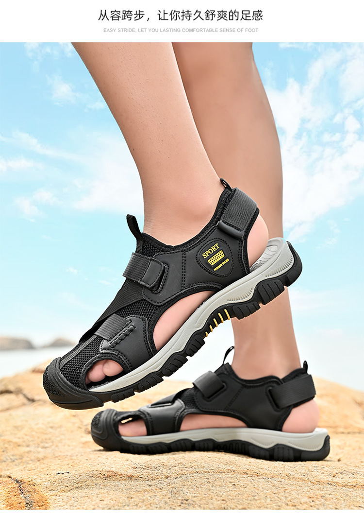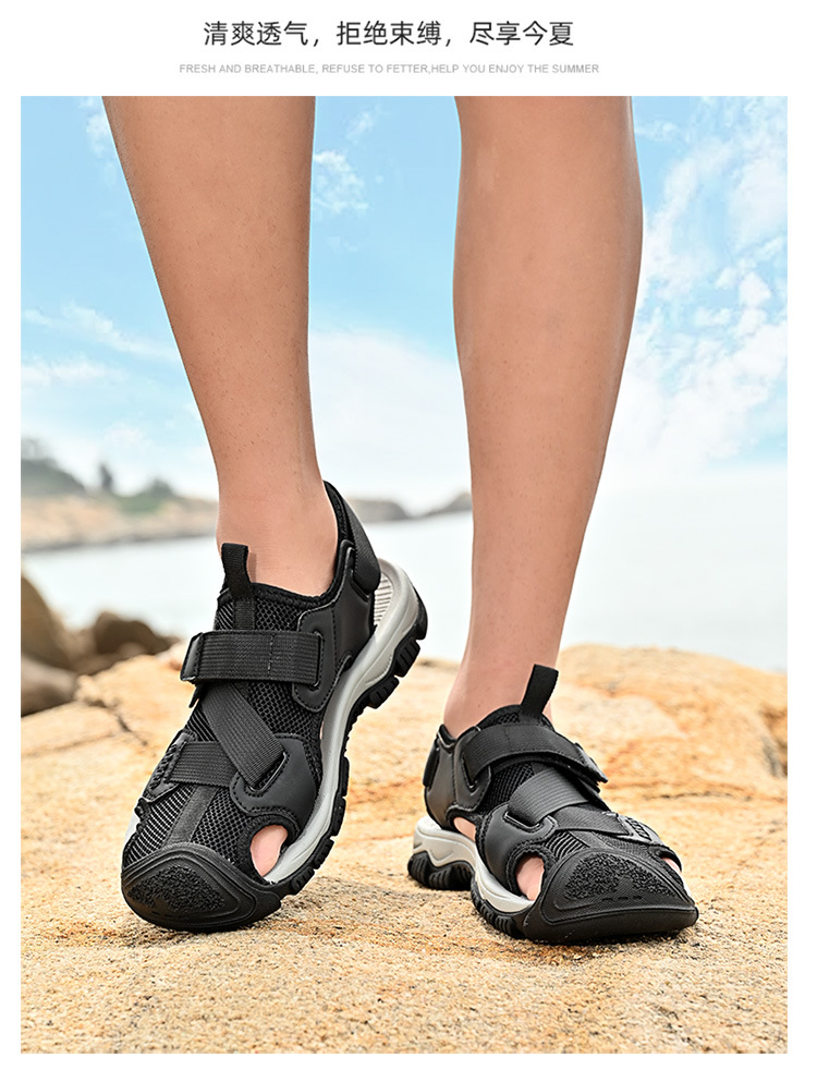 2025年夏季新款休闲防滑包头男士沙滩鞋外贸跨界大码镂空洞洞凉鞋