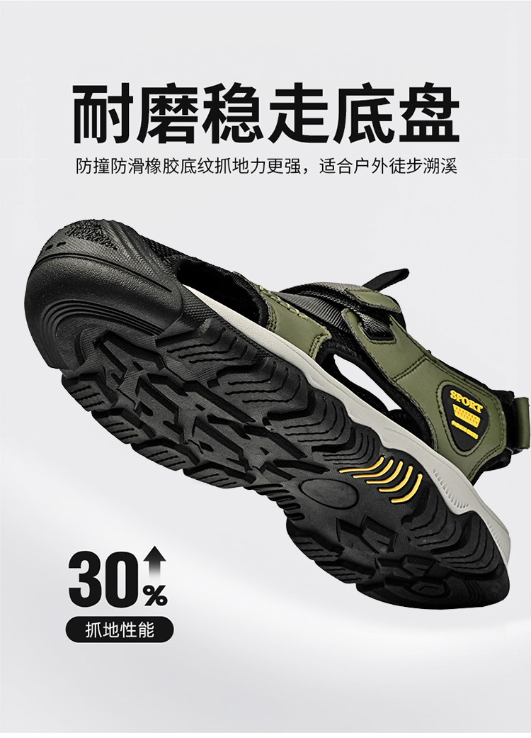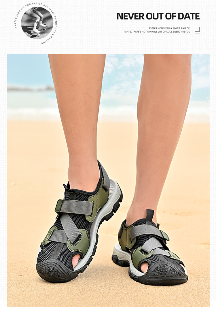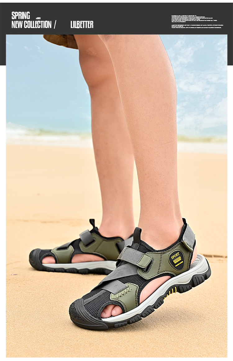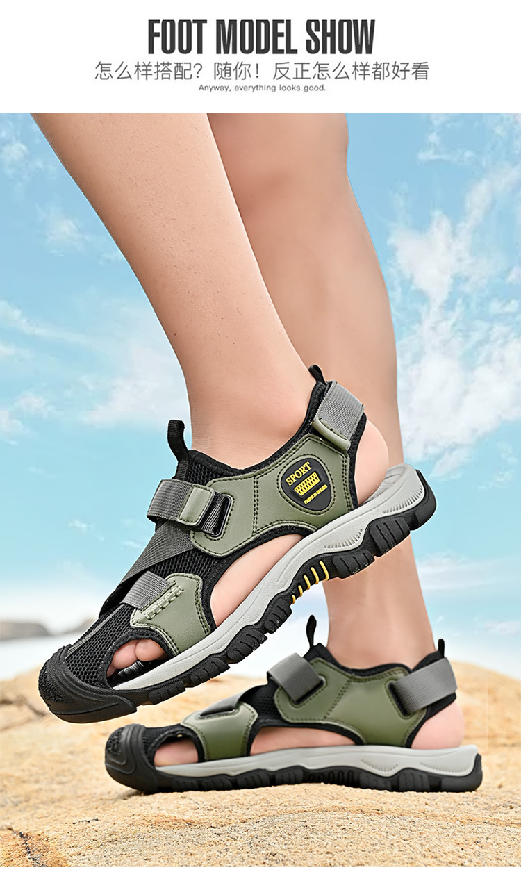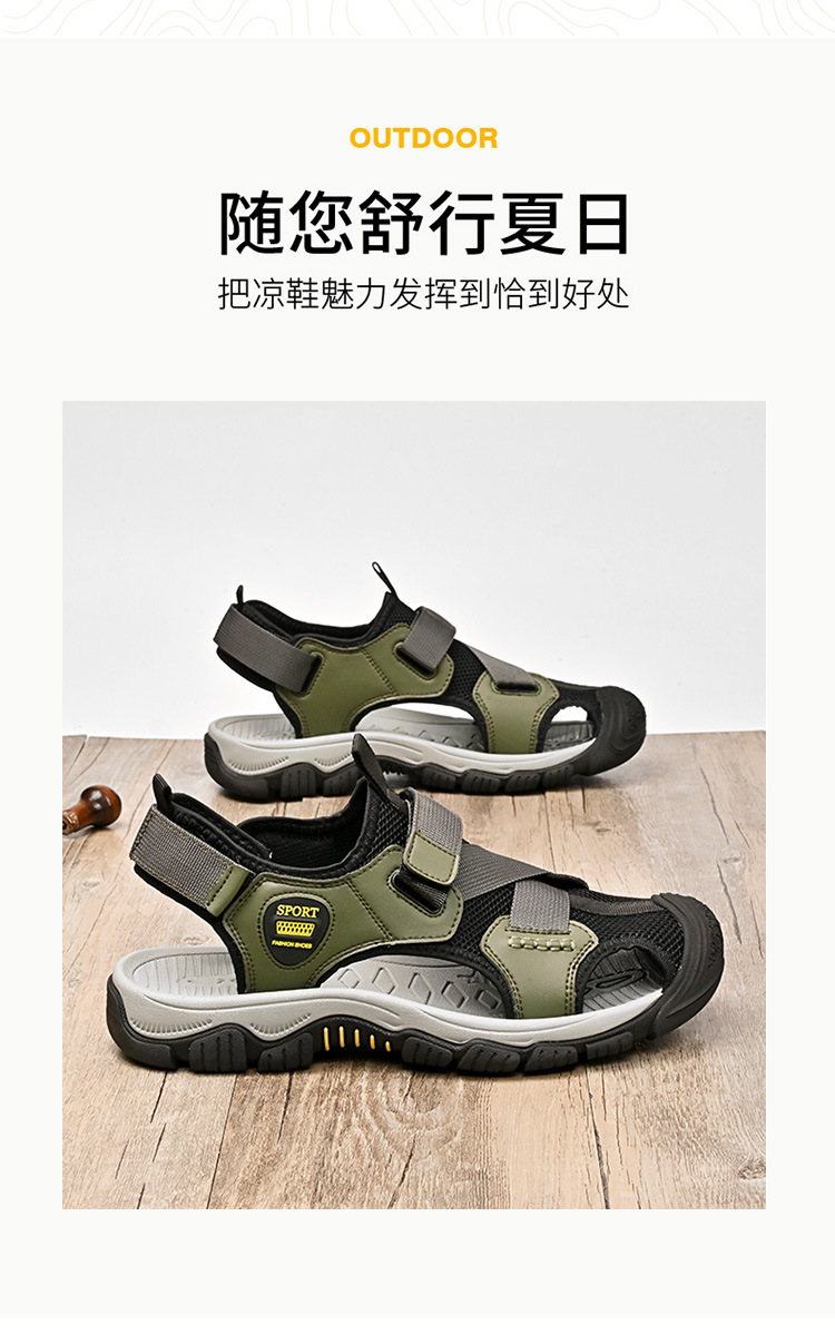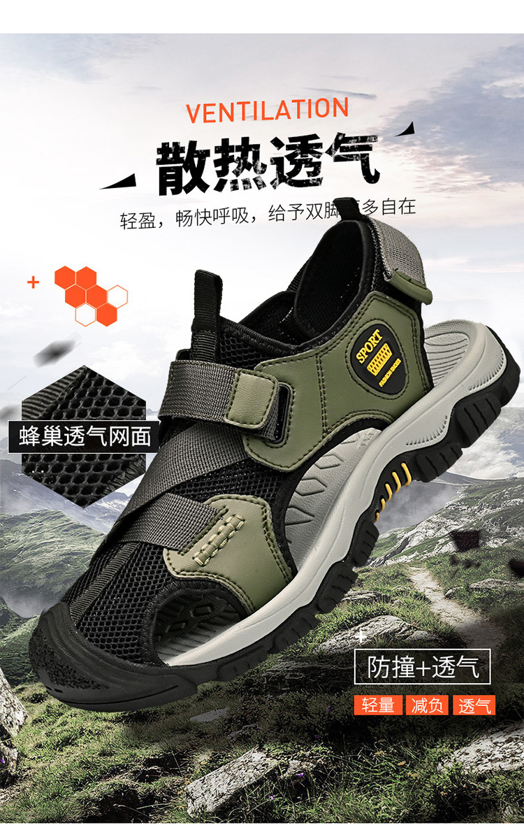 2025年夏季新款休闲防滑包头男士沙滩鞋外贸跨界大码镂空洞洞凉鞋